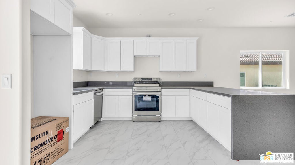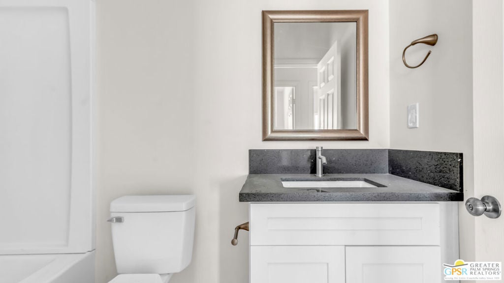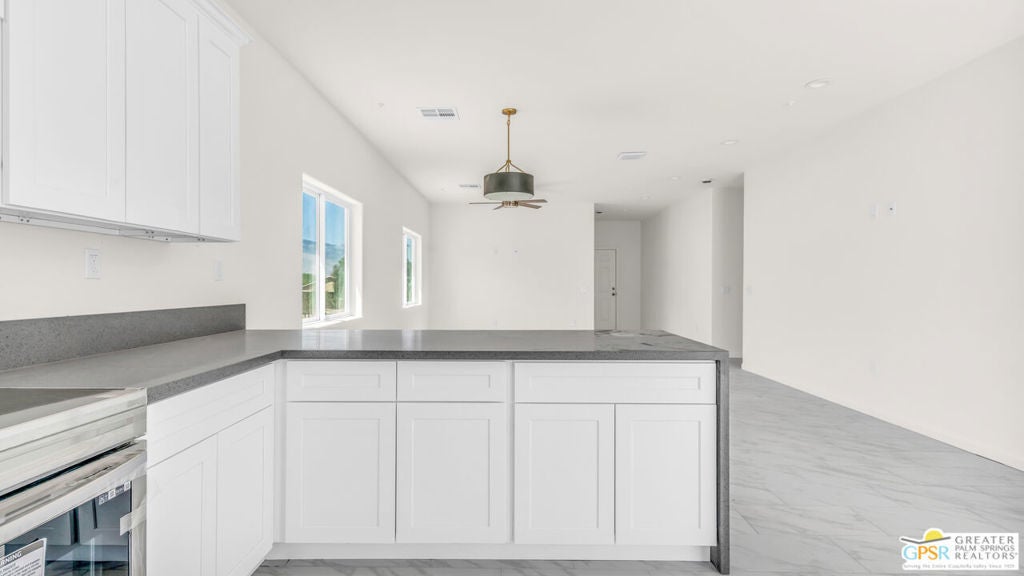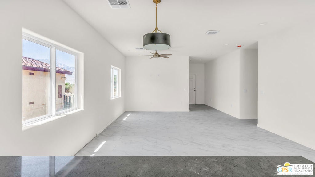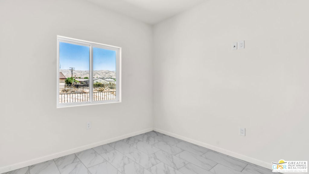 Contemporary Desert Living With Private Guest Quarters! Welcome to this brand-new contemporary home in Desert Hot Springs, where modern design meets comfort and convenience. This single-story residence features an open-concept layout with stylish upgrades that feature tile flooring that flows seamlessly throughout the living spaces. Clean lines and modern finishes create a sleek, inviting atmosphere. The thoughtfully designed kitchen with stainless steel appliances , waterfall granite counter top opens to the living and dining areas, making it ideal for entertaining or relaxing at home. A special highlight of this property is the private guest quarters, offering flexibility for visiting family, friends, or even a home office. With its combination of contemporary elegance, practical design, and the ease of single-level living, this home is move-in ready and perfectly situated to enjoy everything Desert Hot Springs has to offer. Equipped with Central AC / Heat and Solar. Enjoy your mountain views while entertaining in your fenced back yard.