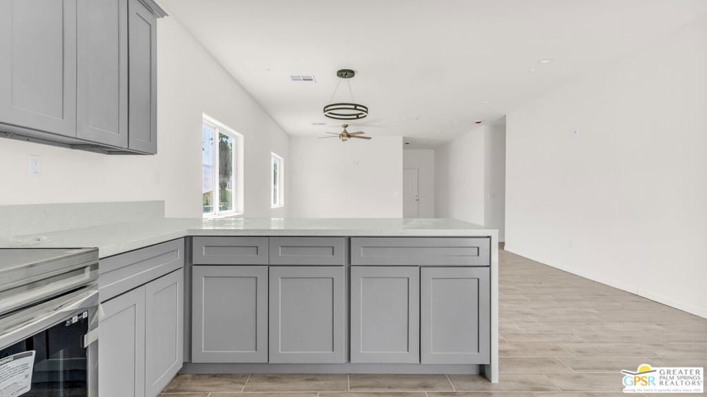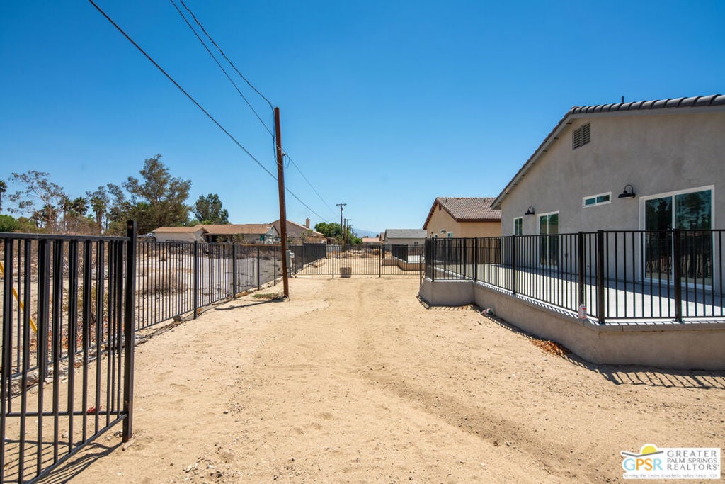 Contemporary Desert Living With Private Guest Quarters! Welcome to this brand-new contemporary home in Desert Hot Springs, where modern design meets comfort and convenience. This single-story residence features an open-concept layout with stylish upgrades that feature tile flooring that flows seamlessly throughout the living spaces. Clean lines and modern finishes create a sleek, inviting atmosphere. The thoughtfully designed kitchen with stainless steel appliances , waterfall granite counter top opens to the living and dining areas, making it ideal for entertaining or relaxing at home. A special highlight of this property is the private guest quarters, offering flexibility for visiting family, friends, or even a home office. With its combination of contemporary elegance, practical design, and the ease of single-level living, this home is move-in ready and perfectly situated to enjoy everything Desert Hot Springs has to offer. Equipped with Central AC / Heat and Solar. Enjoy your mountain views while entertaining in your fenced back yard.