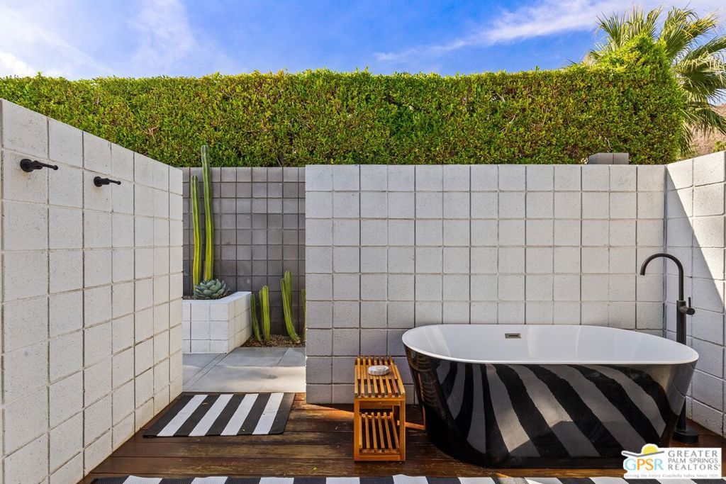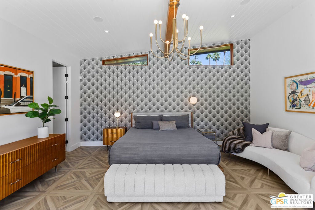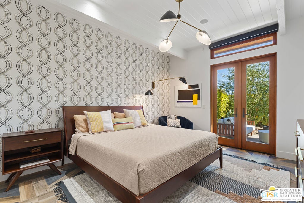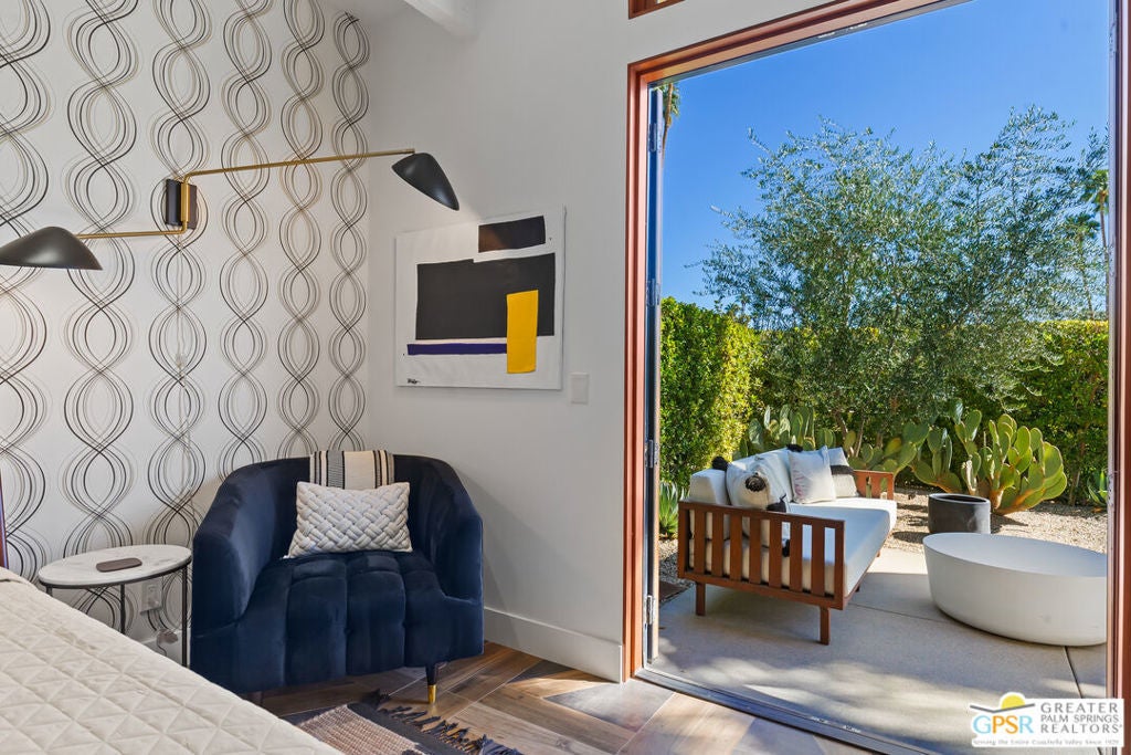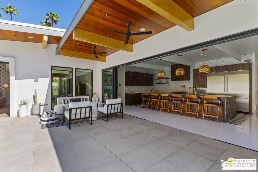 A rare blend of provenance and polish, this is classic Palm Springs style elevated. An original 1961 Alexander Company home, extensively renovated and reimagined. Authentic, clean mid-century lines honor its true architectural history. The floor-to-ceiling glass with a bright open layout showcases the spectacular, south and west facing mountain views from the main living areas. Timeless architecture meets modern comfort, featuring crisp finishes and a seamless indoor-outdoor flow that is ideal for desert living. Step inside to discover a beautifully appointed interior featuring stone and tile floors, illuminated by elegant chandeliers and recessed lighting. The expansive floor plan includes 4 bedrooms and 4.5 bathrooms. Three bedrooms are ensuite with walk-in showers and elevated finishes. The property features a chef's kitchen with Walnut cabinetry and high-end appliances. The large honed island anchors the kitchen and is perfectly located for indoor and outdoor living through the large stacking exterior doors. The smart home features will make everything a breeze with automatic blackout shades and integrated audio, lighting, and multi-zoned AC. Having owned solar panels with new doors and windows helps create a comfortable and efficient home. Outside, the private yard has large protective wood-clad overhangs complete with a 4-sided saltwater infinity pool with a heating and cooling system, an elevated spa, and a large tanning shelf. Enjoy evenings by the fire pit or relax on the private patios with mature landscaping. Patios off each bedroom are the perfect private places for family or guests to unwind and take in the views. This Modernism Week show home is a rare gem in one of the most coveted neighborhoods of Palm Springs.