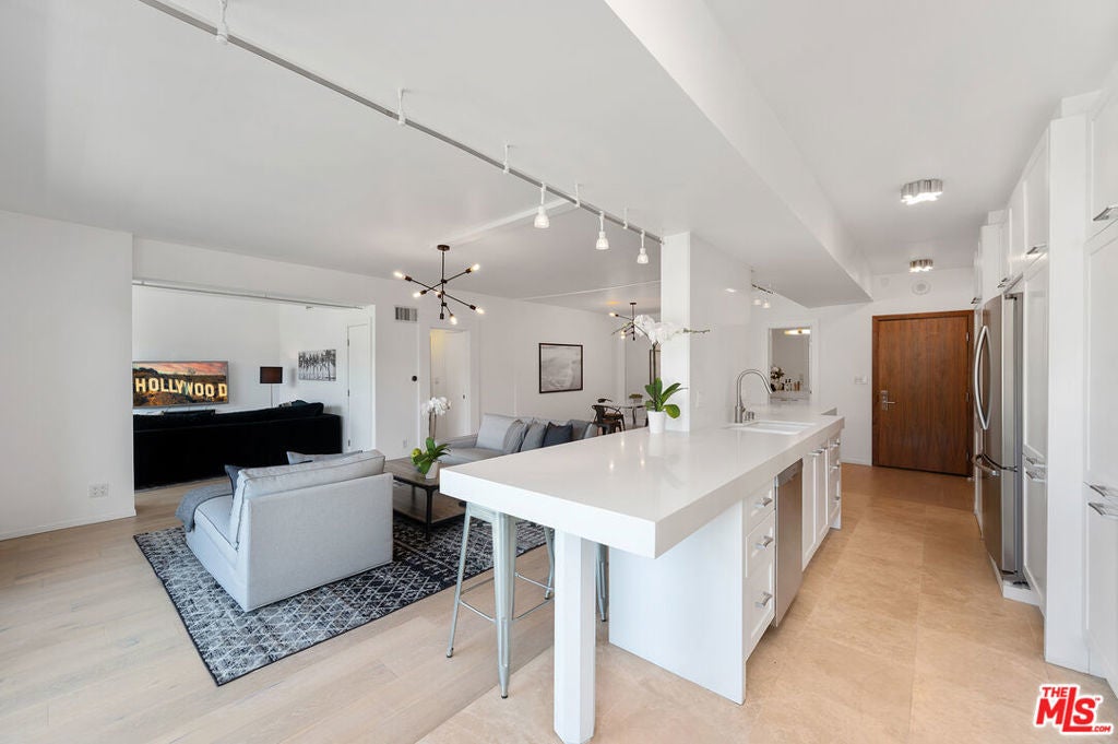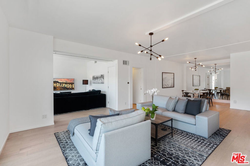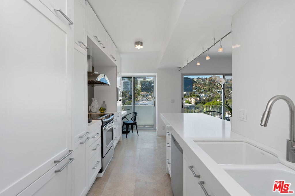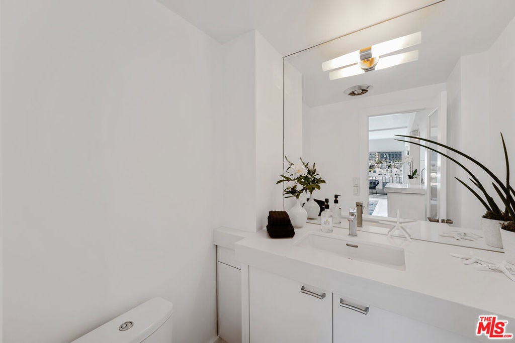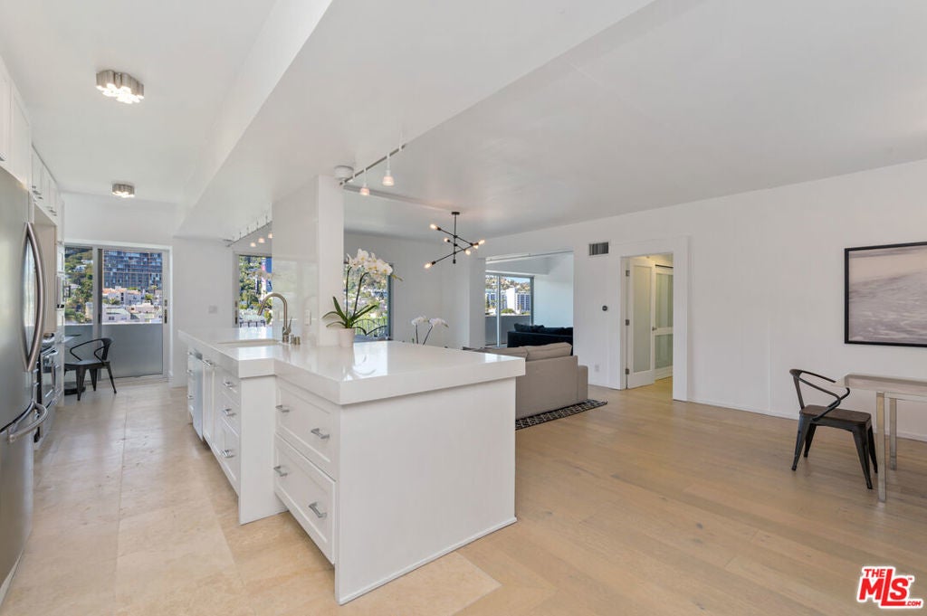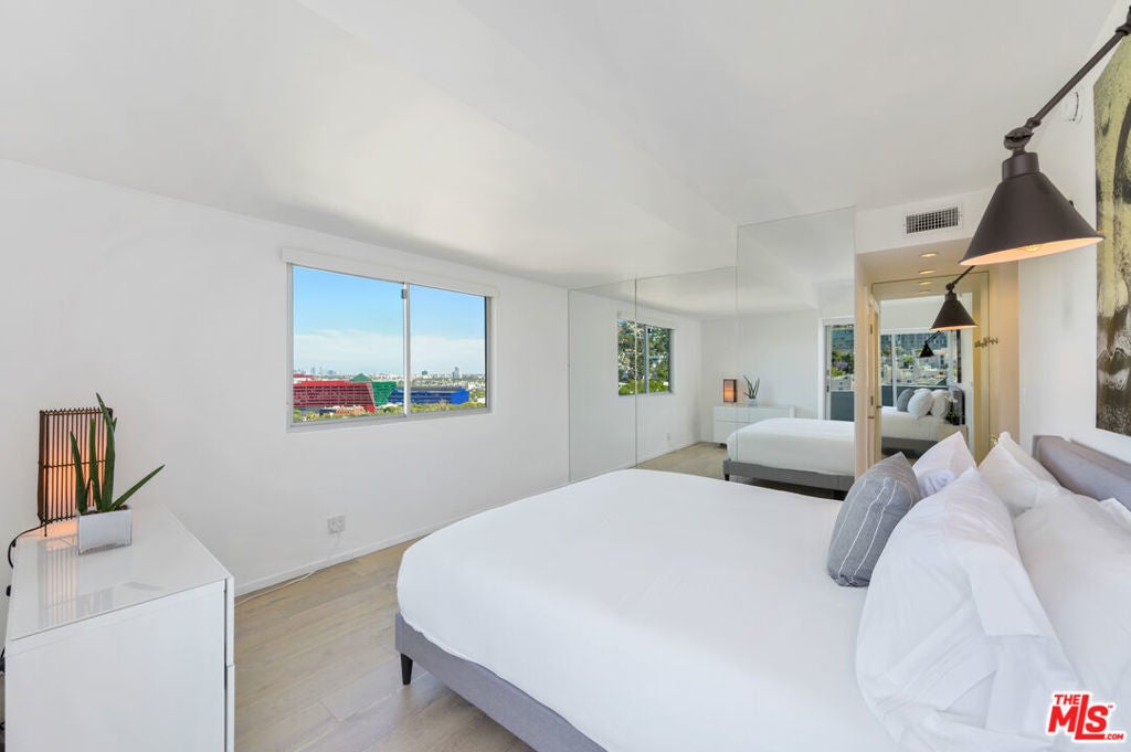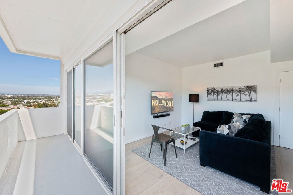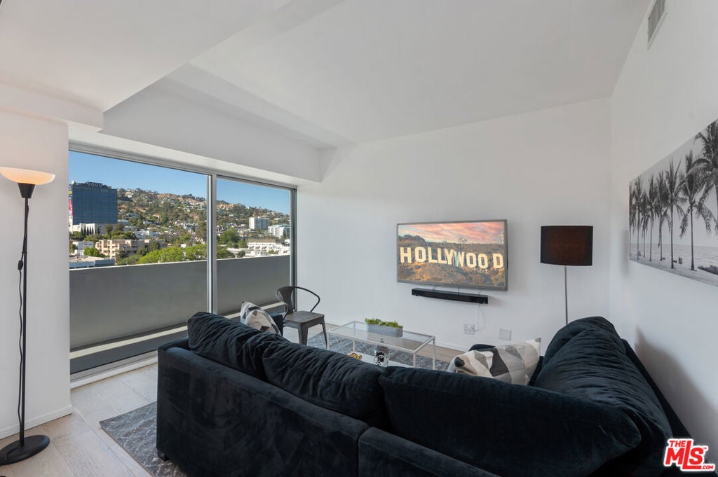 Move-in special: Assume current lease at $7,299 a month through April 23, 2026, then $7,800/month thereafter. Jetliner views of Downtown and Hollywood Hills from this stunning corner unit in full-service building. Amazing newly renovated one bedroom with large den, en suite with steam shower, powder room. Fully furnished with TV in office/den, white stone countertops, light hardwood and stone floors, Fleetwood doors, large open Chef's kitchen, washer/dryer, nest, google home, and more. Cable and internet included. Located in the uber-chic Plaza Towers / 838 North Doheny condominiums has completed a two-year, twelve-million-dollar renovation. The building includes 24-hour concierge, valet parking, a ground-level pool, a rooftop pool with spectacular 360 city views, fire-pits, sundecks, gym, advanced building systems & security technology. Smoking not permitted in unit or building. All furnishings and accessories in photos included. Select pieces recently updated for a fresh, modern look. Features new washer/dryer and glass balcony railings. Availability is subject to the current tenant's move-out on October 31, 2025