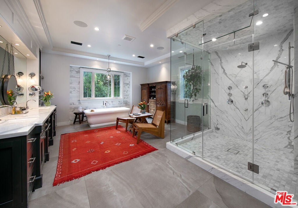 Modern Farmhouse with a twist. Prime Mandeville Canyon, built in 2018 with soaring scale and incredible detail. Approx. 10,600sqft open floor plan. Entry hall opens to formal living room, dining room and library with paneled walls and ceilings. Gourmet kitchen adjacent to amazing secondary living room that spills out to grounds and pool. Primary suite is a world apart with a sensational bath and dual closets. 5 secondary bedrooms are all large with ensuite baths. Lower level with bar, game room, wine cellar and screening room. Exceptional quality and move-in ready. Shown only to prequalified buyers.