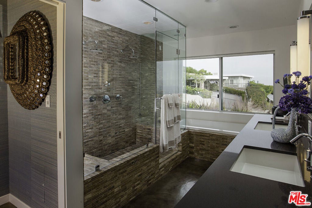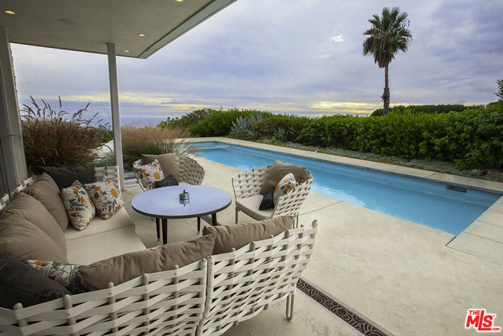 The panoramic views of the ocean, city, and mountains that will take your breath away. This sleek, simply stunning home has been redone and is fully furnished with high-end finishes. All rooms open to the magnificent yard, which offers various sitting areas for dining. The sparkling pool and spa overlook Catalina Island. The sun-filled living room has polished concrete floors, retractable glass doors, a corner fireplace, and an electronic drop-down projector and screen. The elegant kitchen, with Caesar stone counters, sub-zero refrigerator, Thermadore oven & wine cooler opens to the dining area with a large built-in banquet. The Primary bedroom has an attached office, enormous walk-in closet, and retractable doors, opening to expansive views. The home recently passed air quality tests for asbestos, lead and soot/smoke. The home is current leased until January 7th, 2026, and is available January 12, 2026 for a year or more, and will consider short term as well.