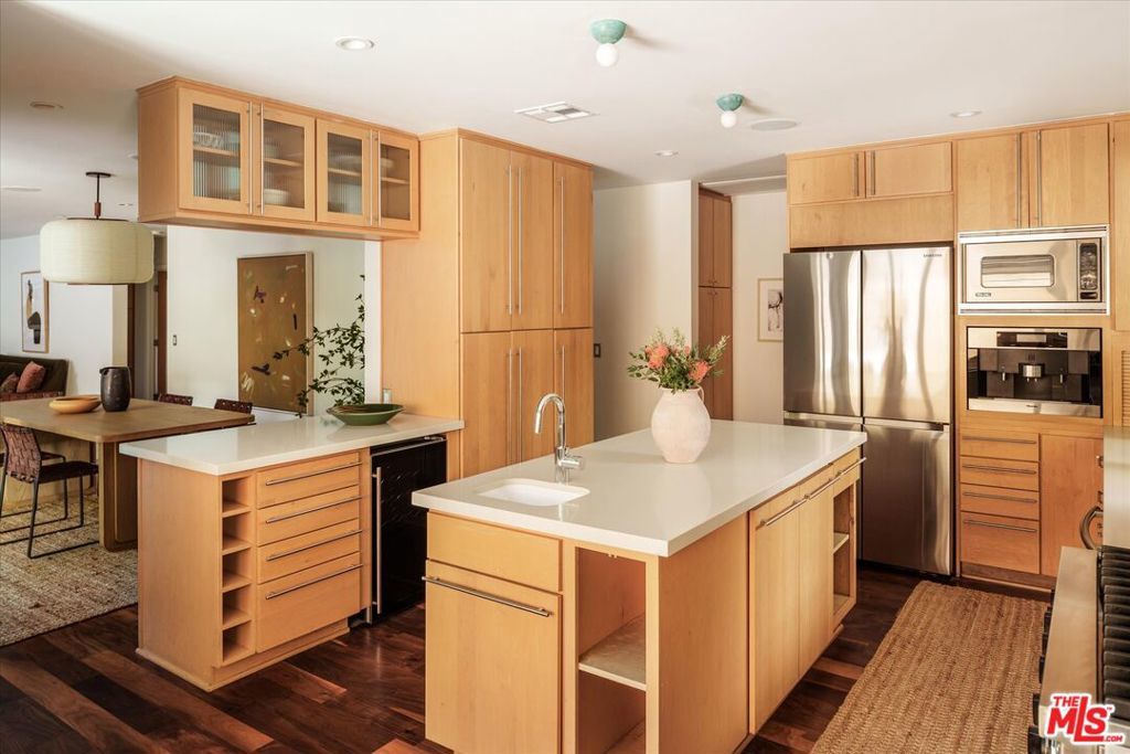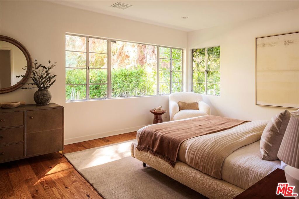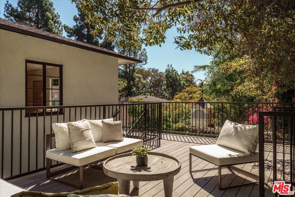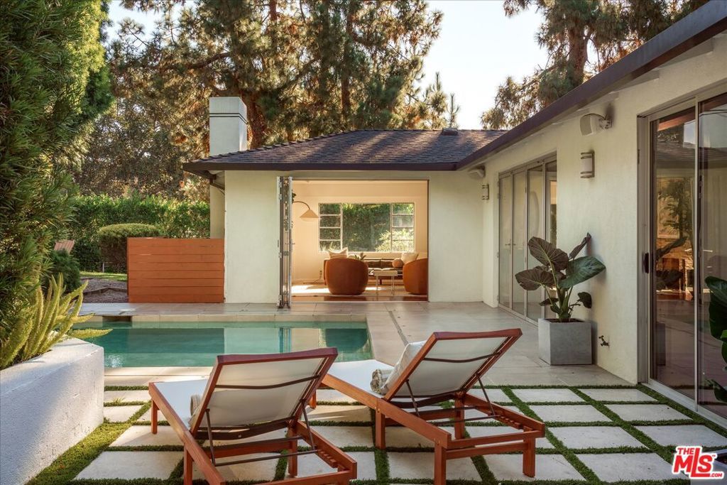A contemporary and sexy mid-century retreat in Los Feliz on a generous fenced and hedged 10,000sf+ corner lot. Discreetly situated along coveted Vermont Avenue, this property has it all; a 3-bedroom main residence, sparkling pool, detached two-car garage, and a fully permitted guest house! Beyond the hedged and gated entry, an expansive wraparound lawn welcomes you. The low-slung single level mid-century architecture hosts a versatile floor plan, featuring a formal living room with fireplace and original casement windows showcasing the lush front yard. A cozy sitting area, dining space, and open kitchen flow seamlessly to the sun deck and pool ideal for effortless indoor-outdoor living. The spacious primary suite features a walk-in closet, large bathroom with soaking tub and shower, and direct access to a private side deck and yard. Two additional bedrooms, two bathrooms, and a laundry area complete the main home. Surrounded by mature hedges for privacy, the outdoor spaces are designed for relaxation and entertaining with a gorgeous pool, lounge areas, and grassy yard. The newly renovated and light-filled guest house, with its own private entrance and large deck, features kitchen, bathroom, and sleeping area. This separate space is perfect for a home office or for hosting long term guests. A substantial storage area and detached two-car garage complete this rare offering. North of the Boulevard, and moments from Los Feliz Village and the best of Griffith Park- hiking, golfing, tennis and The Greek Theatre, this home embodies the discreet charm, creative energy, and community spirit make Los Feliz such a special place to call home.