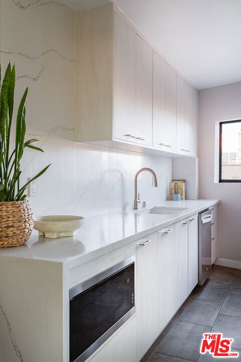 Experience quintessential West Hollywood living in this single-story 2-bedroom, 2-bath residence with panoramic views from DTLA to the West. Perched above the famed Sunset Strip, this newly renovated condo blends contemporary design with effortless sophistication. The open-concept living area showcases floor-to-ceiling glass sliders that frame sweeping vistas and flood the home with natural light. A stone-clad fireplace anchors the space, while wide-plank hardwood floors and a spacious private balcony create a seamless indoor-outdoor flow. The custom chef's kitchen features sleek quartz countertops, stainless steel appliances, and generous storage. An adjacent dining area and built-in bar with wine fridge elevate the home's entertaining appeal, doubling as a stylish coffee nook. The primary suite offers a true retreat with a custom walk-in closet and a spa-inspired bath featuring designer finishes. The versatile second bedroom, currently outfitted as an office with a convertible sleeper sofa, provides comfort and flexibility for guests or work-from-home living.Located in a boutique Mid-Century architectural building, this south-facing unit includes two parking spaces and direct access to the best of Los Angeles from the Pendry Residences to world-class dining, shopping, and nightlife just steps away on the Sunset Strip.