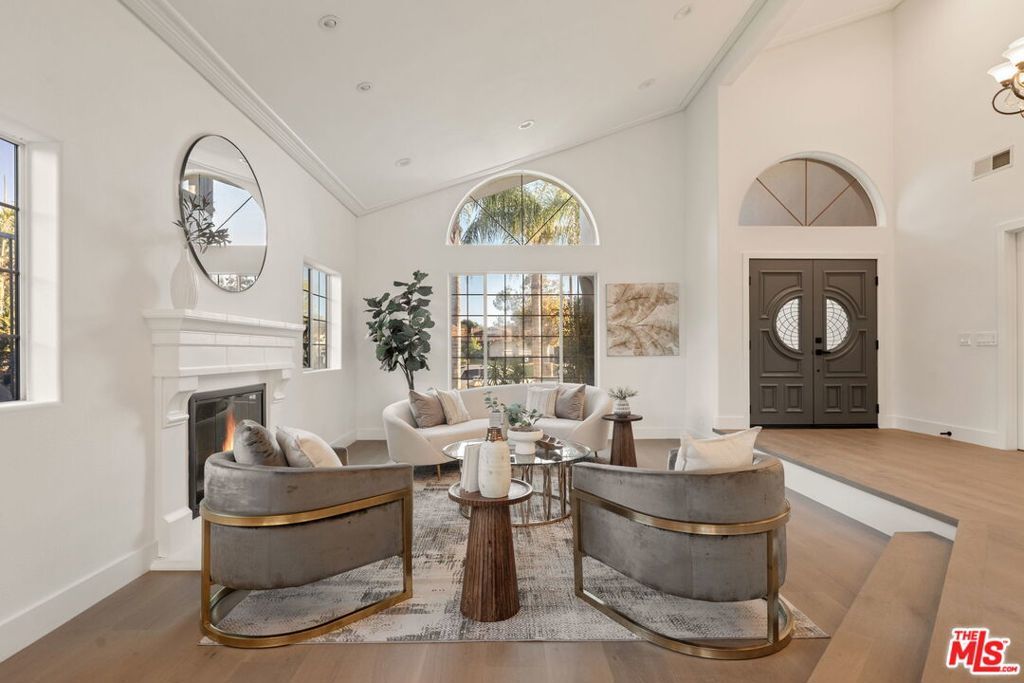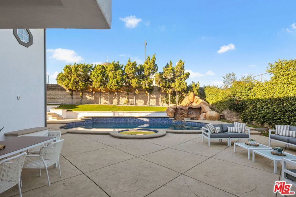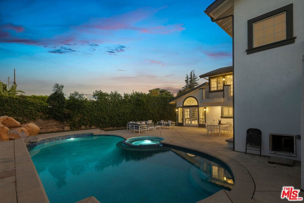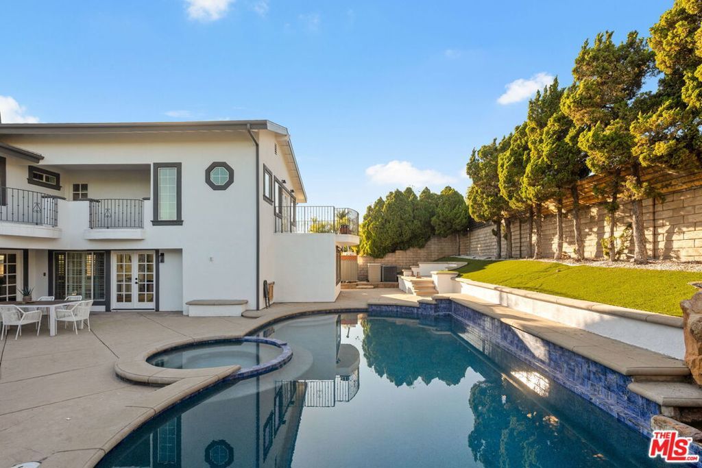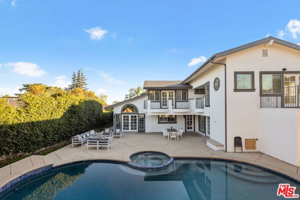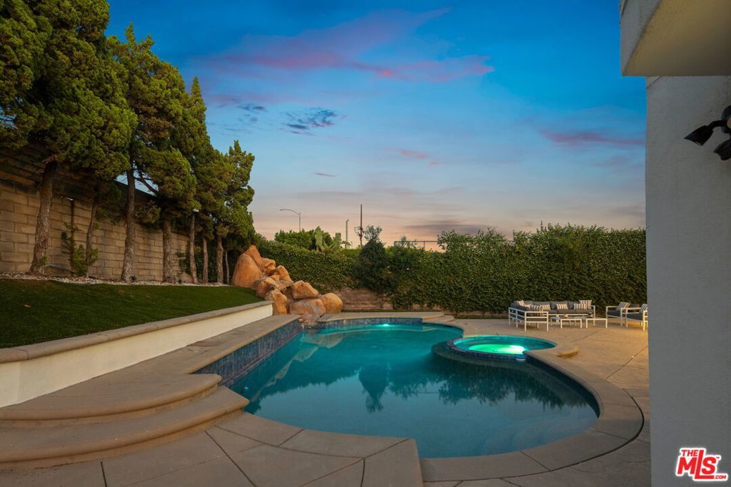Tucked away at the end of a tranquil cul-de-sac, this 5,453-square-foot residence captures the essence of modern luxury reimagined within a timeless traditional framework. Set on an expansive 11,380-square-foot lot, the home has undergone a meticulous, comprehensive renovation transforming it into a masterful blend of craftsmanship, comfort, and understated sophistication. Behind its stately facade lies a beautifully balanced floor plan curated for both grand entertaining and intimate everyday living. The formal living and dining rooms evoke a sense of occasion, while the great room anchored by a stunning new chef's kitchen flows effortlessly into the expansive family room overlooking the pool and gardens. The kitchen showcases custom cabinetry, quartz surfaces, and a suite of integrated Fisher & Paykel appliances, offering both elegance and performance in equal measure. Upstairs, the primary suite serves as a serene retreat, boasting generous proportions, spa-like amenities, and soft natural light. Four additional bedrooms complete the upper level, providing ample space for family or guests. Every bathroom throughout the home has been entirely reimagined, featuring refined finishes and timeless materials. Throughout, you'll find wide-plank white oak floors, freshly painted interiors, and a new roof testament to the home's turn-key condition. Step outside to discover the newly refinished Pebble Tec pool, set within a private backyard oasis perfect for entertaining under the California sun. Situated in one of Northridge's most desirable pockets, this cul-de-sac estate offers the rare combination of space, sophistication, and serenity an ideal sanctuary for the discerning family seeking the comforts of luxury living in the heart of the Valley.