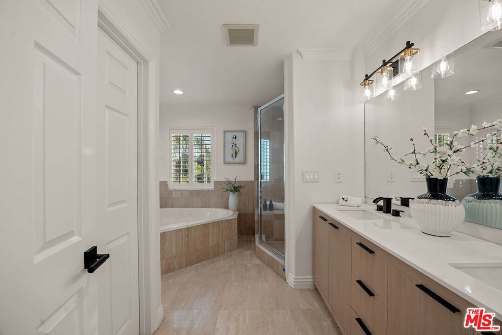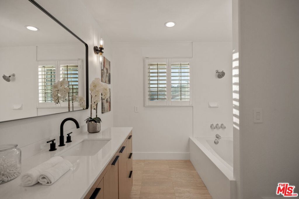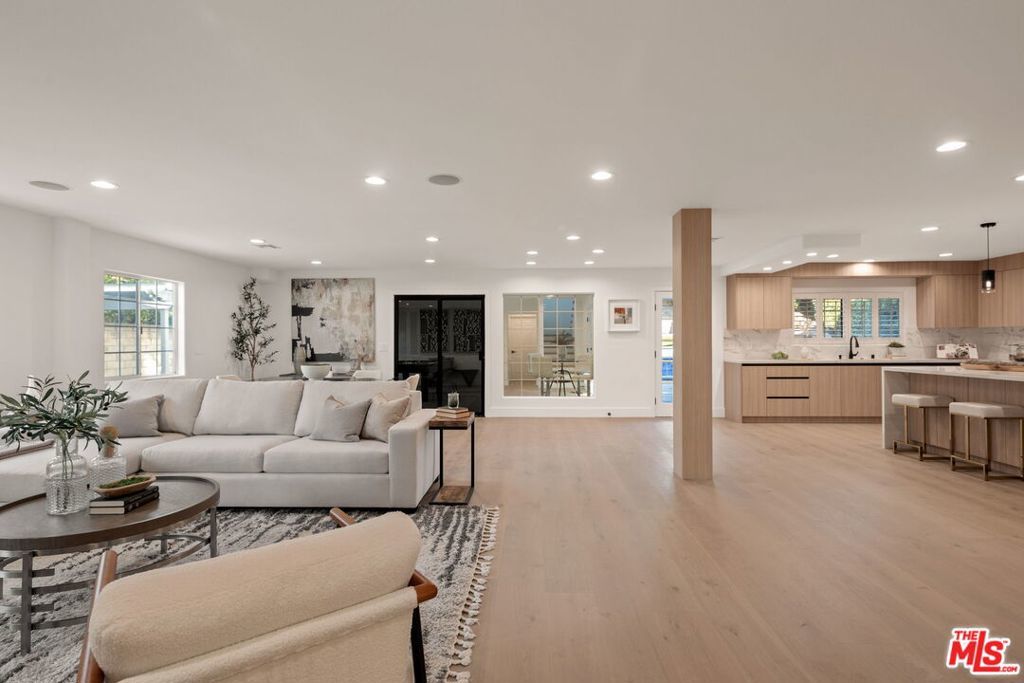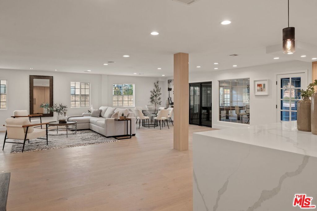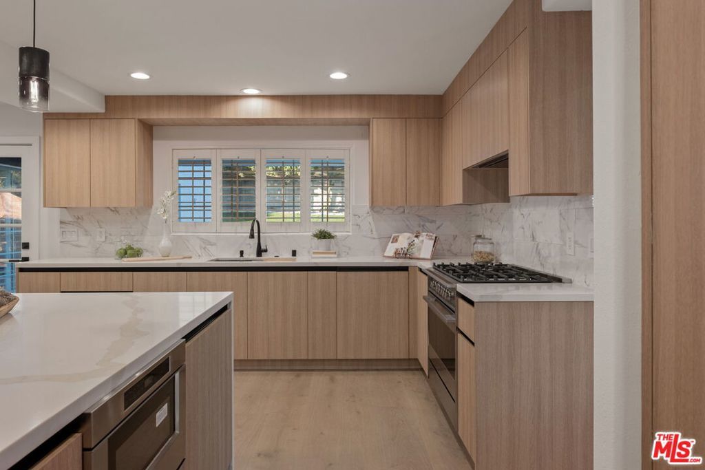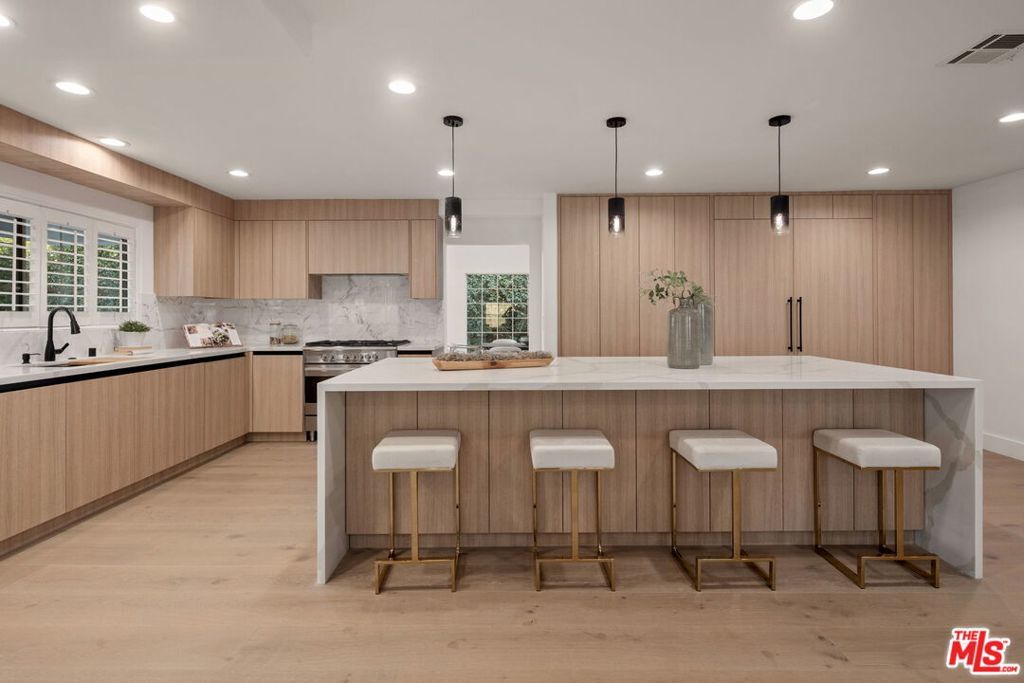 Tucked away at the end of a tranquil cul-de-sac, this 5,453-square-foot residence captures the essence of modern luxury reimagined within a timeless traditional framework. Set on an expansive 11,380-square-foot lot, the home has undergone a meticulous, comprehensive renovation transforming it into a masterful blend of craftsmanship, comfort, and understated sophistication. Behind its stately facade lies a beautifully balanced floor plan curated for both grand entertaining and intimate everyday living. The formal living and dining rooms evoke a sense of occasion, while the great room anchored by a stunning new chef's kitchen flows effortlessly into the expansive family room overlooking the pool and gardens. The kitchen showcases custom cabinetry, quartz surfaces, and a suite of integrated Fisher & Paykel appliances, offering both elegance and performance in equal measure. Upstairs, the primary suite serves as a serene retreat, boasting generous proportions, spa-like amenities, and soft natural light. Four additional bedrooms complete the upper level, providing ample space for family or guests. Every bathroom throughout the home has been entirely reimagined, featuring refined finishes and timeless materials. Throughout, you'll find wide-plank white oak floors, freshly painted interiors, and a new roof testament to the home's turn-key condition. Step outside to discover the newly refinished Pebble Tec pool, set within a private backyard oasis perfect for entertaining under the California sun. Situated in one of Northridge's most desirable pockets, this cul-de-sac estate offers the rare combination of space, sophistication, and serenity an ideal sanctuary for the discerning family seeking the comforts of luxury living in the heart of the Valley.