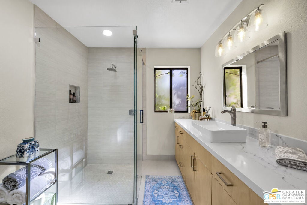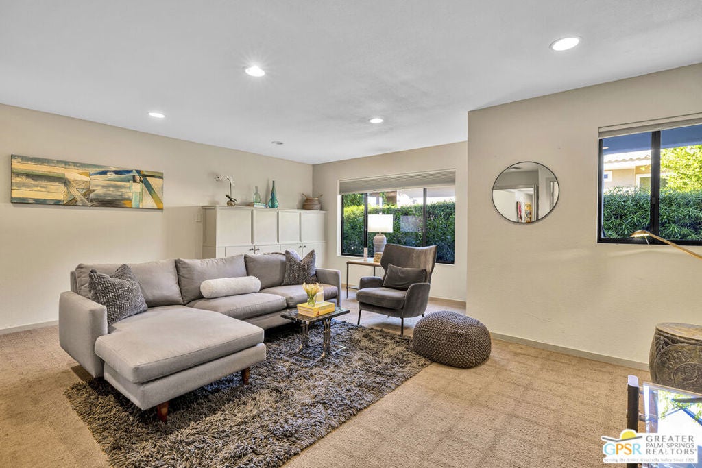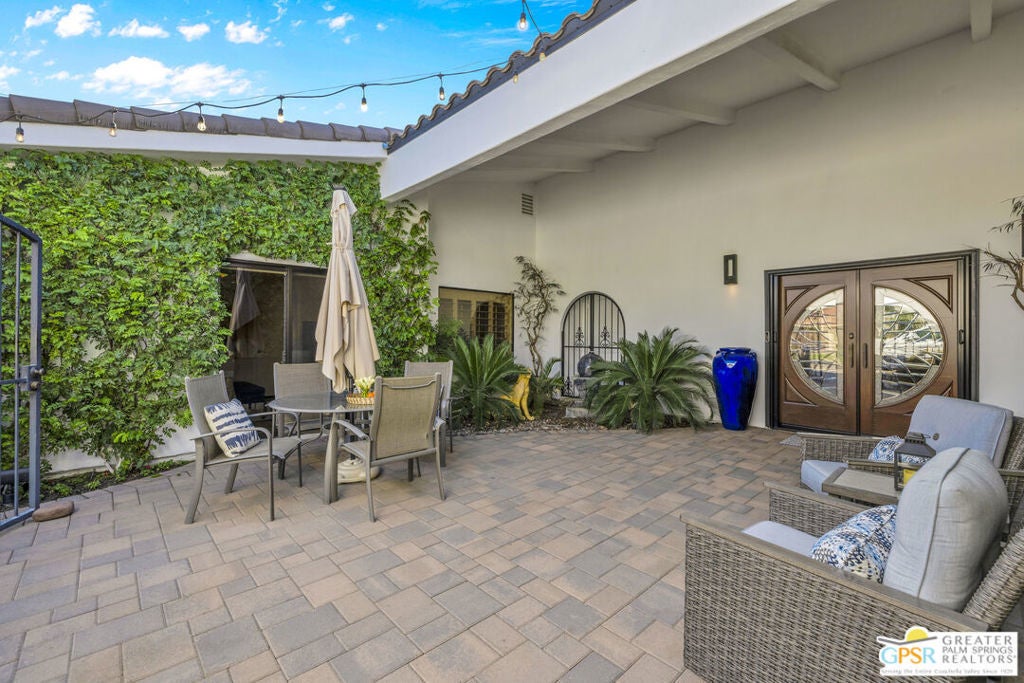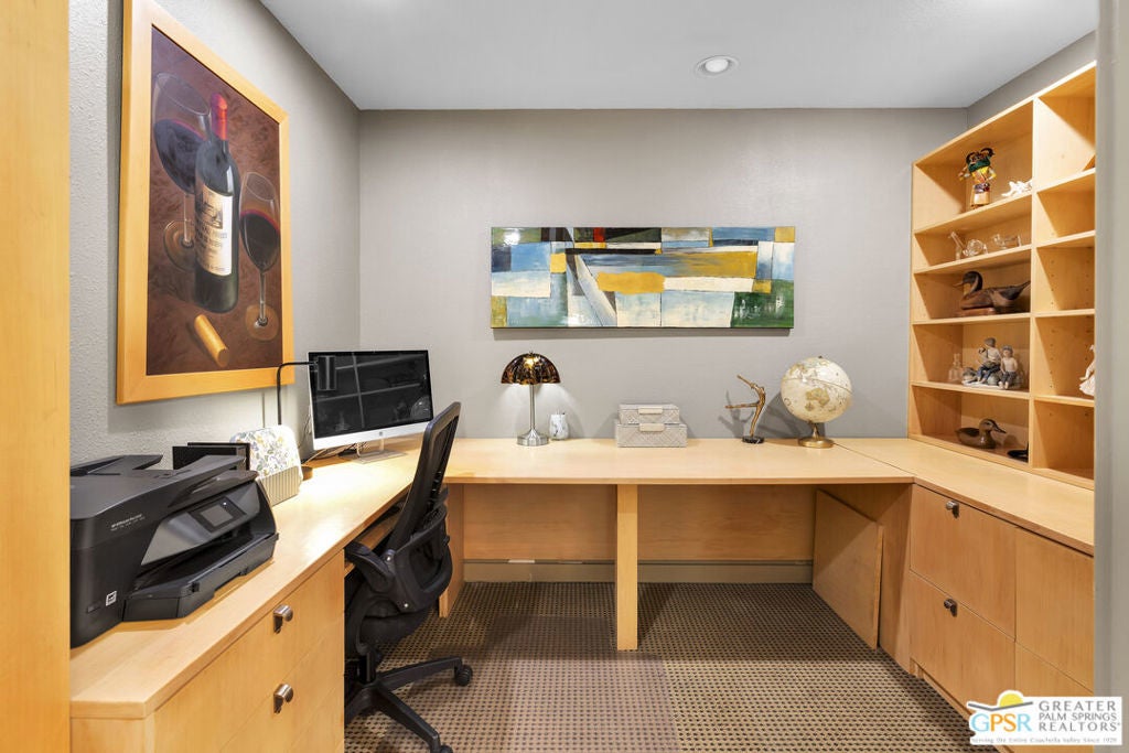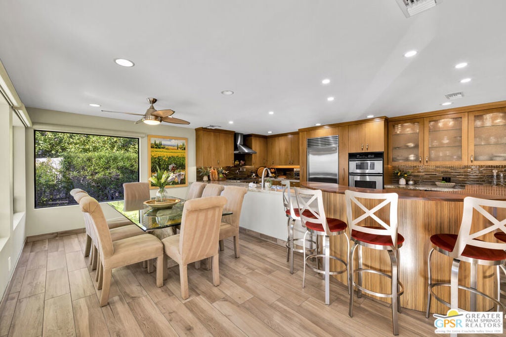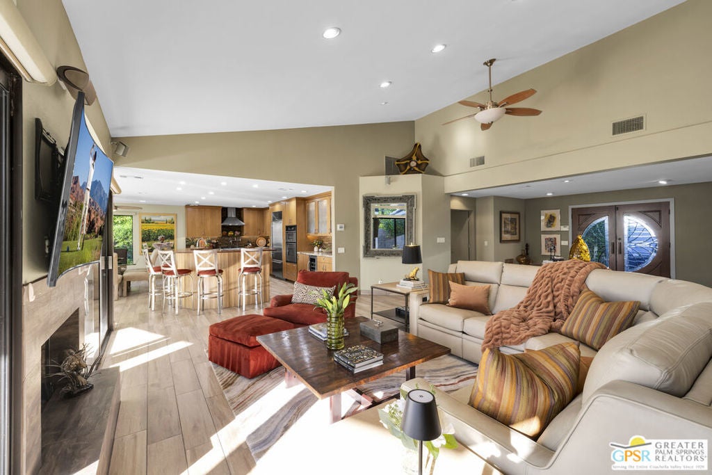 Your Fairway Oasis Awaits! Live the good life in this gorgeous custom golf course home nestled directly on the 15th Fairway of the prestigious Bermuda Dunes Country Club. From the moment you arrive, you'll be wowed by the magnificent curb appeal, the elegant circular driveway, and the private courtyard that sets the stage for entry through the grand double doors. This exceptional 4-bedroom, 4-bath residence spans just over 3,000 square feet and showcases countless high-end upgrades, including the complete remodeling of all four beautiful bathrooms. A True Entertainer's Paradise, the heart of the home is the Gourmet Kitchen, a culinary dream featuring a Sub-Zero fridge, a professional Viking range with a custom hood and pot-filler, a beverage fridge with a seamless cabinet panel, and a wine fridge. The show-stopping bar island, crafted with specialty custom Zebra and Black Walnut woods, makes this space a true Entertainer's Paradise. The multiple outdoor spaces extend your living area effortlessly. Grill masters will appreciate the built-in infrared BBQ island, while guests relax in the dining and sitting areas, shaded by extensive pergolas equipped with a cooling misting system and fans. Spend your days floating in the sparkling pool or unwinding in the integrated spa. As evening falls, prepare to witness the most incredible glow of the sun as it sets over the fairway and dips into the mountains every night. Retreat to the spacious Primary Suite, a sanctuary of comfort and style. It boasts a custom built bedroom set by interior designer Troy Zimmerman, a large spa-like bathroom with dual sinks, a separate vanity, a tiled walk-in shower, a radiant heated floor, a walk-in closet, and a tranquil Atrium garden. Situated on a massive lot, the mature landscaping includes fruiting trees and a rose garden. Practical features ensure peace of mind, including dual zone A/C (one zone replaced last year), new roof in 2021, and a two-car garage with an EV outlet plus a dedicated golf cart bay door. Take advantage of the numerous amenities, great dining, and social activities offered at Bermuda Dunes Country Club. Stop dreaming and start living. Your desert retreat awaits!