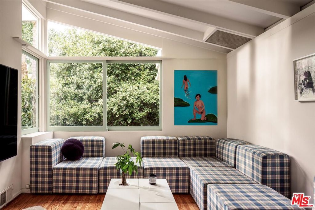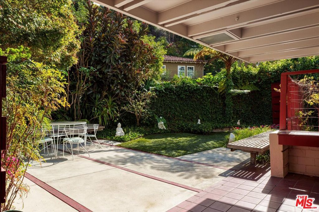 The Druckman Residence, circa 1941, by legendary architect Rudolph Schindler. Designed to integrate seamlessly with its surroundings, Schindler executed a residence that captures and communicates with nature. At the base of the garden sits a modernist swimming pool; an oasis in the middle of the city, more like a lake perfect in size and proportions. A previous listing of the property notes that the pool was designed by the great Richard Neutra. This aligns with Neutra's concept of giving occupants a visual and sensory connection to both water and to nature. Set back from the street behind a gate and a beautifully landscaped entryway, the house unfolds. Clerestory windows choreograph natural light throughout the day amid a palette of white plaster and original plywood surfaces. The main living area features a beamed ceiling, built-in cabinetry, and balcony, with large, south-facing windows that open to a grove of mature trees. Anchoring the room is Schindler's masterful fireplace, which continues to the exterior and an outdoor hearth, effectively creating twin living rooms, one interior and one al fresco on the property's large flat yard. The home offers quintessential modern Southern Californian indoor-outdoor flow, yet was decades ahead of its time. The kitchen frames treetop views from its original built-in table and breakfast nook, now complemented by refreshed surfaces and updated appliances. A second balcony opens from the kitchen to maximize light, air and access to nature. An upstairs den completes this level, with verdant views and geometrical ceilings that echo Schindler's sculptural vision. The primary bedroom features large windows with canyon views, an expansive closet, and a newly updated primary bathroom. The three additional guest rooms each featuring canyon views, additional built-in, and bookcases along with backyard access. The Druckman Residence is both highly livable and historically significant, blending architectural integrity with privacy and convenience atop Outpost Estates, just moments from Hollywood, the famous Hollywood Bowl, and all that Los Angeles has to offer.