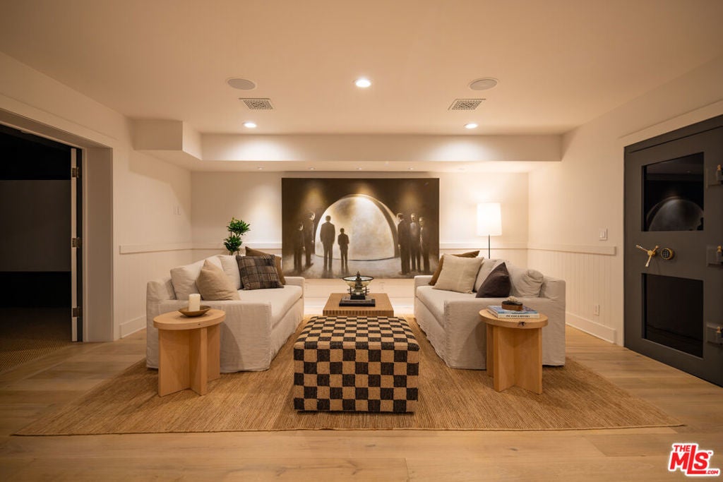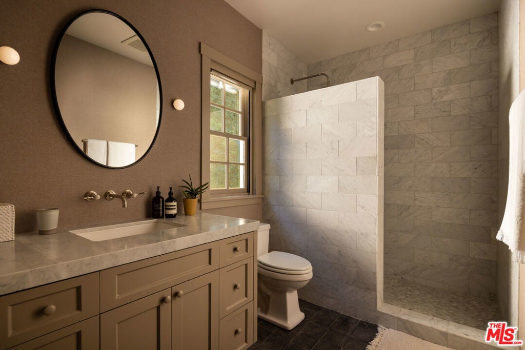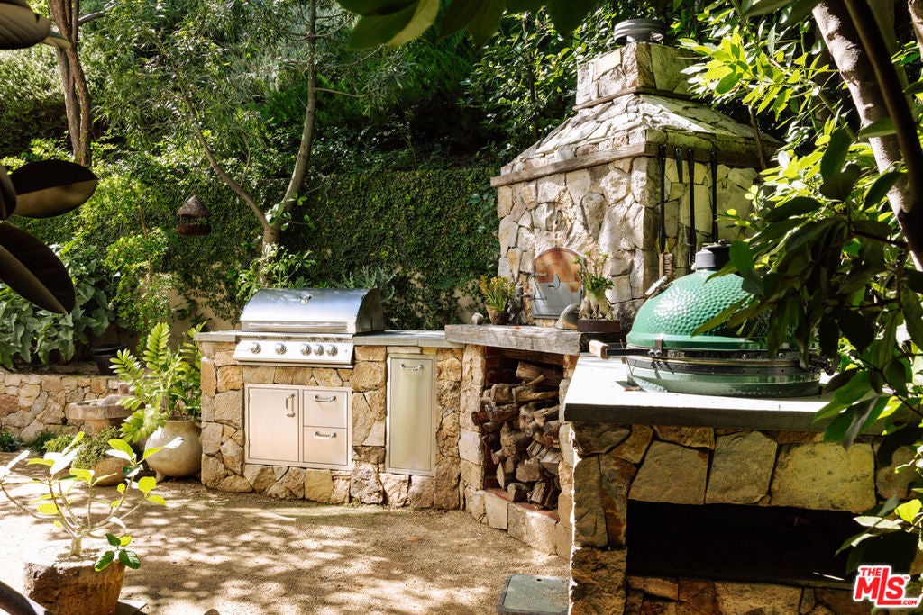 Tucked behind private gates and enveloped by lush, mature landscaping, this turn-key traditional farmhouse rests on a coveted street-to-street lot from Elkins to Oakmont, embodying timeless style and enduring Brentwood elegance. Beyond a meandering, tree-lined drive, the home opens to an inviting front patio that sets the tone for the refined interiors within. A sunlit foyer leads to the family room, where French doors invite indoor-outdoor living and bespoke furnishings by acclaimed designer Rachael Goddard define a sophisticated yet effortless aesthetic. The chef's kitchen, anchored by a grand island and professional-grade appliances, includes a bright breakfast nook and expansive butler's pantry. The dining room, perfect for intimate dinners or grand soires, seamlessly extends to the formal living room and serene outdoor setting. Upstairs, the primary suite is a private sanctuary with a sitting room, fireplace, and balcony, complemented by his-and-hers baths and generous custom closets. Four additional en-suite bedrooms, each with walk-in closets, provide comfort and privacy for family and guests. The lower level is an entertainer's paradise, featuring direct garage access, a mudroom, open entertaining space, a second kitchen, powder room, home theater, expansive wine storage, and a private bedroom with exterior entrance and steam shower. The grounds reveal a luxurious outdoor retreat for elevated entertaining and utmost relaxation, with a fully equipped kitchen and pizza oven, alfresco dining terraces, a tranquil wood-paneled hot tub, and a new sauna framing cinematic city vistas. Additional amenities include an elevator, whole-home water filtration, a Control4 smart system, a dedicated laundry room, and a stately home office, thoughtfully designed to elevate modern living with ease, style, and sophistication. Private yet perfectly connected, this Brentwood residence is moments from the Brentwood Country Mart, premier country clubs, celebrated dining, and top schools, epitomizing the pinnacle of Westside living. 664 Elkins Rd offers unparalleled privacy, timeless design, and a lifestyle tailored to the most discerning admirers. Truly a property not to be missed.