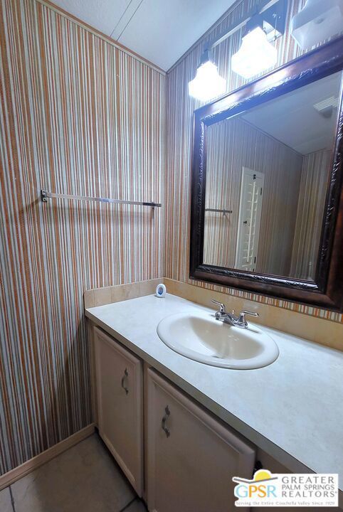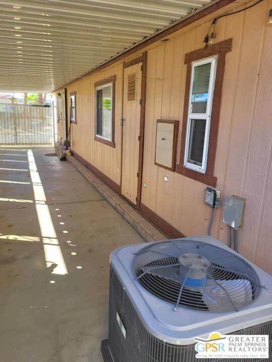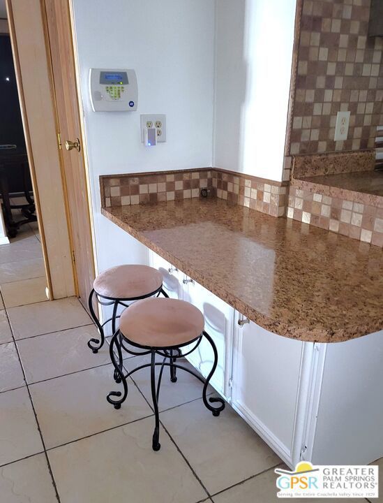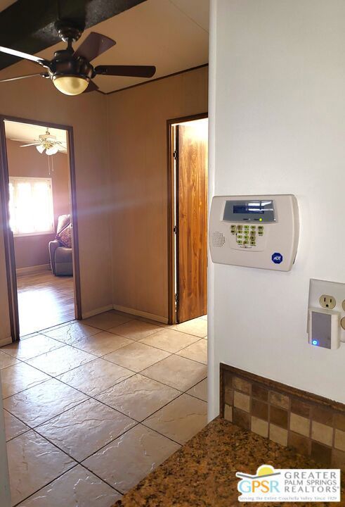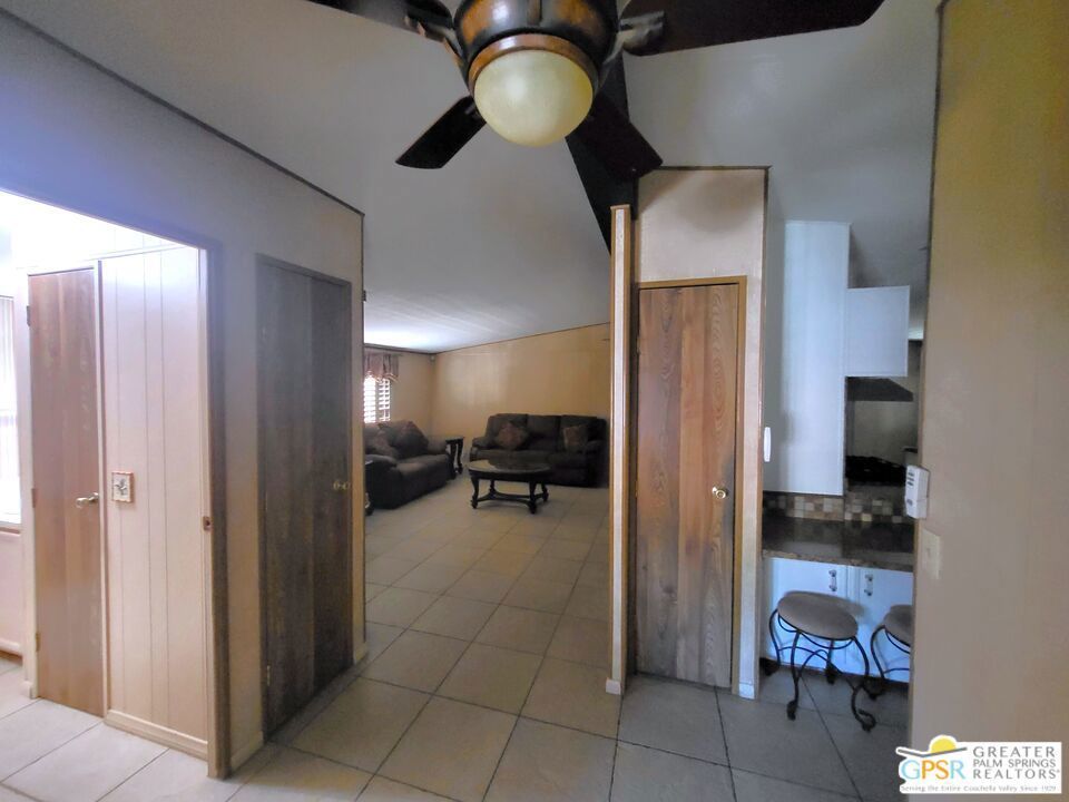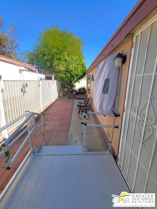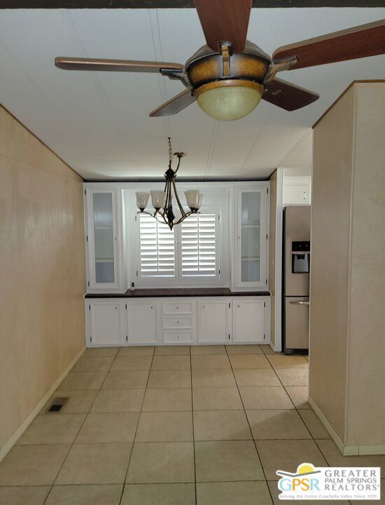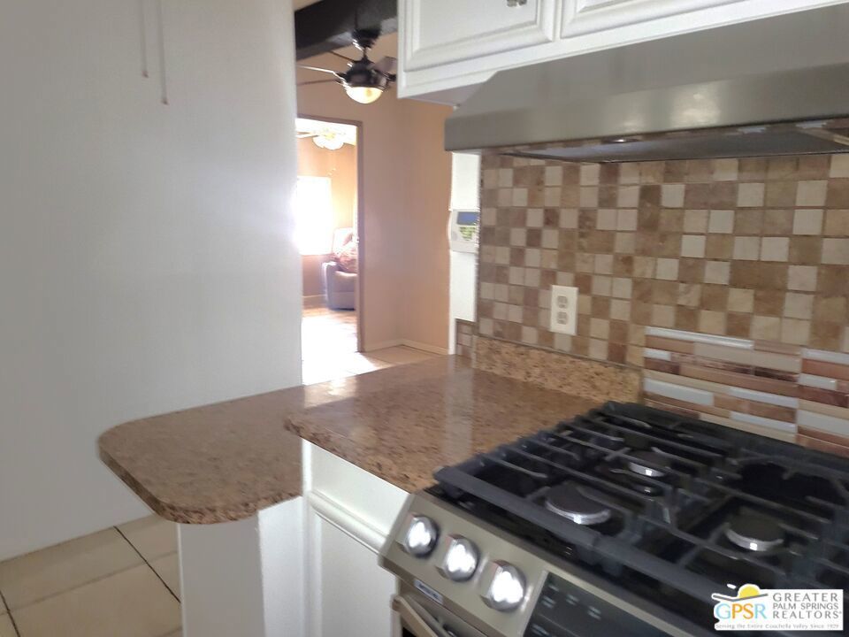 Hidden away behind a screen of fruit and palm trees that has great curb appeal is a gorgeous 3 Bedroom / 2 Bath, 1296 SF home built in 1980, located in the active 55+ Community of Desert Crest Country Club. Set in the West part of the Community and secure behind white metal gates including the fully automated Carport Gate, it is set up for wheelchair ramp access to the Front Entry Door. The North side of the Home has space for a shaded seating area. Steel Security Screen Doors are installed on both entries, allowing a flow of breeze. Newer windows with plantation shutters regulate the light, while a newer HV/AC and Evaporative Cooler regulate the temperature. Inside is a Living Room with a Media Center area, with open access to the Dining Area. Luxurious tile floors run throughout the public spaces, and rich wood styled walls bring a warmth to the interior. The Dining Area has a classic chandelier in place, and you find ceiling fans installed throughout the Home. A built-in Windowed Hutch brings natural light into the Dining space. The galley style Kitchen has been completely upgraded with new appliances that include a banquet doored Refrigerator, massive 5 burner built-in gas Range and Hood, and a Dishwasher to die for. The large double sink will handle any large cooking plans. A neat Breakfast Bar is around the corner as well as a doored Pantry area. A large Hall space with ceiling fan is the central access to the two Bedrooms & Baths. The larger Bedroom is ensuite and includes a walk-in Closet and enlarged Shower. Other Bedrooms are spacious; one has been used as a TV Room. The Bedrooms are warm with luscious laminate wood flooring, which complements the walls. You have everything you need in this private feeling Home, and there are some furnishings already included for you. Outside, the low-maintenance landscaping that surrounds the rear fully covered Patio which is completely fenced for privacy, ensures that upkeep remains effortless, allowing residents to focus on the joys of community living. The rear wall with its decor and plantings is a great spot to enjoy your serenity. Located just down the road from the huge Clubhouse, natural hot mineral spring water pool & multiple spas, and golf facilities that are free to the Owners, this home enjoys the perks of a lively lifestyle, surrounded by the scenic beauty of the desert landscape in the Western Coachella Valley. the gated Carport has room for two vehicles, and extra space for a Golf Cart. The interior of the Home can be directly accessed from here. The Desert Crest Country Club community boasts a 9-hole golf course, inviting residents to enjoy leisurely rounds amid the picturesque setting of pond and mature trees that boast views of Mounts San Jacinto and San Gorgonio and the iconic windmills of the Banning Pass. This oasis extends beyond the golf course, offering a multitude of amenities enhancing your daily life. Residents here enjoy a multi-faceted Clubhouse featuring a healthy mineral water Pool and Spas, providing a serene escape and a hub for plenty of social connections. Indoor Shuffleboard and other activities are a welcome diversion here at the Clubhouse, with many interior facilities to keep you moving. The onsite cafe caters to culinary cravings, the dog groomers attend to furry companions, and the real estate office ensures all needs are met with ease. These conveniences foster not just a residence but a sense of belonging within a home and community bound by shared experiences and vibrant camaraderie. This home represents a harmonious blend of comfort, style, and functionality, creating a delightfully private haven within the heart of Desert Crest Country Club. Whether indulging in a round of golf, luxuriating in the mineral water pool, or simply savoring the serenity of the surroundings from your very private rear deck, this property offers a unique and fulfilling 55+ living experience, where every moment resonates with the essence of a life well-lived.