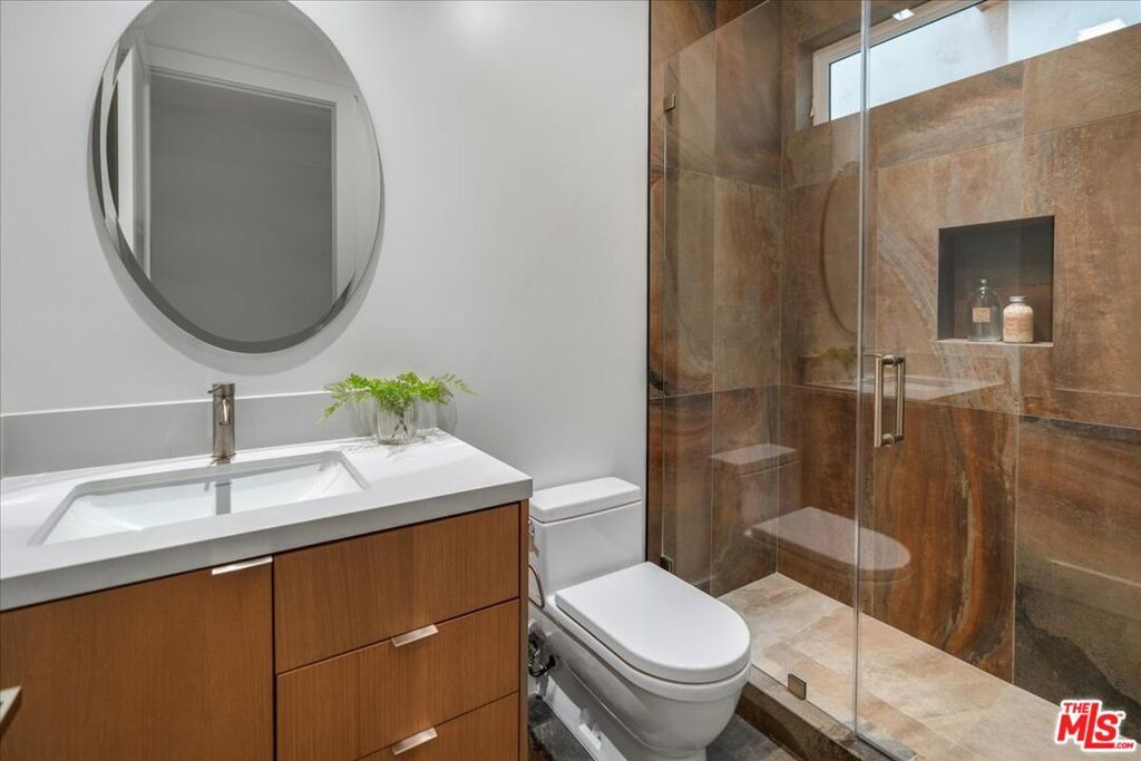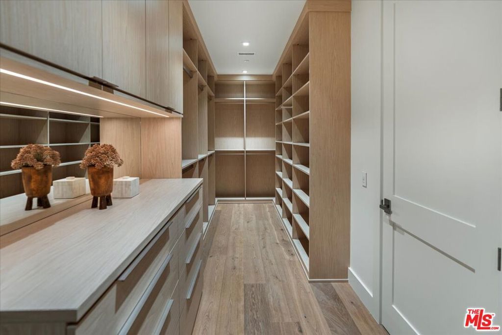Location matters. Perfectly positioned in the heart of Brentwood, this brand-new 4,064-square-foot residence set on a generous 7,541-square-foot lot defines modern California living: a seamless blend of timeless design, thoughtful functionality, and refined sophistication. The home opens with soaring 11-foot ceilings and expansive French white oak floors that create warmth and openness throughout. The main level features a formal living room, an elegant dining area, and an inviting kitchen and family room that seamlessly connect for effortless entertaining and everyday living. The layout flows beautifully from the dining room connected by a butler's pantry into a stunning open-concept kitchen and family room. The chef's kitchen showcases a large Sub-Zero refrigerator with bottom freezer, Wolf appliances, a farm sink, built-in microwave within the island, a prep sink, and space for a second dishwasher. The family room, framed by custom built-in cabinetry, opens through French doors to a covered patio and an expansive, lush backyard a huge grassy retreat perfect for kids to run, play, and enjoy outdoor living. The space is framed by mature landscaping and a stately olive tree, creating a private and serene setting. Also on the main floor is a private office or guest suite with ensuite bath, a dedicated powder room, and a wraparound storage or AV closet beneath the staircase ideal for luggage or seasonal items. Upstairs, a floating loft serves as a versatile hybrid space fully wired for media and ideal as an office, gym, or reading retreat. Three spacious bedrooms include a full laundry room with LG washer/dryer, sink, and custom cabinetry. The primary suite features vaulted ceilings, two walk-in closets (one massive, one generous), and a spa-like bathroom with dual vanities, soaking tub, oversized shower with bench, and sleek built-ins. French doors open to a private stone-covered balcony overlooking mature eucalyptus trees and tranquil treetop vistas. Built with uncompromising attention to quality, the construction is exceptional throughout. Lightweight concrete beneath the French white oak flooring provides superior sound insulation and structural integrity. A four-zone HVAC system ensures personalized comfort, while dual tankless water heaters offer efficiency and convenience. Fire-retardant shingles and concrete siding, all pre-treated for fire resistance, deliver lasting peace of mind. This rare Brentwood opportunity combines privacy, sophistication, and convenience in one of the city's most desirable neighborhoods. Enjoy the very best of Brentwood living from top-rated schools and tree-lined streets to upscale shops, dining, cafs, and Whole Foods just minutes away. The perfect fusion of design excellence, quality craftsmanship, and lifestyle.