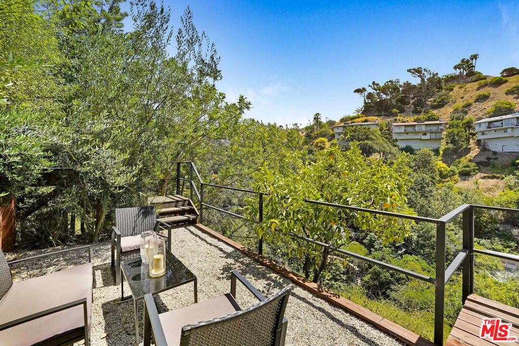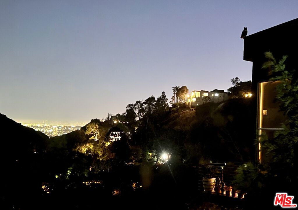 This is a MUST SEE home. Meticulously renovated house PLUS a separate, stylish bonus unit! Breathtaking Panoramic city and canyon Views- the pictures DO NOT do the views justice. This is an exceptional opportunity to live in peaceful tranquility in a modern, sophisticated home just minutes from the famous Sunset Strip, hiking trails, and with easy access to canyon roads and freeways. Making this home even more exceptional is its expansive double lot on a total quarter-acre retreat. The house features vaulted ceilings, wood floors, two fireplaces, new windows, new roof, and an upgraded electrical panel wired for an electric vehicle charger. Additional highlights include a laundry room, ample storage, a two-car attached garage, and much more. The chef's kitchen boasts a high-end suite of GE Monogram appliances, built-in wine storage, an outfitted pantry, Carrera marble countertops, and beautiful custom cabinets. The primary suite is a private sanctuary on its own floor, offering views from every window, a custom walk-in closet, sitting room with city and canyon views, private office or nursery, additional closet, plus a spa-inspired en-suite bathroom featuring dual vanity sinks, Carrera marble counters, designer polished nickel finishes, freestanding soaking tub, and spacious shower. *Bonus* a guest suite below the main home with its own private entrance, wine bar, living/dining area, full kitchen, bathroom, and laundry ideal for guests, creative/office space, or a possible income opportunity. Multiple decks and a tiered backyard offer outdoor entertaining space with a barbecue area, seating and dining areas overlooking the relaxing sounds of the creek that flows at the foot of the property. Square footage is an estimate and reflects the combined total of both spaces. Buyer to verify all measurements to their own satisfaction. A rare opportunity and true Hollywood Hills retreat!