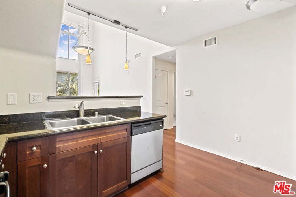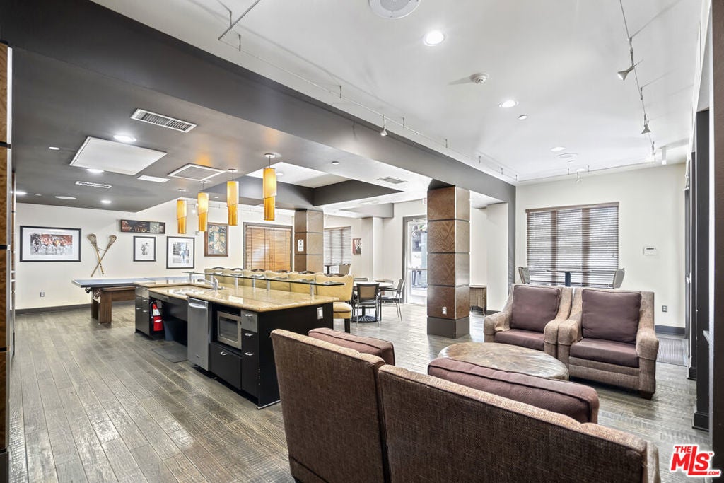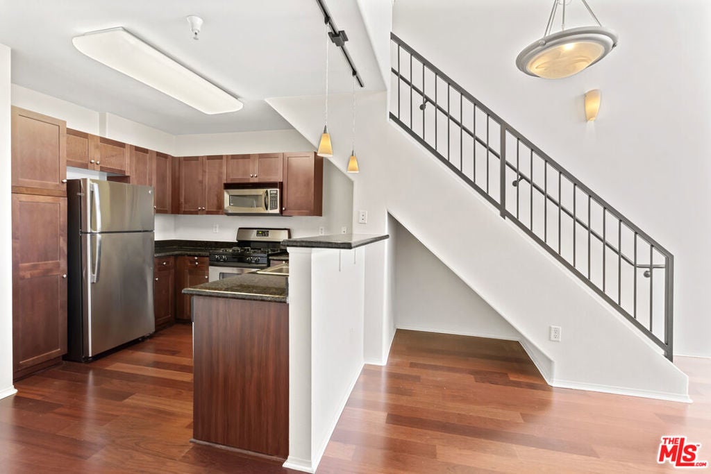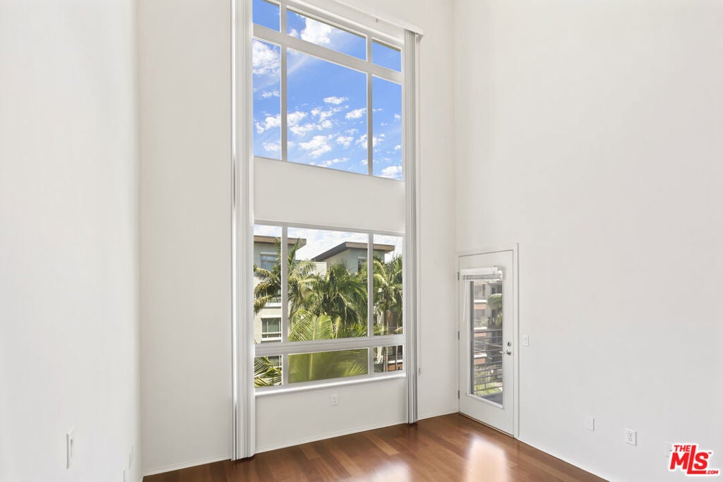 Highly sought-after top-floor residence with soaring 17-foot ceilings features 1-bedroom + loft layout and an open-concept living space with dramatic double-height windows that fill the home with natural light. The modern kitchen showcases granite countertops, rich wood cabinetry, stainless steel appliances, and a breakfast bar overlooking the spacious living and dining areas with hardwood floors throughout. The main level includes a well-proportioned bedroom with a walk-in closet, a large bathroom with a soaking tub, and side-by-side laundry. Upstairs, an airy loft offers the perfect flex space for a home office, gym, or media lounge. A private balcony completes this bright and inviting home. SAVOY residents enjoy resort-style amenities including landscaped courtyards, pool, spa, fitness center, business center, Sports Cafe clubhouse, BBQ grills, screening room, library, conference room, rooftop deck with skyline views, guest parking, and a 24-hour attended lobby. Ideally located in the heart of Little Tokyo and the Arts District, this vibrant DTLA neighborhood is surrounded by eclectic dining, art, and culture making Savoy one of the most exciting addresses to call home. ***2 Deeded Parking Spaces Included!***