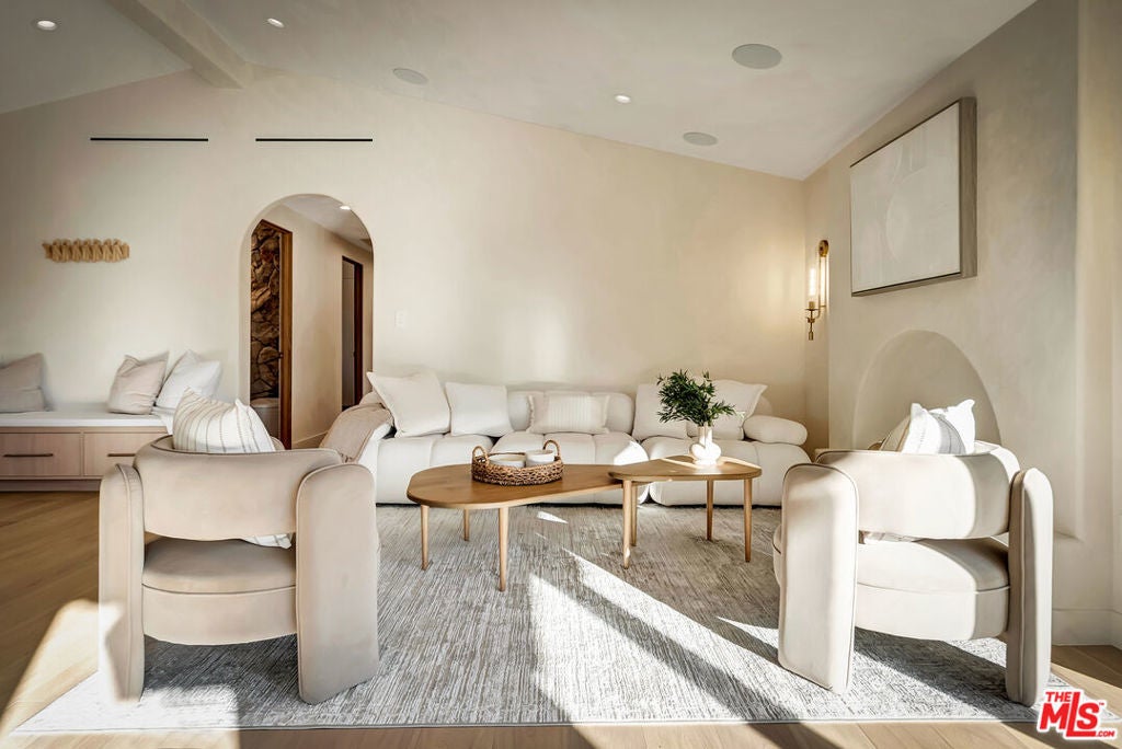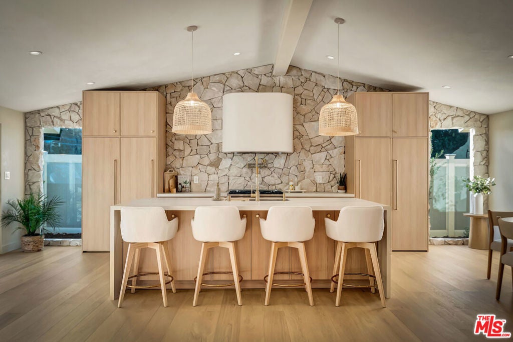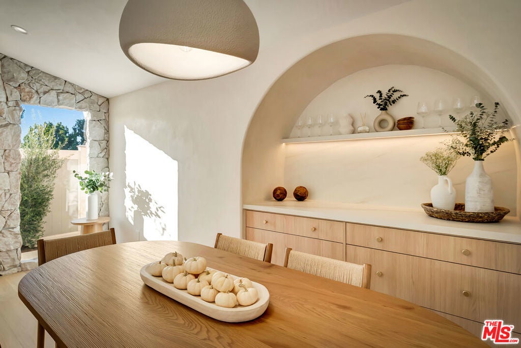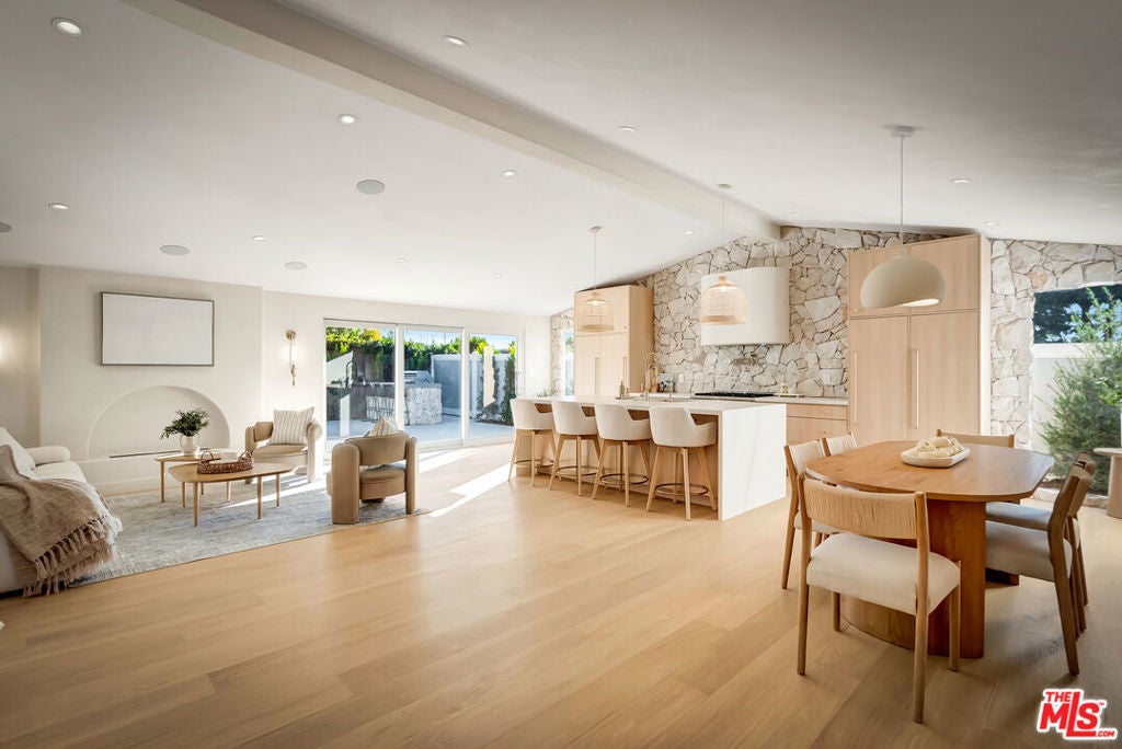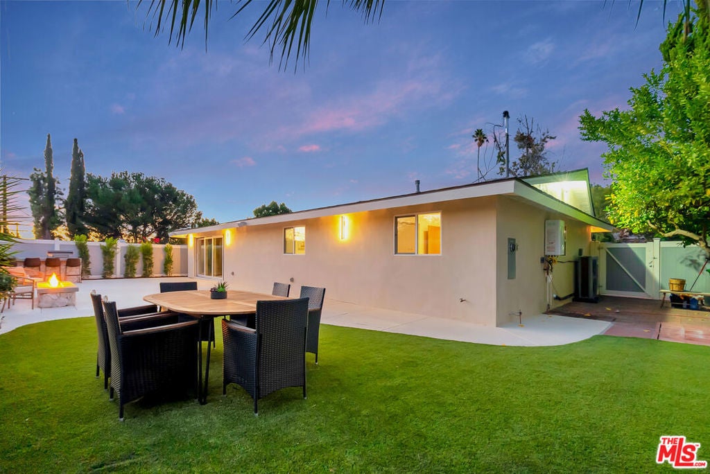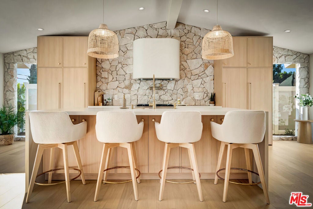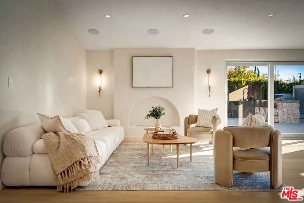 Rebuilt and reimagined from the studs, this stunning 4-bedroom, 3.5-bath residence exemplifies modern sophistication, superior craftsmanship, and timeless design. Every detail has been thoughtfully curated to create a seamless blend of luxury, comfort, and functionality. The open-concept floor plan is filled with natural light and highlighted by smooth plaster walls, natural stone accent features, and exquisite custom-built cabinetry throughout. The expansive living and dining areas flow effortlessly together, creating an ideal setting for entertaining or everyday living. The gourmet kitchen is a true centerpiece, featuring high-end appliances, designer fixtures, and a large center island. Sliding glass doors lead to a beautifully landscaped backyard retreat, complete with a custom-built BBQ, firepit, and integrated sound system the perfect space for outdoor dining, relaxation, and entertaining. Nearly every element of the home has been upgraded, including brand-new electrical, plumbing, and HVAC systems, as well as integrated LED lighting throughout. A spacious, dedicated laundry/powder room adds everyday convenience to the home's thoughtful design. Located close to premier shopping, dining, transportation, and top-rated schools, this exceptional property offers the perfect combination of luxury, comfort, and convenience a rare opportunity to experience refined Woodland Hills living at its finest.