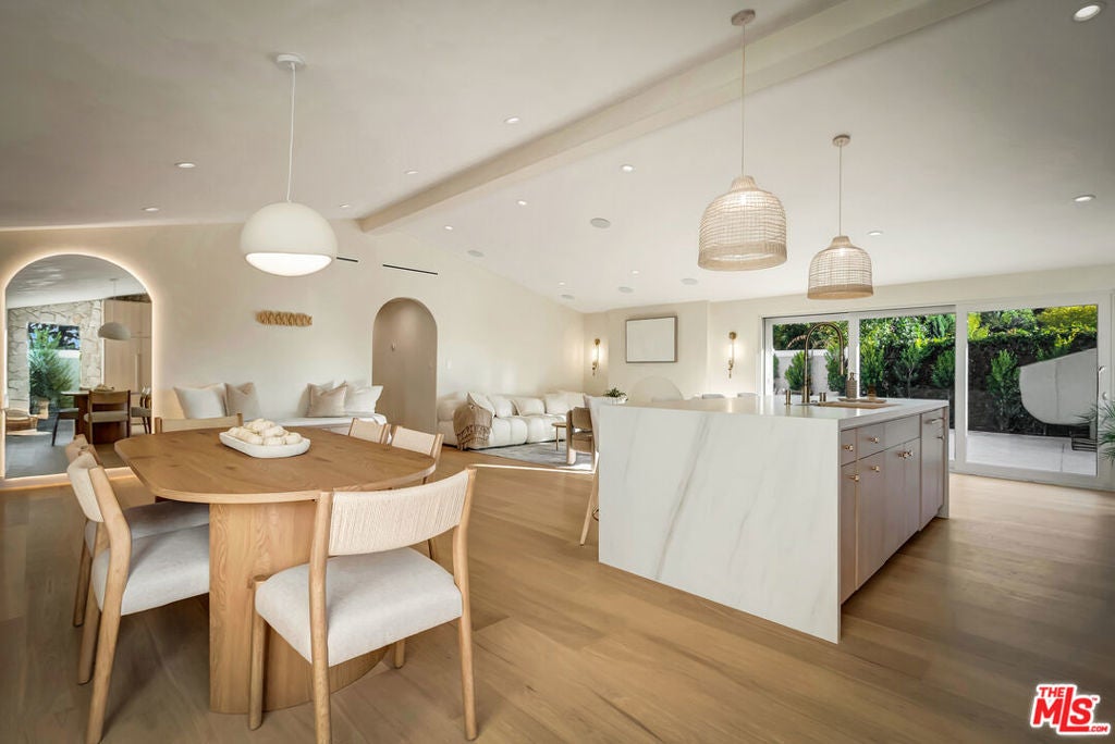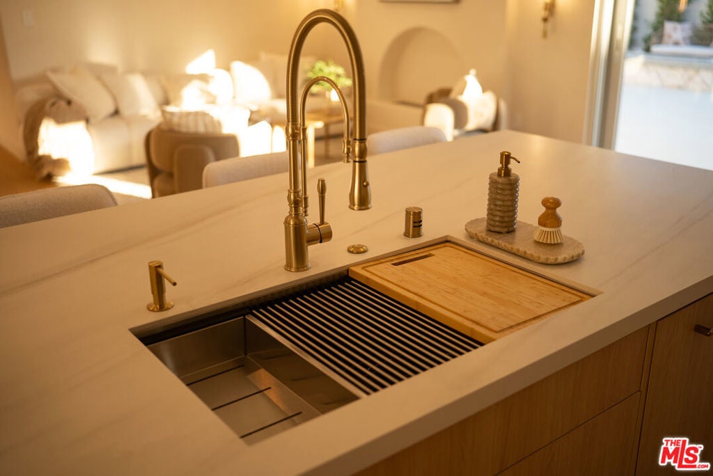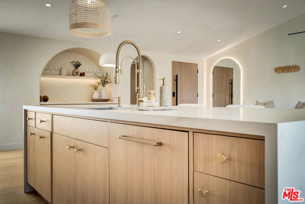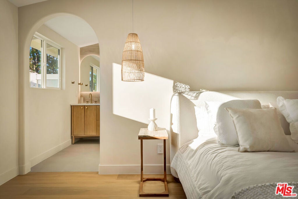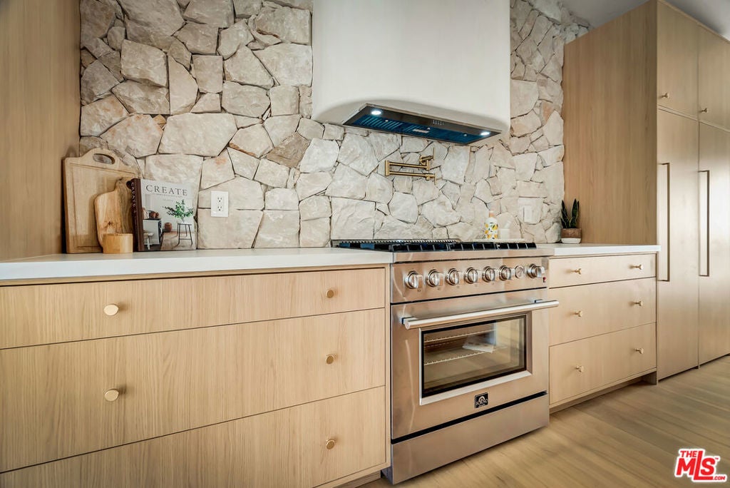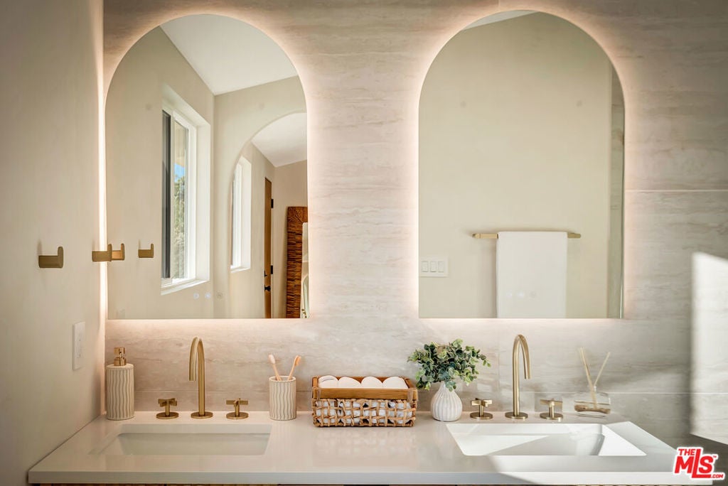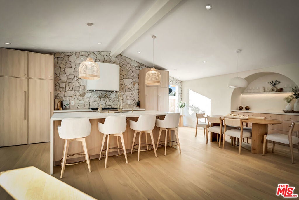 Rebuilt and reimagined from the studs, this stunning 4-bedroom, 3.5-bath residence exemplifies modern sophistication, superior craftsmanship, and timeless design. Every detail has been thoughtfully curated to create a seamless blend of luxury, comfort, and functionality. The open-concept floor plan is filled with natural light and highlighted by smooth plaster walls, natural stone accent features, and exquisite custom-built cabinetry throughout. The expansive living and dining areas flow effortlessly together, creating an ideal setting for entertaining or everyday living. The gourmet kitchen is a true centerpiece, featuring high-end appliances, designer fixtures, and a large center island. Sliding glass doors lead to a beautifully landscaped backyard retreat, complete with a custom-built BBQ, firepit, and integrated sound system the perfect space for outdoor dining, relaxation, and entertaining. Nearly every element of the home has been upgraded, including brand-new electrical, plumbing, and HVAC systems, as well as integrated LED lighting throughout. A spacious, dedicated laundry/powder room adds everyday convenience to the home's thoughtful design. Located close to premier shopping, dining, transportation, and top-rated schools, this exceptional property offers the perfect combination of luxury, comfort, and convenience a rare opportunity to experience refined Woodland Hills living at its finest.