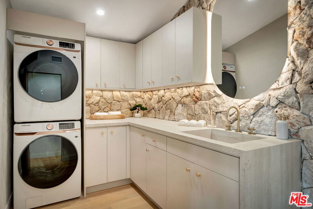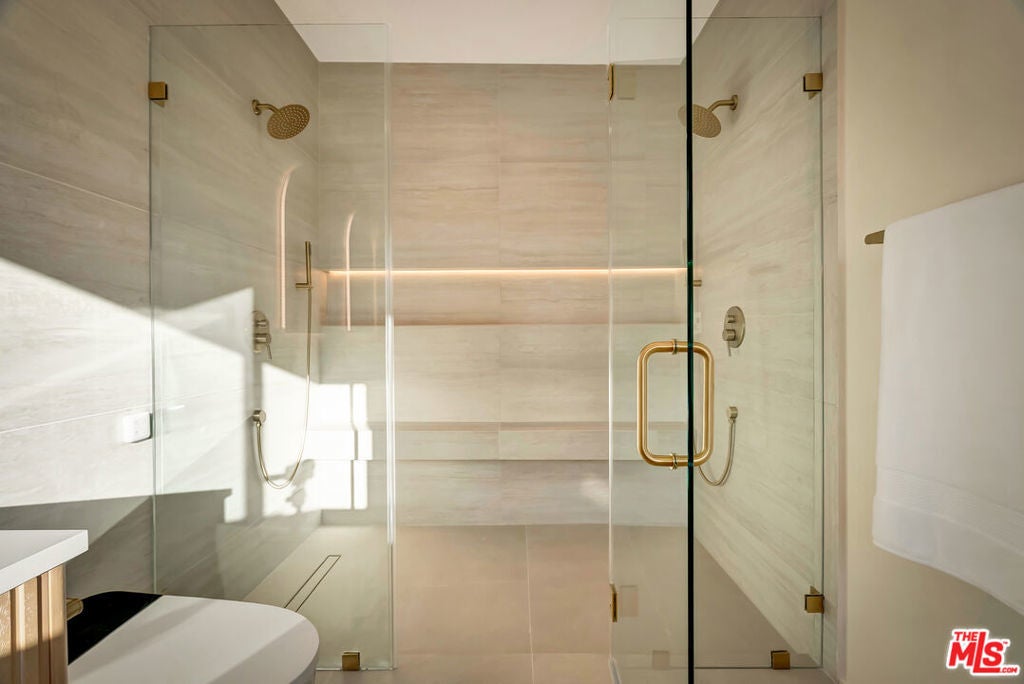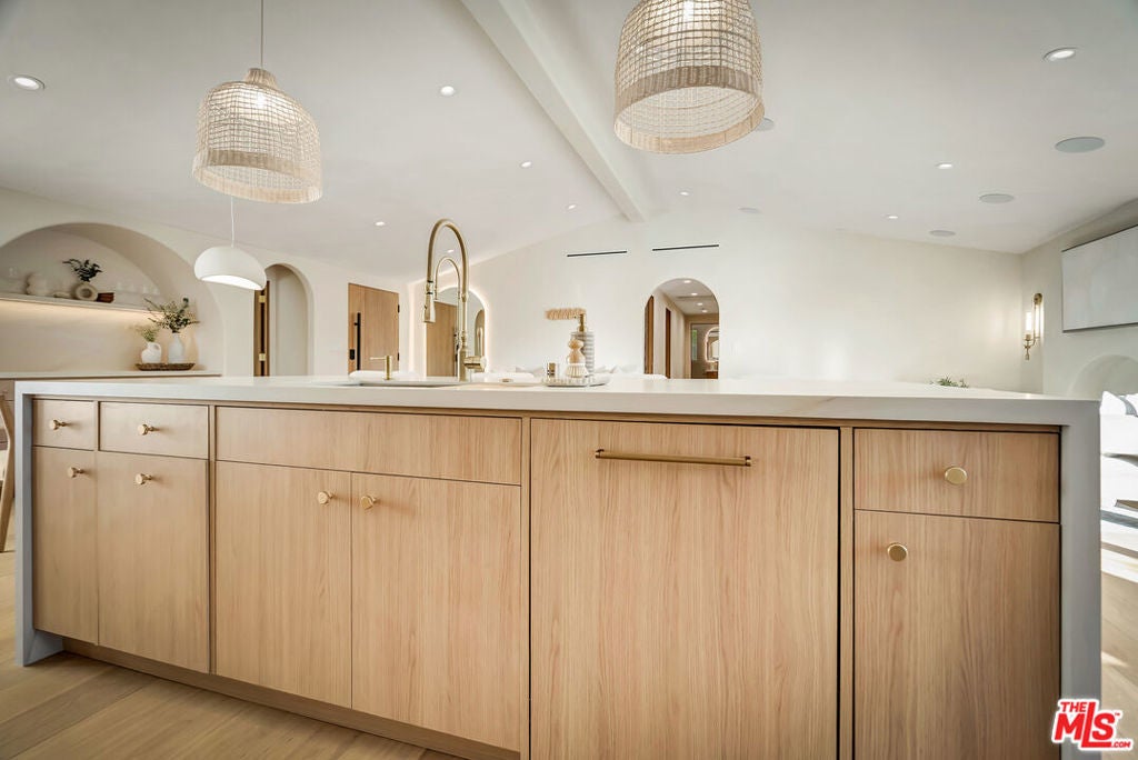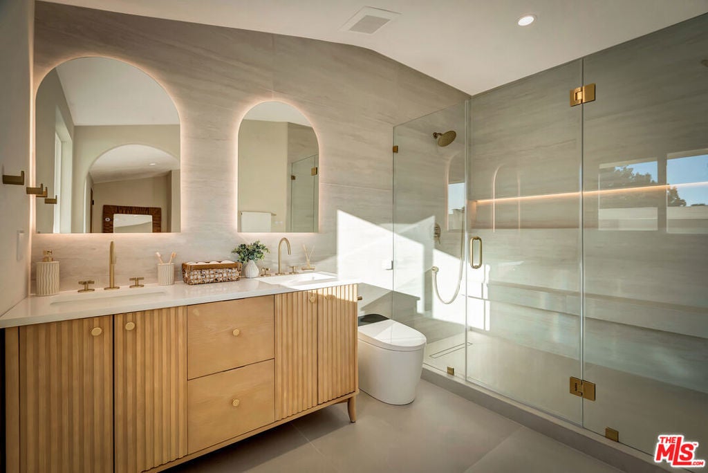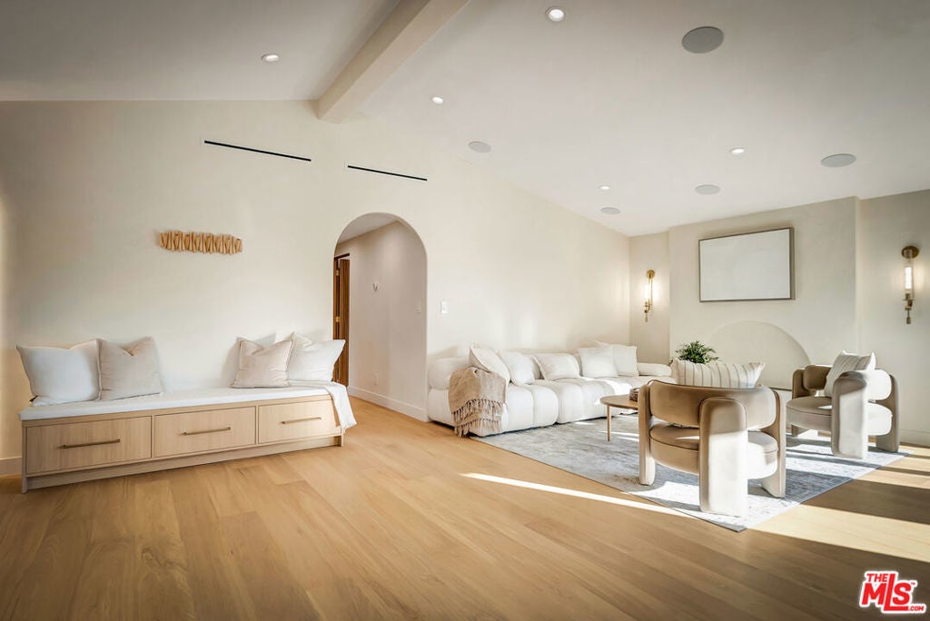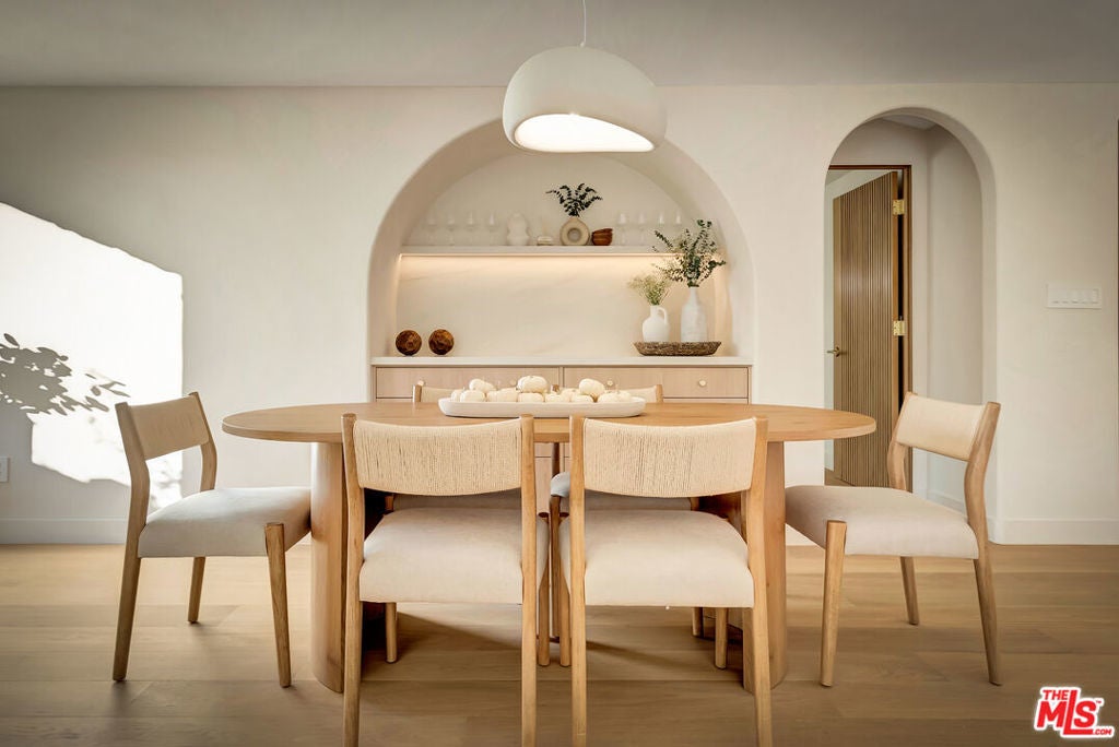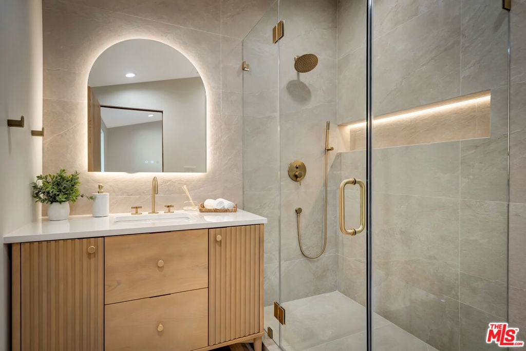 Rebuilt and reimagined from the studs, this stunning 4-bedroom, 3.5-bath residence exemplifies modern sophistication, superior craftsmanship, and timeless design. Every detail has been thoughtfully curated to create a seamless blend of luxury, comfort, and functionality. The open-concept floor plan is filled with natural light and highlighted by smooth plaster walls, natural stone accent features, and exquisite custom-built cabinetry throughout. The expansive living and dining areas flow effortlessly together, creating an ideal setting for entertaining or everyday living. The gourmet kitchen is a true centerpiece, featuring high-end appliances, designer fixtures, and a large center island. Sliding glass doors lead to a beautifully landscaped backyard retreat, complete with a custom-built BBQ, firepit, and integrated sound system the perfect space for outdoor dining, relaxation, and entertaining. Nearly every element of the home has been upgraded, including brand-new electrical, plumbing, and HVAC systems, as well as integrated LED lighting throughout. A spacious, dedicated laundry/powder room adds everyday convenience to the home's thoughtful design. Located close to premier shopping, dining, transportation, and top-rated schools, this exceptional property offers the perfect combination of luxury, comfort, and convenience a rare opportunity to experience refined Woodland Hills living at its finest.