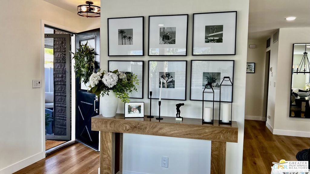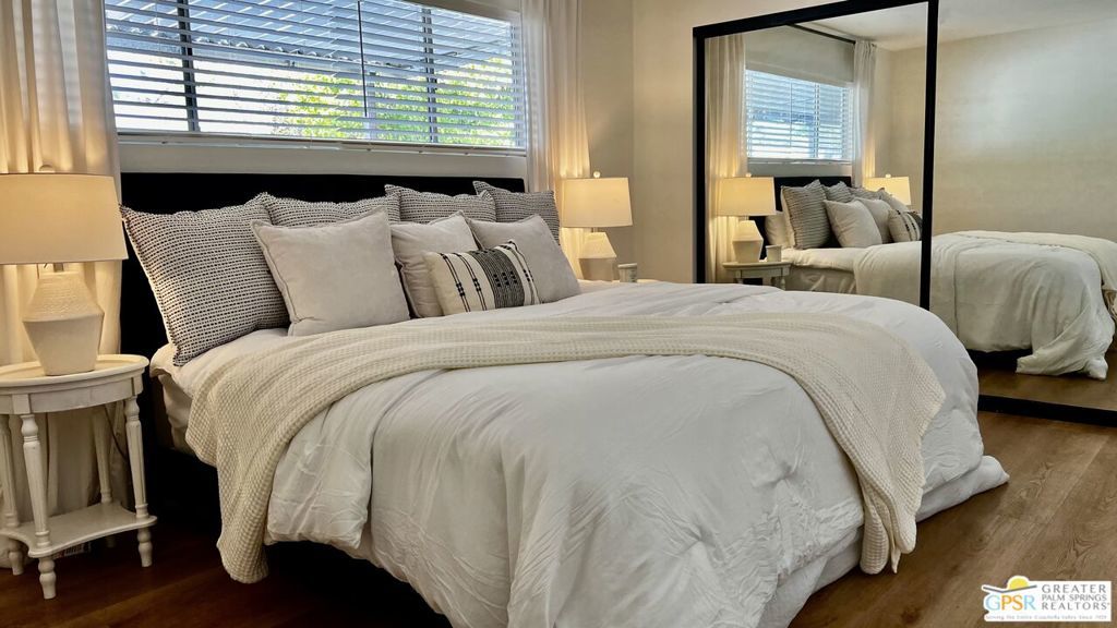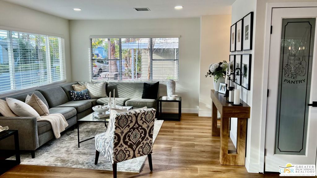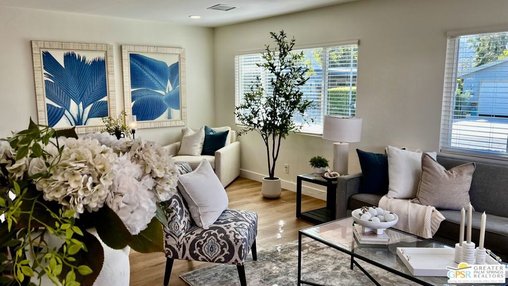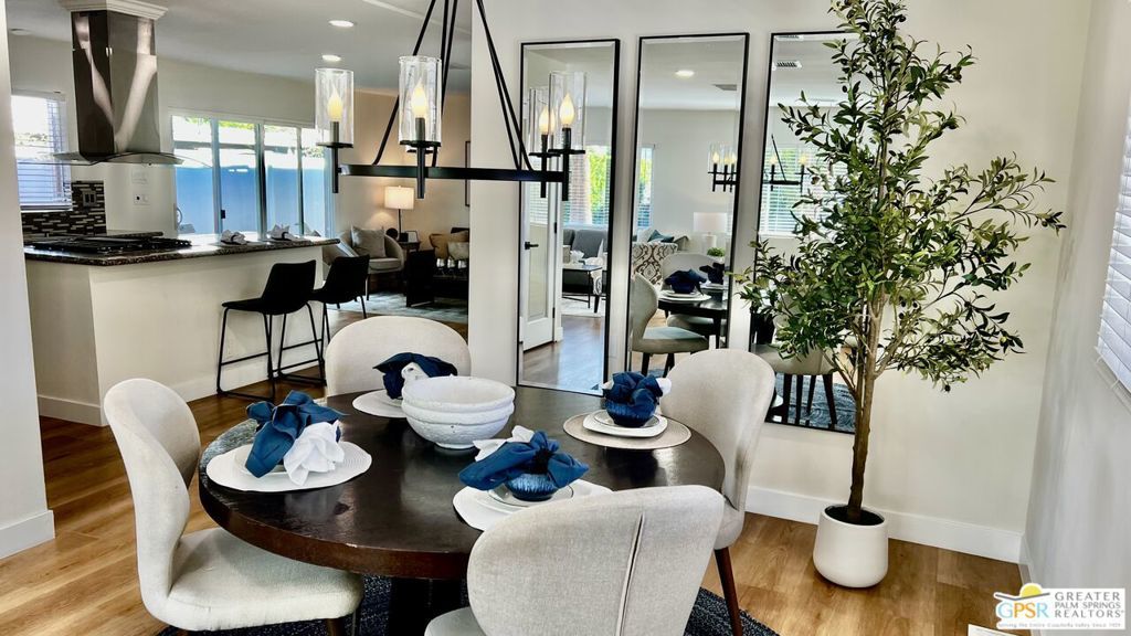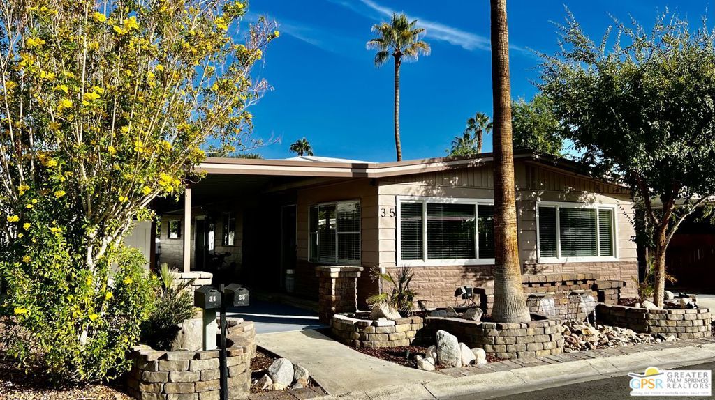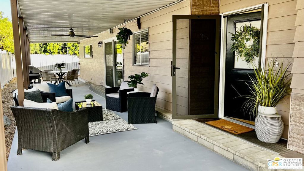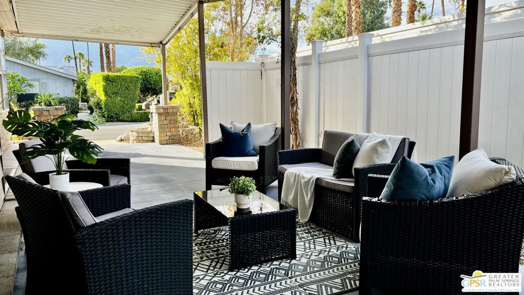 Turnkey Ready & Fully Furnished! Discover easy desert living in this beautifully updated 2 Bed / 2 Bath home offering 1,440 sq. ft. of stylish, move-in-ready space in the highly sought-after, guard-gated 55+ community of Date Palm Country Club. 2024/2025 upgrades include fresh interior and exterior paint, new laminate flooring and baseboards, recessed lighting, and a refreshed kitchen with stainless steel appliances, new countertops, and refurbished cabinetry. Both bathrooms feature modern fixtures and finishes for a clean, contemporary look. Enjoy west-facing mountain views with dual-pane windows, and a charming front yard with a one-of-a-kind lighted water feature. Experience resort-style amenities including an 18-hole golf course, pro shop, Nick's Bistro, 3 pools and spas, tennis and pickleball courts, clubhouse, library, fitness center, dog park, and RV/boat storage. Whether you're seeking a full-time residence or a turnkey desert getaway, this fully furnished home is conveniently located near shopping, dining, and entertainment, offering modern comfort, convenience, and easy living in a premier active adult community. Park approval required. Visit on-site management for details and applications.