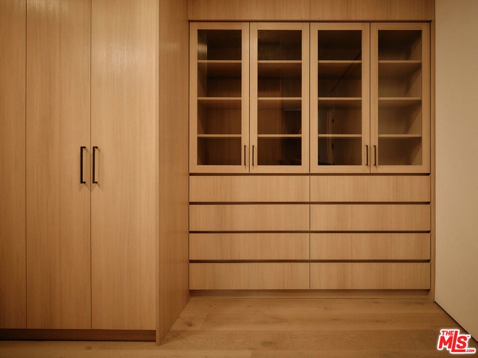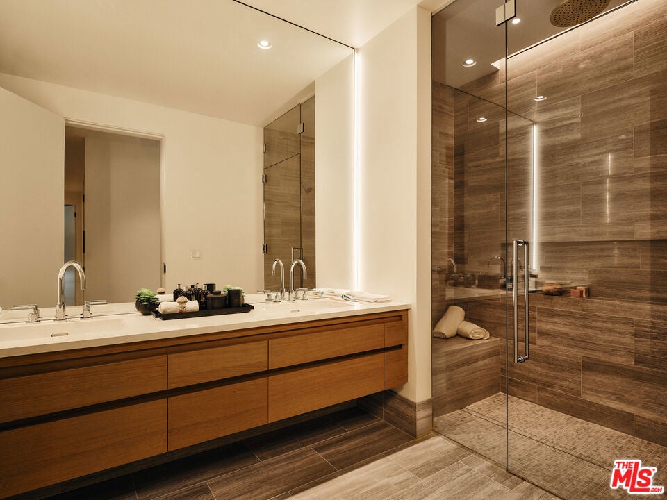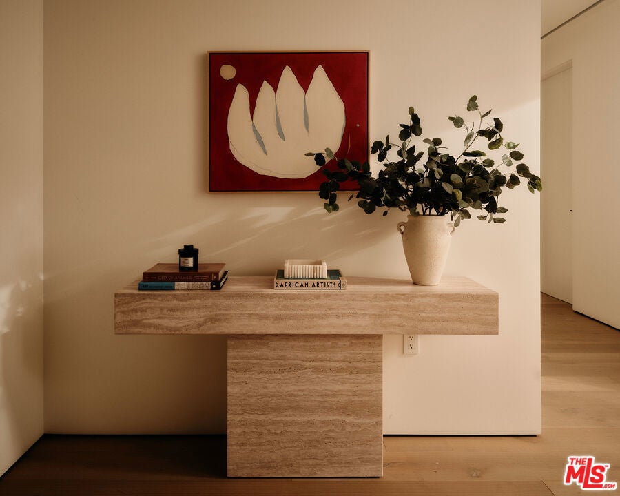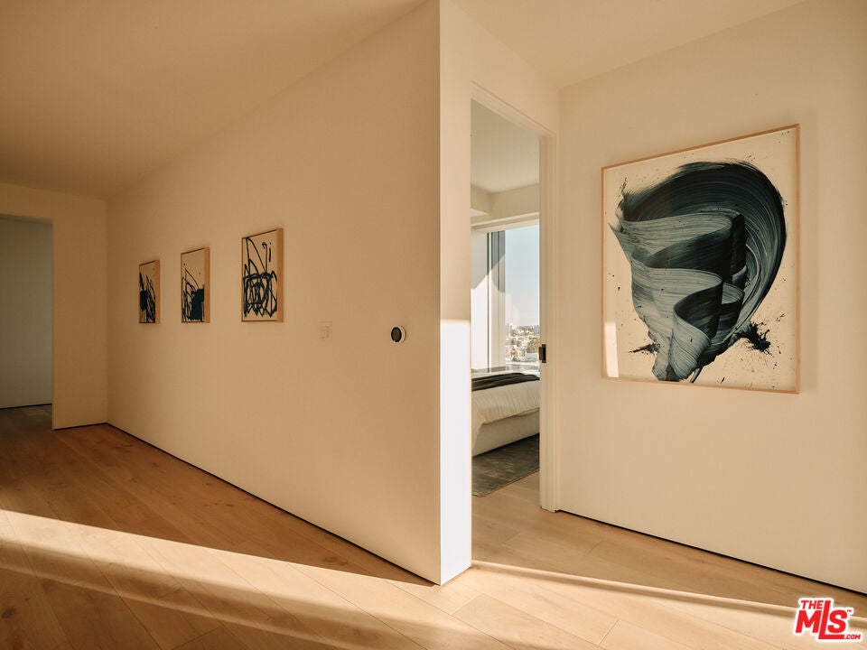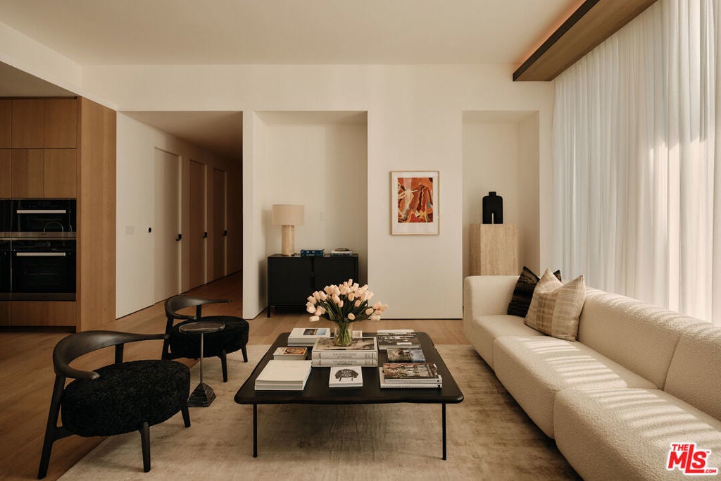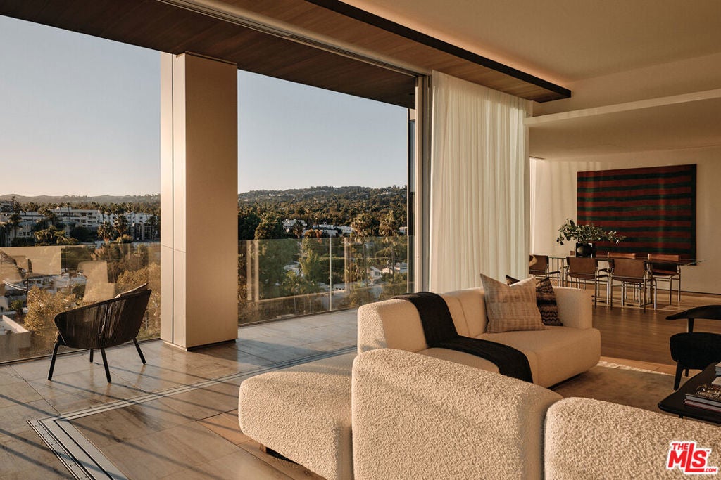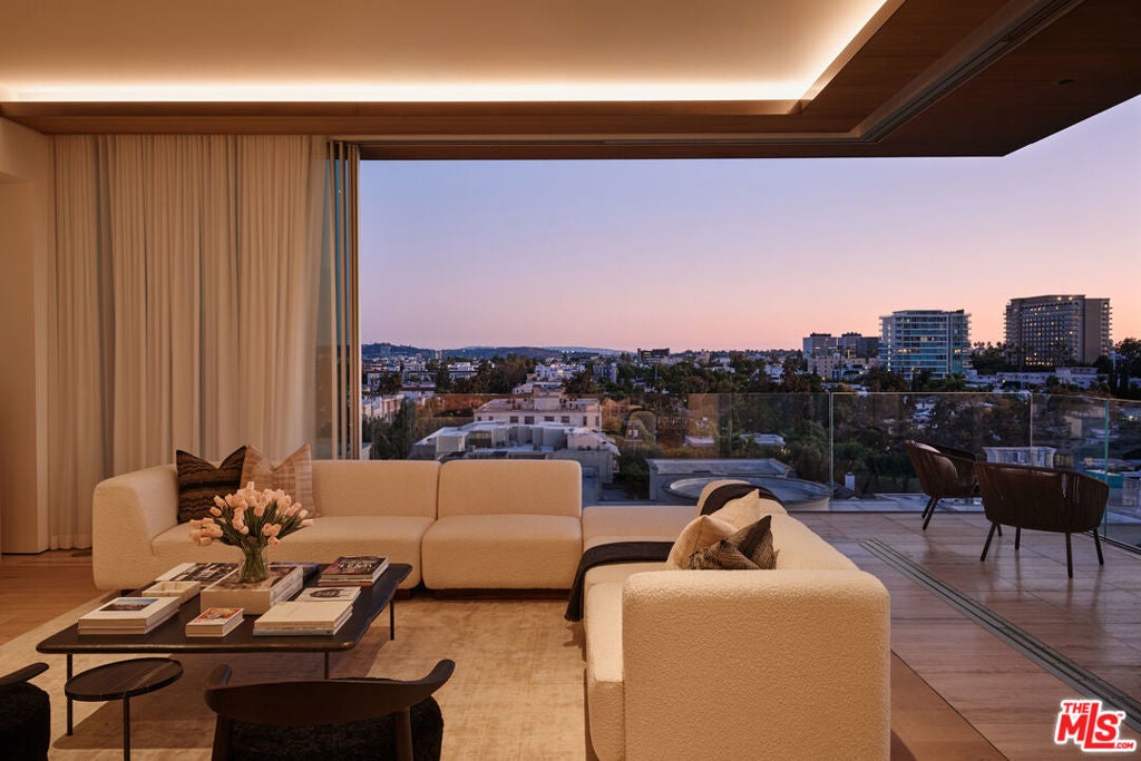 8899 Beverly | Residence 8C | One of the last remaining developer residences at 8899 Beverly, 8C is a bright and sunny 3-bedroom on the southwest corner of the building. Designed with meticulous attention to detail and a seamless blend of indoor and outdoor living spaces, this residence showcases the exquisite craftsmanship of 8899 Beverly, infusing the residential experience with unexpected artistry. The chosen materials reflect quality and character in every facet, from the fumed and wire-brushed French white oak flooring and chrome Dornbracht fixtures to the striking wood and cove lighting ceiling details. The living area boasts soaring 11-foot ceilings and a Swiss-made, museum-quality operable glazing system by Vitrocsa. The south and west-facing walls of ultra-clear, low-iron glass from Germany and Spain slide open to reveal a wrap-around terrace with capless starfire glass railings and endless sunset views. Two additional balconies, originally designed by Richard Dorman and restored with modern glazing, are accessible from all three bedrooms.The kitchen is a chef's dream, equipped with a Gaggenau cooktop, two Miele ovens, a Miele espresso maker, a Sub-Zero refrigerator, and a full-height Sub-Zero wine refrigerator. The primary suite features a private terrace and a gorgeous custom-built walk-in closet. Offering excessive storage for condo living: coat closets, hall closets, the walk in laundry room and guest suites all offer custom buildouts. Olson Kundig's "Love letter to Los Angeles" offers exceptional amenities and full-service living with 24-hour concierge, 24-hour valet parking, and a fitness center with a private studio. Outside, a lushly landscaped quarter-acre oasis awaits with a resort-style pool, spa, fireplaces, and custom outdoor kitchen. Walk to premier dining and shopping destinations, grocery stores, and the best West Hollywood has to offer. Experience the epitome of luxury living in West Hollywood. Contact us for a private viewing today.