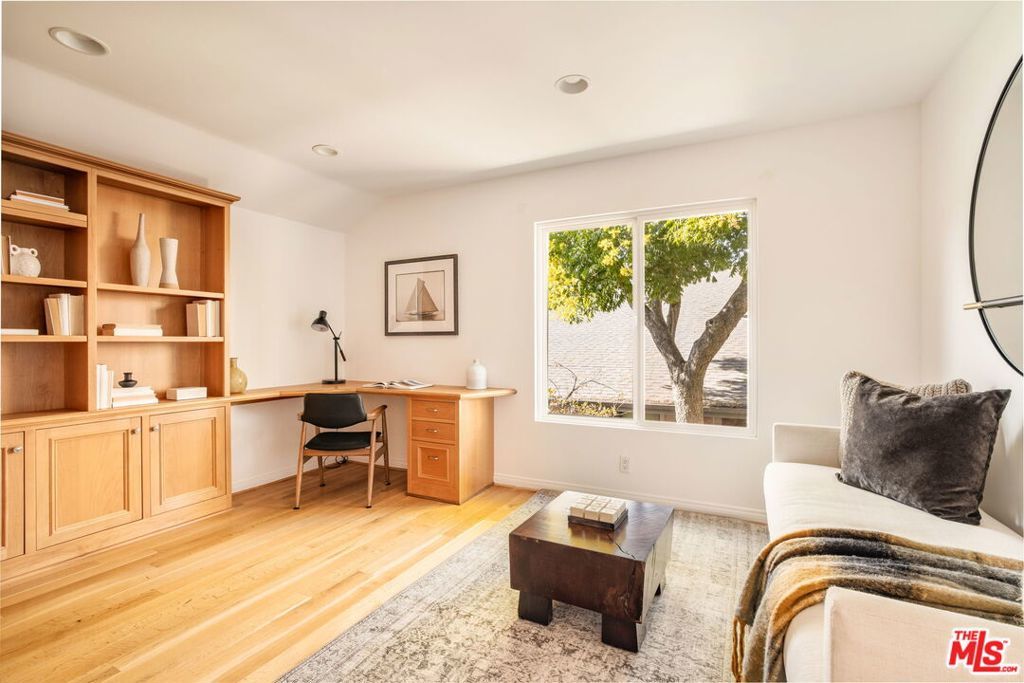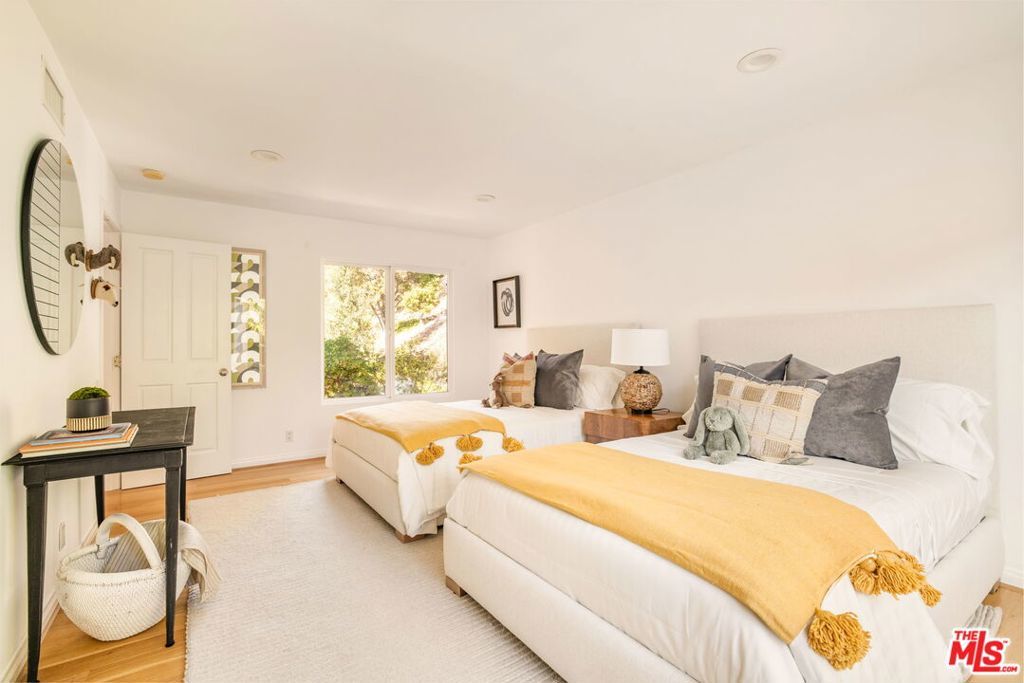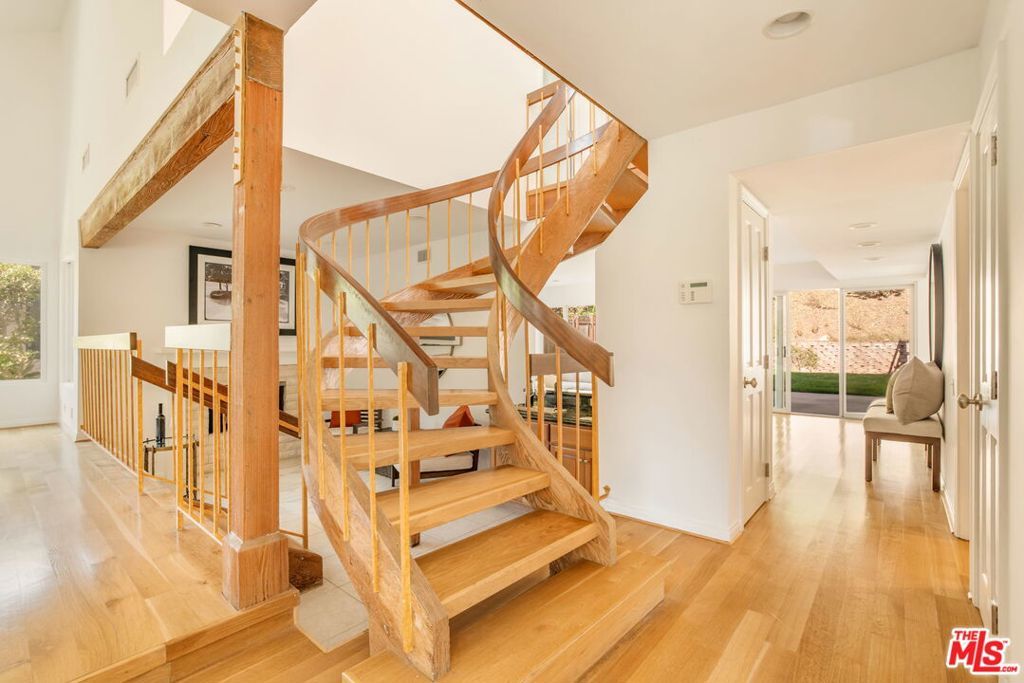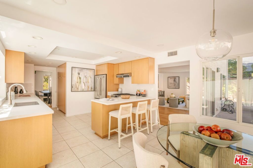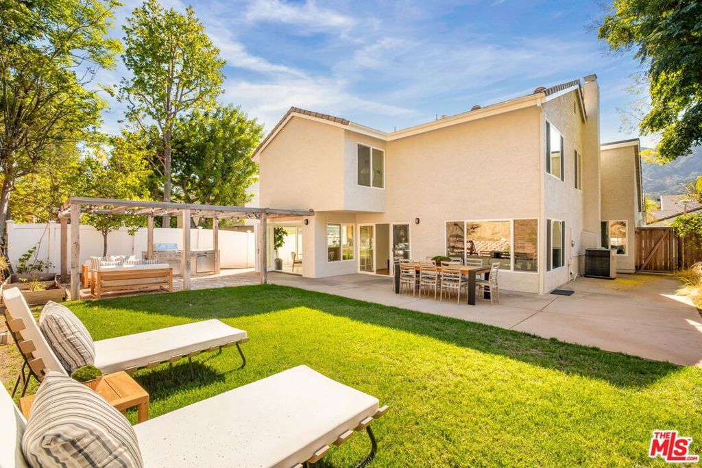 Set on a quiet cul-de-sac in the Palisades Highlands, this beautifully appointed two-level home offers the ideal balance of sophistication, comfort, and California lifestyle living. Enter to soaring ceilings and abundant natural light that fill the expansive living spaces. The formal living room impresses with vaulted ceilings, a gas fireplace, and a wet bar for entertaining, while the adjacent dining room sets the stage for memorable gatherings. Further on a separate family room flows seamlessly to the backyard through sliding glass doors, creating an effortless indoor-outdoor connection. At the heart of the home, the remodeled kitchen boasts custom wood cabinetry, stone countertops, premium Jennair appliances, a pantry, and a charming garden window. A casual breakfast area opens to a pergola-covered flagstone patio complete with a built-in BBQ--ideal for relaxed entertaining and alfresco dining. A sweeping curved oak stairway leads to the upper level, where all four bedrooms are thoughtfully appointed. The primary suite is a private sanctuary with beamed vaulted ceilings, dramatic picture windows framing the Santa Ynez Mountain Range, and exceptional storage with a walk-in closet plus two additional closets. The spa-like ensuite bath features dual vanities, a soaking tub, and a glass-enclosed tile shower. Three secondary bedrooms complete the level, one with a built-in desk ideal for a home office or study. Outdoors, a lush hillside backdrop ensures privacy with no rear neighbors. The backyard offers a grassy lawn, spacious open patios for lounging or dining, and the built-in BBQ for year-round entertaining. Additional highlights include a 3-car garage with direct entry, powder bath on the main level, and access to the Santa Ynez Recreation Center just around the corner--offering a 25-yard lap pool, kiddy pool, spa, playground, tennis and pickleball courts, gym, and game room. With hiking and biking trails of the Santa Monica Mountains nearby and just minutes to Palisades Village, this home captures the essence of California living.