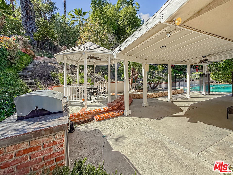 Discover this beautifully cared-for and cherished home of tranquility and elegance at 6129 Rod Avenue, nestled in the prestigious Valley Circle Estates Woodland Hills at its finest. This 4-bedroom, 2.5-bath single level residence spans approximately 2,293 square feet on a generous 12,644-square-foot lot, offering privacy, modern updates, and effortless SoCal living.Step inside to an open, bright floor plan filled with natural light from three huge stunning picture windows and a sliding glass door, that create a seamless indoor-outdoor flow and frame serene views of the lush yard. The inviting kitchen features modern appliances including double ovens, refrigerator, and dishwasher plus new countertops, perfect for both casual dining and entertaining. High-pitched ceilings and recessed lighting further enhance the home's spacious, airy ambiance.The en-suite primary bedroom opens directly to the backyard with views of the sparkling pool and spa. It offers a walk-in closet and a designer bathroom with dual vanities and stylish finishes. Three additional bedrooms provide flexibility for family, guests, or a home office. A convenient laundry room with washer and dryer, central A/C, and a thoughtfully remodeled powder room complete the interior.Outdoors, the private backyard is a true retreat with a variety of fruit trees, a recently replastered pool and spa, built-in BBQ, and a covered patio with ceiling fan and charming gazebo perfect for relaxing or al fresco dining. A lovely brick-lined entryway adds timeless curb appeal. Located near award-winning schools, fine dining, The Village, The Commons, premier shopping, and scenic hiking trails, this home embodies the very best of Woodland Hills living.