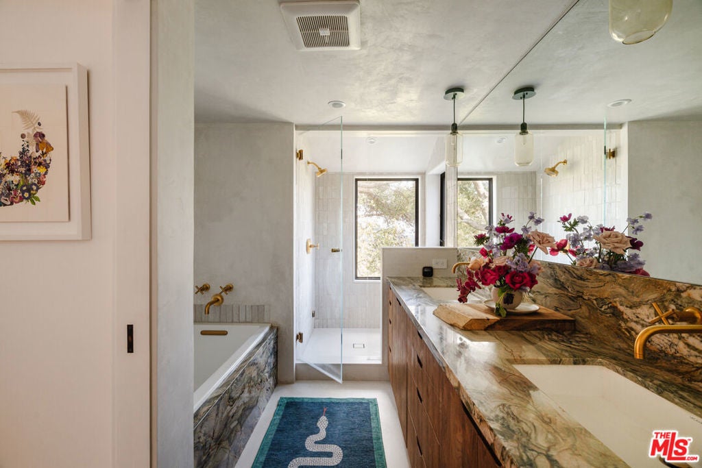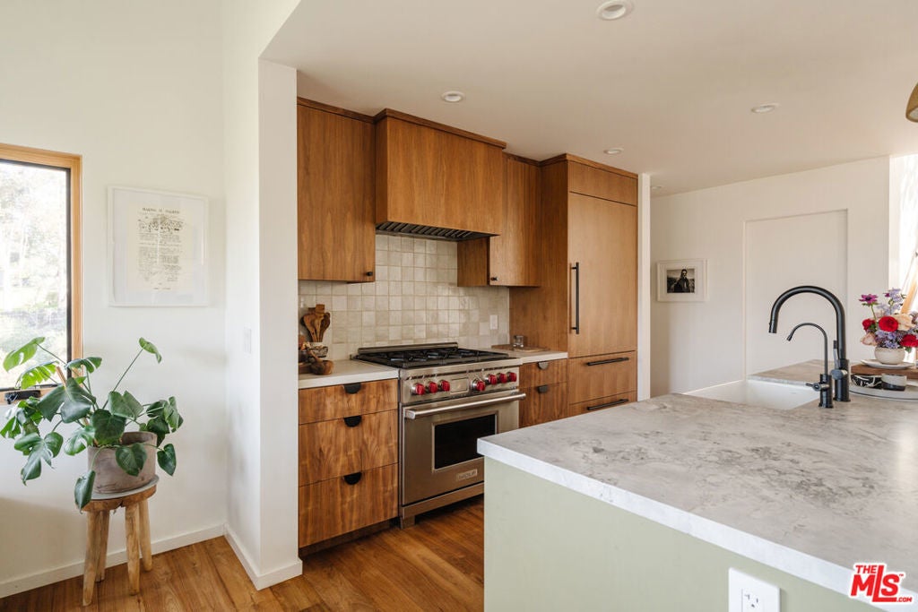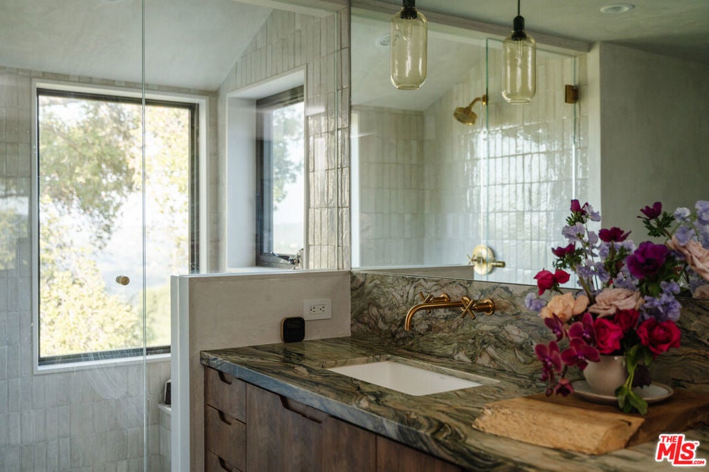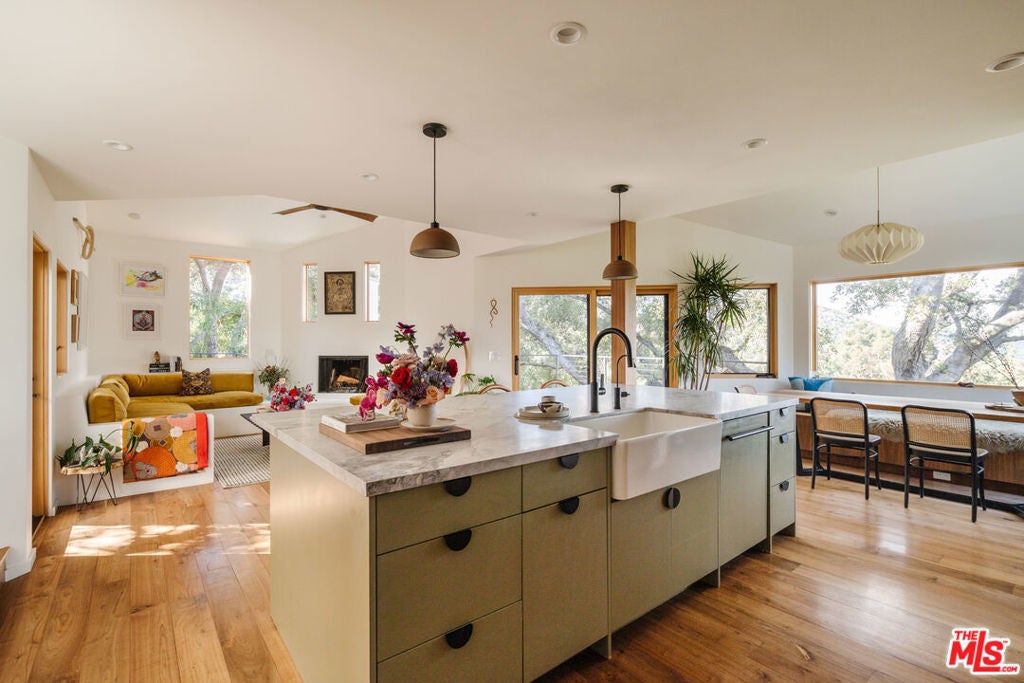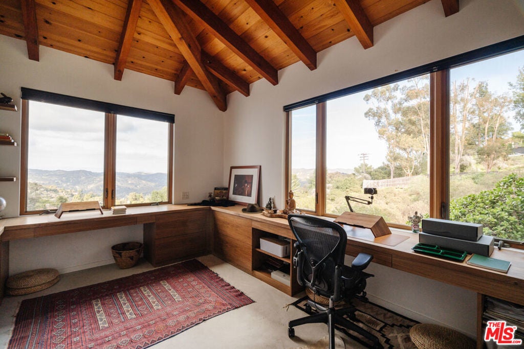 Situated behind gates and commanding views of the rolling canyons and hills of Topanga, this mountain masterpiece is perfectly placed within 2.5 acres of established gardens. Nothing says welcome home better than the reveal of this stunning home as the gate opens. Originally built in 1980 and just recently updated this contemporary estate rises up from the idyllic canyon setting to form a tranquil juxtaposition. Effortless in its easy flow for entertaining and indoor/outdoor living with its open airy layout, it is also warm and gentle on the soul with the use of the finest of materials and modern conveniences. Designed by Canadian architect W. Earl Wear and remodeled with reverence and sensitivity to its natural environment, this luxurious hillside retreat encompasses all that canyon living has to offer. The open-plan design also features a large attached studio with high ceilings.