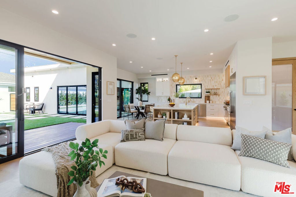 Introducing a new built architectural masterpiece that epitomizes modern elegance and luxurious design. Encompassing approximately 4,000 square feet of exquisite finishes, the main residence offers five spacious bedrooms and four and a half baths, a detached 1BR / 1BTH ADU, and several outdoor spaces. The heart of the home is an open living space, featuring a gourmet kitchen and an airy breakfast nook. The living area flows seamlessly outdoors to a private oasis, complete with a pool and spa, a chic BBQ area, and a heated covered patio, perfect for entertaining. Upstairs you'll find a stunning primary suite, with a dazzling bath and a walk in closet, additional three bedrooms and two baths, and two large balconies. The ADU provides additional flexible space for guests, yoga studio, or an office, for a trendy and sophisticated lifestyle. This home embodies contemporary opulence in the heart of Valley Village, crafted for those who appreciate style, luxury and functionality.