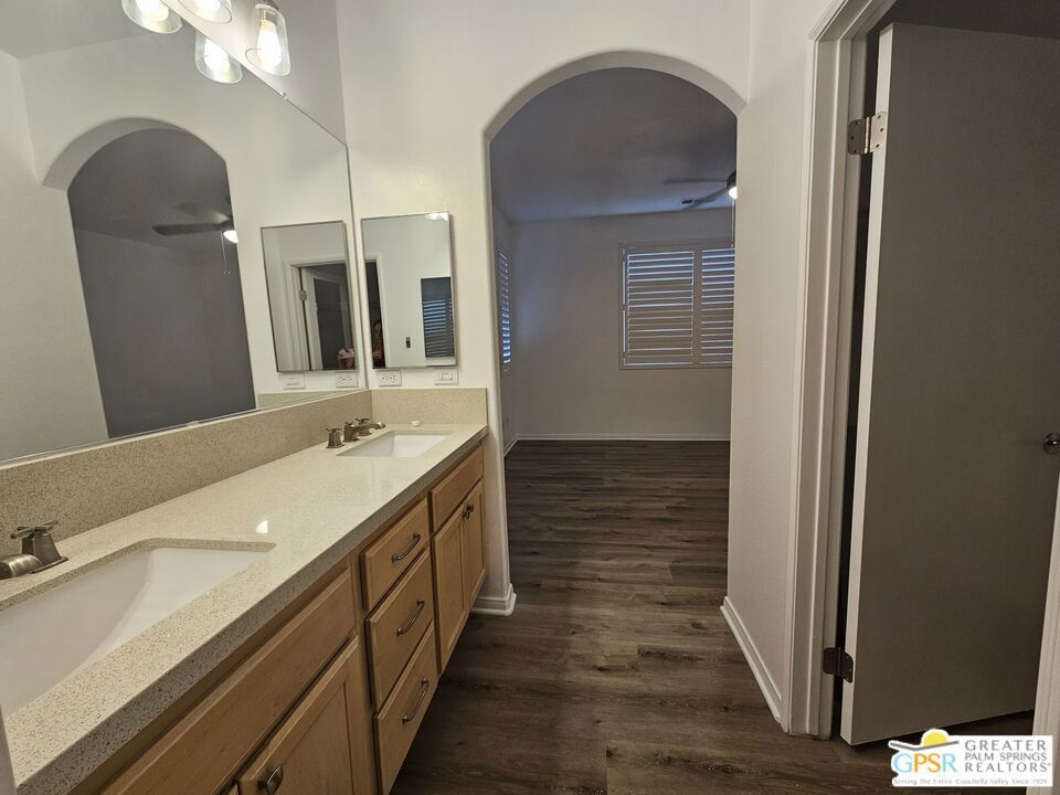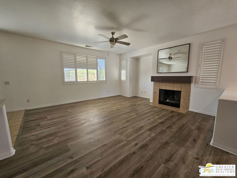 WELCOME HOME to this spacious 2-bedroom, 2-bathroom residence in the beautiful, gated Senior Community of Desert Willows. Lovely new luxury vinyl flooring throughout, fresh interior paint, open-concept kitchen complete with granite countertops, cabinet space galore and brand-new appliances. Enjoy the comfort of a spacious living area with a cozy fireplace. The guest bathroom conveniently connects to both the hallway and second bedroom. The primary Bedroom includes a walk-in closet and 2 double sink vanities and the bathroom has a walk-in shower with glass doors. Additional highlights include ceiling fans in every room, a dedicated indoor laundry room, and a 2-car attached garage, low maintenance landscape and much more. Residents enjoy access to a clubhouse, swimming pool, spa, fitness center, billiards room, and more all within a secure gated setting. Don't miss this opportunity to lease this move-in-ready home in one of Desert Hot Springs' most sought-after 55+ communities!
