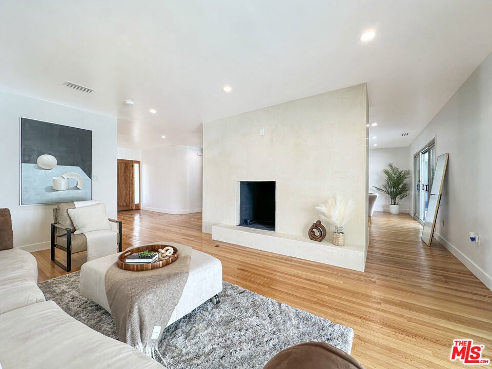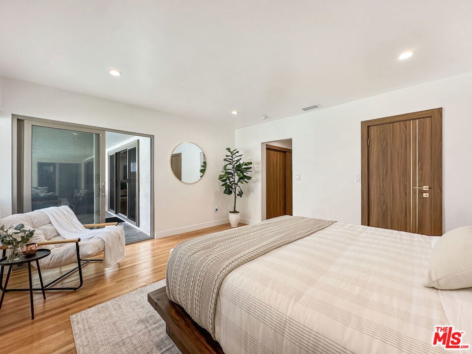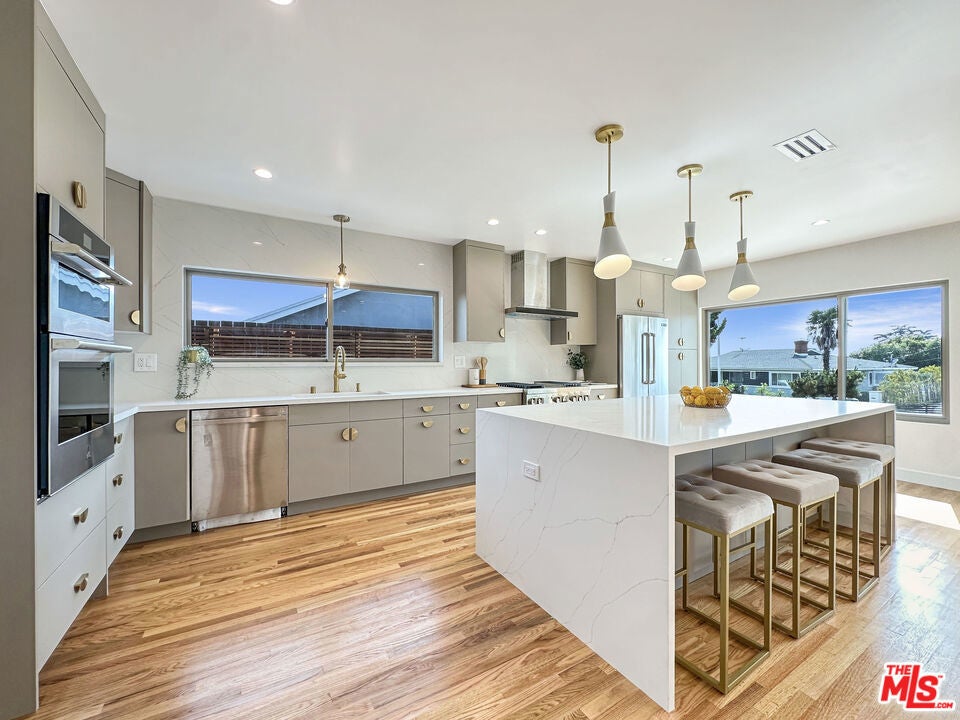Welcome to this Sleek and Clean Mid-Century Pool home c. 1959 with undeniably timeless appeal, architecture and elegance. A recent appraisal has valued the home at $2.75 Million. Main residence features 2650 sf and 4bd 4 1/2ba. Private ADU above garage features 480 sf and 1bd1ba. This home showcases the most desired characteristics of a Mid-Century home with no expense spared. It has a clean minimalist aesthetic with gleaming original hardwood floors throughout. BELLDINNI MODERN interior and closet doors emphasize elegance and simplicity while providing superior performance, durability, and ease with MORELLI magnetic locks. A major emphasis on bringing the outdoors in and connecting to nature with large ANDERSON windows and sliding glass doors providing a scenic pool view and buckets of natural light. Open floorplan featuring two large family rooms, two fireplaces, dining area, expansive kitchen with 9ft island w/ beautiful waterfall edges, full wall backsplash, built-in bar area, and JENNAIR Appliances. All bedrooms have ensuite bathrooms for complete privacy. Luxurious primary ensuite with jetted bathtub and floor to ceiling tile. Primary bedroom features a walk-in closet and a full wall closet and all closets in the residence have custom closet organization systems. Sparkling pool, Central HVAC System, recess lighting, fresh exterior stucco, decorative lighting, private gated entry, and surveillance cameras!!! The pool has been resurfaced with updated plumbing and lights. There is a covered patio, faux grass area, and outdoor kitchen perfect for entertaining. The two- car garage has been finished with 240V outlets for electric car charging. Also save on electricity bills with environmentally friendly PAID SOLAR PANELS. There is a brand new ADU above the garage withe private entry, beautiful city views featuring 1bd1ba, full kitchen, laundry hookups, and mini split system. It's perfect for a rental, in-law suite, or private office. Come see it while it is available!