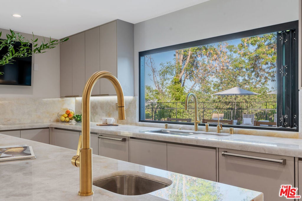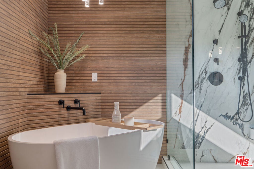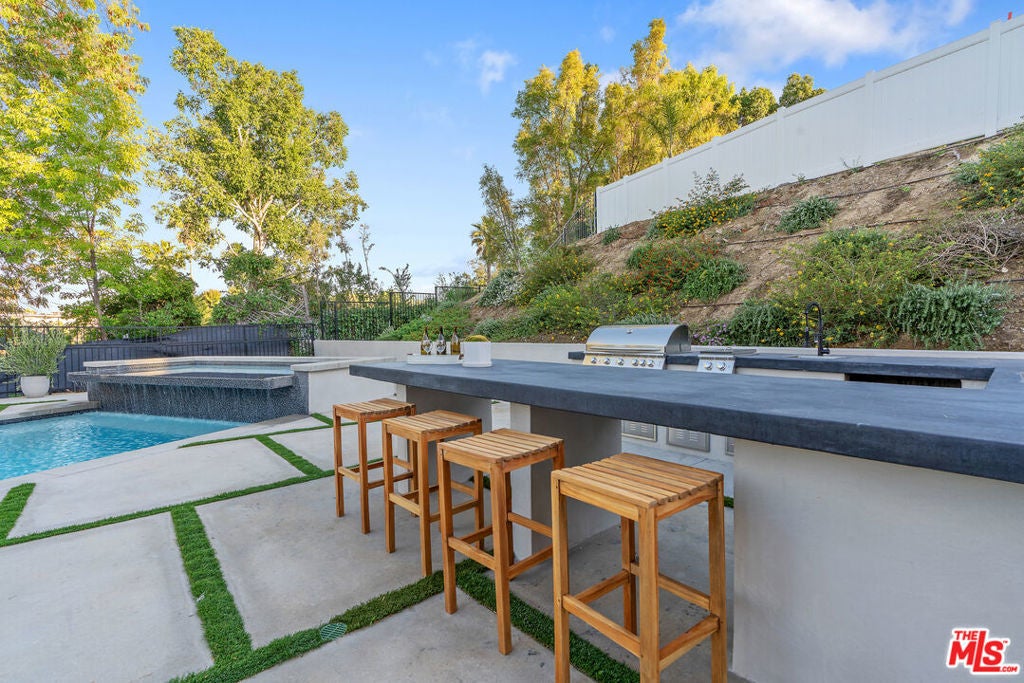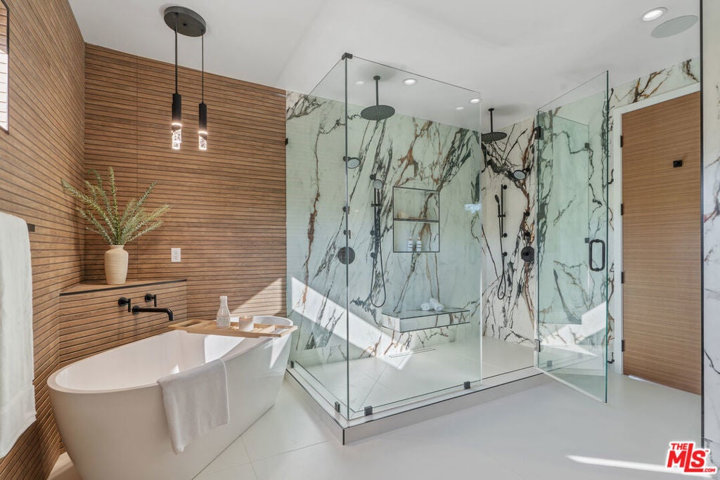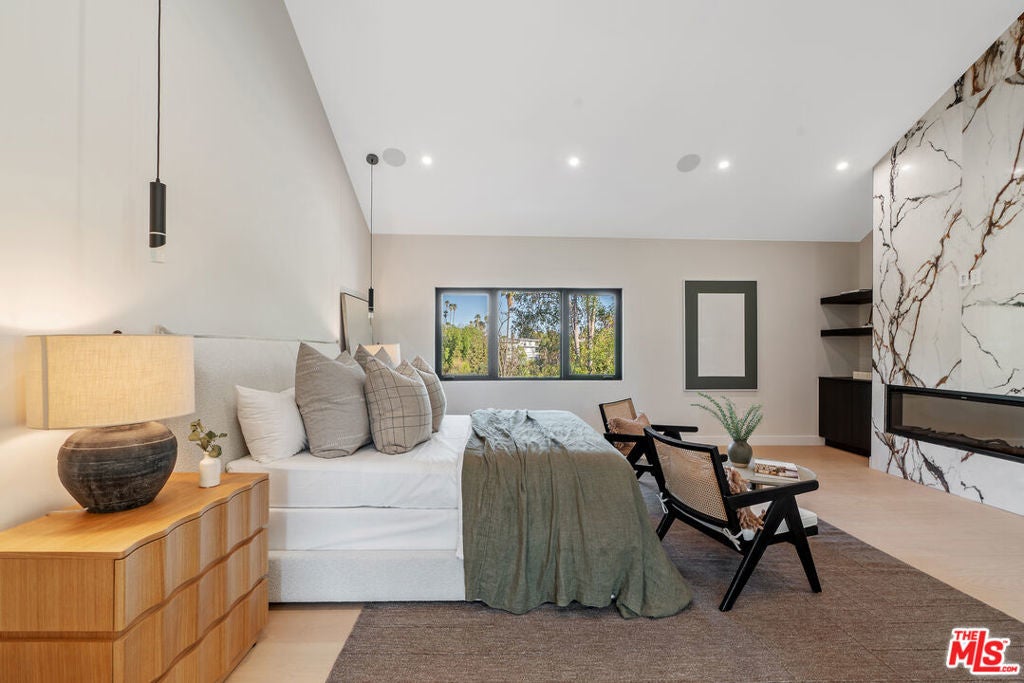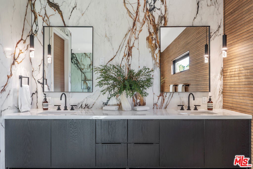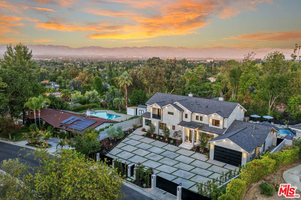 Experience luxury at every turn at 5036 Shirley Avenue. Located on a quiet street with spectacular valley views and paradise outdoor amenities. This is your opportunity to own a masterpiece in a premier Tarzana neighborhood with a spacious and functional floor plan and gorgeous views. Featuring 6 bedrooms with custom closets installed and beautiful en suite bathrooms with the finest materials and craftsmanship. Experience refined European craftsmanship with Porcelanosa tile, known for its cutting-edge design, superior durability, and luxurious finish. Whether it's the sleek, large-format porcelain installed in the living spaces or the sophisticated textured tile in the 7 bathrooms, each piece reflects a perfect blend of innovation and elegance. The rich tones, clean lines, and natural stone-inspired surfaces elevate the home's aesthetic, offering a timeless, high-end look that feels both modern and enduring. The chef-inspired kitchen is the perfect blend of performance and style, anchored by top-of-the-line Wolf appliances that offer precision cooking and sleek, professional-grade design. From the built-in range to the double ovens and coffee maker, every detail caters to culinary excellence. Complementing the space are California Faucets fixtures - which are known for artisanal craftsmanship with refined finishes for a touch of bespoke luxury. Cristallo quartzite counters, custom cabinetry, statement lighting, and a spacious island complete the space making it as functional as it is beautiful. Cristallo quartzite is a premium natural stone that is ranked harder than many marbles and even many granites. Kitchen features custom walk in pantry PLUS separate prep area. Incredible interior spaced hi lighted by the spacious great room with full wall of operating sliders (open both ways) overlooking the back yard and views beyond. The centerpiece of the living room is the fireplace clad in Belvedere quartzite slabs with a luxurious leathered finish. Deep charcoal tones layered with dramatic white and gold veining create a bold, moody backdrop, while the textured leathered surface adds depth and a tactile sophistication. Dual Primary suites up and down create a flexible living experience for all owners lifestyle needs with main Primary upstairs features soaring vaulted ceilings, fireplace, vanity/dressing room and impressive custom built walk in closet. Step outside to an elevated outdoor space with entertaining as the focus. Pool, spa and outdoor kitchen all wrapped around a stunning perspective of the Valley and beyond. The impressive gated motor court can fit many cars, boats, and toys. Fully integrated smart home installed for easy living! A two car garage with custom height doors and custom cabinetry complete this fabulous property. Don't miss the opportunity to own this one of a kind estate centrally located on a premier street!