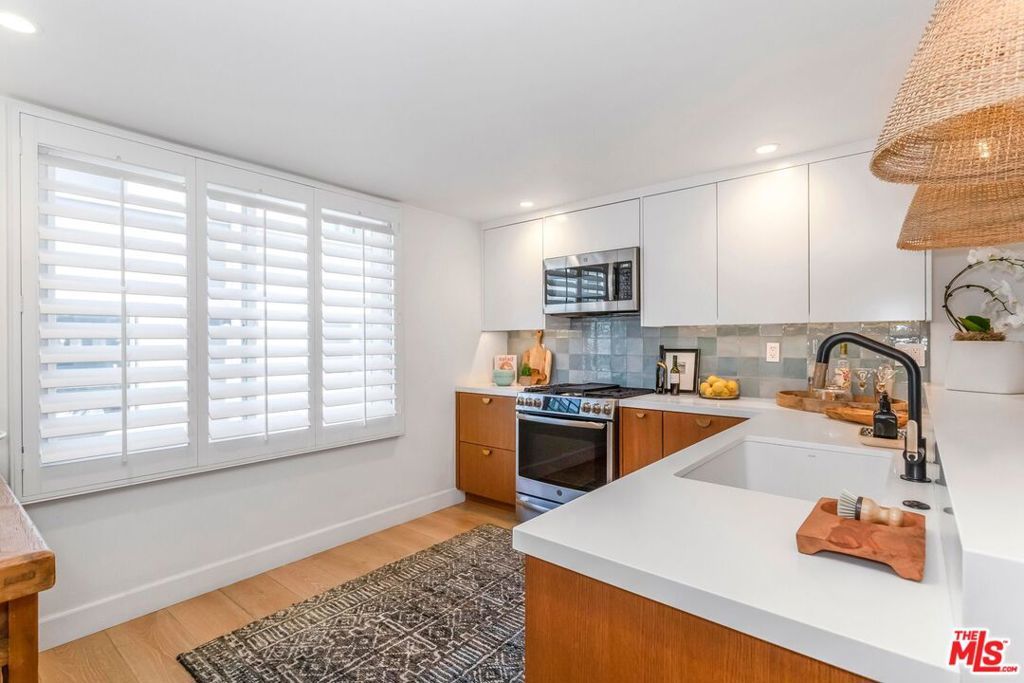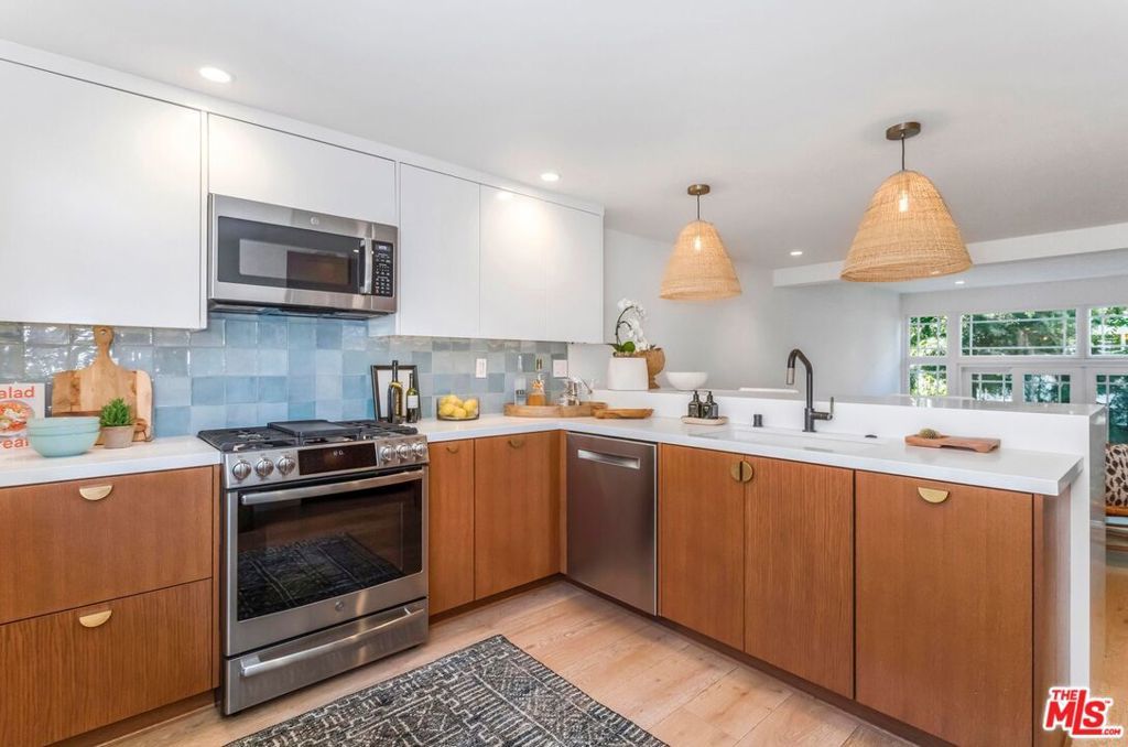 This designer residence is a sanctuary of mid-century soul and coastal zen. Lovingly restored and brilliantly reimagined, the 3-bed, 2.5-bath turnkey treasure is located in one of Burbank's most coveted hidden pockets - a quiet, tree-lined enclave that melds the charm of Toluca Lake and the creativity of Magnolia Park. Step inside and you'll feel that rare, immediate exhale. Wide-plank white oak floors highlight the sun-drenched, open floor plan. The living room's soaring ceilings and floor-to-ceiling glass doors open seamlessly onto a private, enclosed patio - a lush, indoor-outdoor haven perfect for slow mornings or intimate dinners under the stars. The chef's kitchen is a showstopper with custom cabinetry, high-end appliances, and luxe finishes. Three spa-inspired bathrooms, windows with plantation shutters, recessed lighting, newer electrical panel, upgraded HVAC, and custom closets make this home as functional as it is beautiful. Upstairs, the lovely primary suite is a treehouse-like retreat that is quiet, leafy, and light-filled. Two well-appointed guest bedrooms can also serve as library/workout/office areas to accommodate any buyer's lifestyle. As a bonus to the roomy living space, the garage includes built-in custom cabinetry and a flex area that can serve as a wine cellar, podcast studio, or workshop/storage area, offering adaptability and functionality. Within the quiet complex, residents enjoy a sparkling resort-style pool, professional landscaping, and curated lighting that transforms the community into a hidden oasis at night. This is where neighbors wave hello - a place where locals stroll to sushi on Riverside, grab ice cream at Handel's, and watch the holiday parade go by. Although situated only minutes from Warner Bros, Trader Joe's, and Whole Foods, it feels a world away from the noise. Whether you are upgrading your peace or downsizing your chaos, this private gem delivers calm, connection, and California ease in one move-in-ready package.