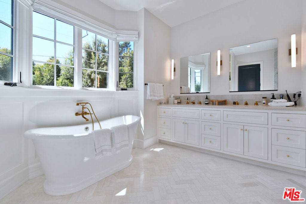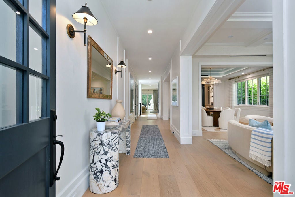 This Elegant Contemporary Traditional home is move in ready, as in, all you need to bring is your toothbrush! Located on a quiet and beautiful, tree lined street north of Montana Avenue in prime Santa Monica, this coveted home is filled with natural light, featuring soaring 10 foot ceilings and large windows, letting the sun shine in. The seamless indoor-outdoor flow creates an ideal setting for living and entertaining, with a sparkling pool and spa, waterfall, grassy area, built in BBQ and outdoor heaters to enjoy the peaceful and private backyard year round. The kitchen, a gourmet chef's delight, features marble countertops, an expansive island, double ovens, and top-of-the-line appliances. 6 Bedrooms, 8 bathrooms are ample room for the whole family- the primary suite showcasing vaulted ceilings, a cozy fireplace and french doors leading to a terrace. A whole home theater, gym, wine cellar and in-law suite compliment the open and light basement, which is accessible from the elevator accessing all 3 floors. Home was purchased brand new, and the owners put in all of the finishing touches- custom window treatments, designer runners, venetian plaster, lush landscaping, Savant whole home automation system with security cameras, automated gate and pedestrian gate, etc etc. Option for the perfect buyer to buy the home furnished. Welcome to 416 21st Place, truly a blend of luxury, comfort and sophistication!