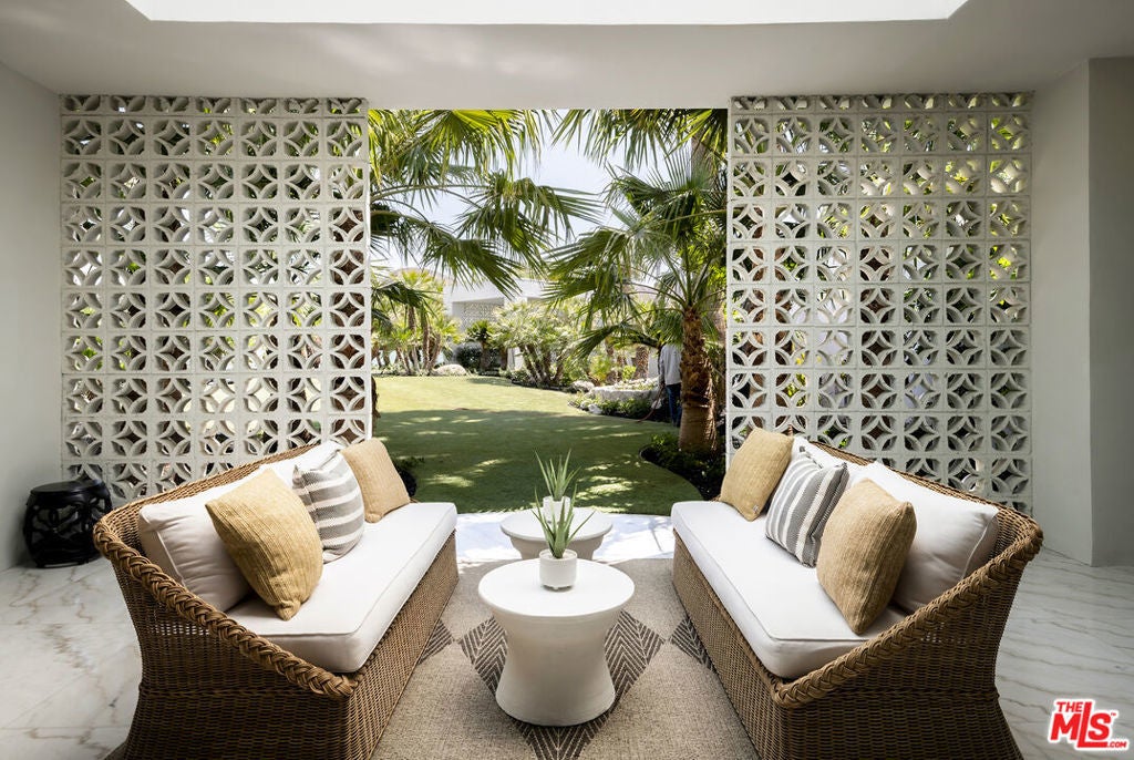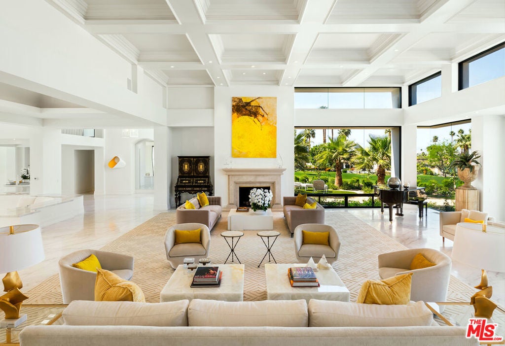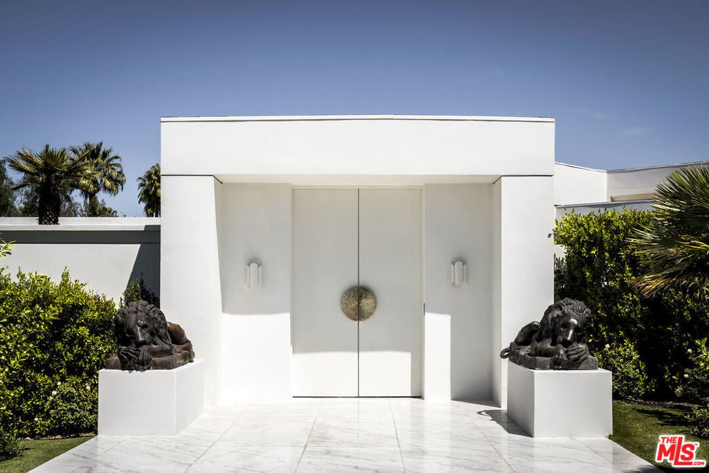 Commanding one of the most significant and private double lots within the esteemed Vintage Club ranked the #1 Platinum Club in California and #3 in the nation this extraordinary estate is a once-in-a-generation offering. Reminiscent of the iconic Sunnylands estate, it embodies a rare blend of timeless elegance, architectural presence, and effortless livability. Spanning grand proportions yet designed with intimacy in mind, the home adapts seamlessly to any lifestyle. Whether serving as a serene personal sanctuary, hosting family gatherings, or entertaining on a large scale, the residence feels perfectly proportioned at every turn. Set against a backdrop of panoramic golf course, lake, and mountain views, the grounds offer absolute privacy and resort-level amenities. A hotel-sized pool, expansive lawns, rare specimen palms, mature citrus, and hundreds of Pope John Paul roses create a lush, tranquil atmosphere evocative of classic desert estates. At over 16,000 square feet, the interiors have been completely reimagined with uncompromising attention to detail. The primary suite is a private retreat, featuring nearly 2,000 square feet of custom wardrobe space and a luxurious bathroom clad in rare vanilla onyx. Six additional ensuite bedrooms, each appointed as a junior primary, offer exceptional comfort and privacy. Two detached guest houses provide independent living spaces, one with a full kitchen, both with private terraces. Uniquely positioned within The Vintage Club, this is the only residence to offer a second-story outdoor living area comprising a refined sitting space and open-air deck with sweeping views of the lake and Chocolate Mountains, further distinguishing it within this prestigious community. A dedicated entertainment level, inspired by the glamour of the Beverly Hills Hotel, includes a full bar, state-of-the-art screening room, kitchen, game lounge, pool table, gym, and steam room creating an immersive experience that rivals any private resort. With over 4,000 square feet of covered terraces and a private upper-level deck overlooking the lake and par 3, the home is designed to celebrate the beauty and serenity of its surroundings. Every finish, from solid marble vanities to the finest architectural materials, speaks to the estate's unmatched quality. Truly irreplaceable in scale, setting, and execution, this is more than a residence it is a legacy.