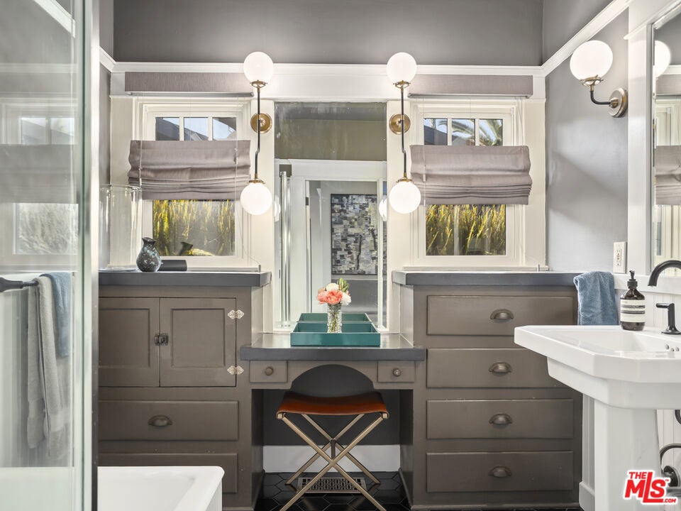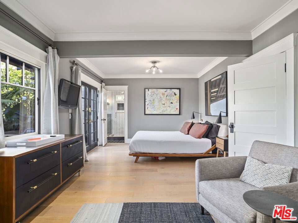 Tucked behind a secure gate and six-foot fencing, this beautifully preserved Craftsman offers over 2,500 sq ft of privacy, historic charm, and timeless curb appeal in one of L.A.'s most desirable neighborhoods, Sunset Square. The main residence includes 2 bedrooms and 2.5 bathrooms, with the option to convert the oversized library and sunroom into a third bedroom. Original details --- three fireplaces, crown molding, wainscoting, and restored windows blend seamlessly with thoughtful updates by acclaimed designer Matthew Lanphier. Highlights include a spacious designer kitchen and a reimagined primary bathroom with heated floors. The resort-style backyard features a sparkling pool, raised spa, outdoor shower, and multiple lounge areas. A fully permitted 700 sq ft ADU offers its own kitchen, bathroom with heated floors, and in-unit laundry.Live in one, lease the other, or enjoy as a private compound --- this unique property offers comfort, flexibility, and character in the heart of historic Sunset Square. Conveniently located near luxury coffee shops, Ralphs, Trader Joe's, and Bristol Farms, as well as fine dining, scenic hikes, and vibrant nightlife.