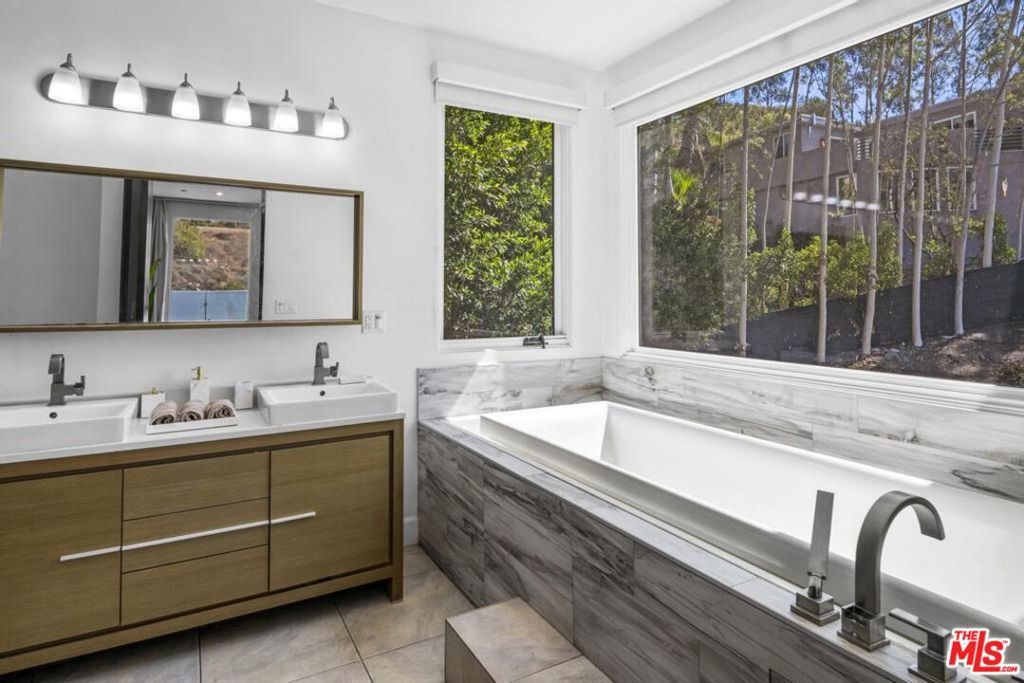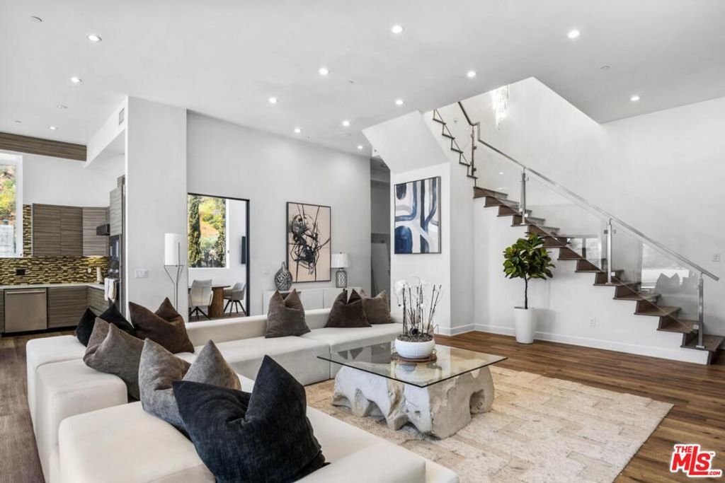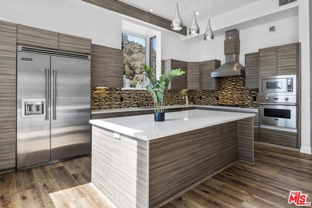 Experience contemporary living in this striking two-level Hollywood Hills home, rebuilt from the ground up in 2013. Set on over a 16,200 sq ft lot, this approx. 3,000 sq ft residence showcases sweeping canyon views, walls of glass, and seamless indoor-outdoor flow. The open-concept layout features soaring ceilings, recessed lighting, and wide-plank hardwood floors throughout. The designer kitchen comes equipped with premium Viking appliances, sleek Silestone countertops, and a spacious island ideal for entertaining. The primary suite offers dual walk-in closets, a spa-inspired bath with jetted tub, and French doors leading to a private wrap-around terrace totaling approx. 1,000 sq ft. Outside, enjoy a heated saltwater pool with waterfall feature, built-in fire pit, and integrated surround sound for the perfect California lifestyle. A rare blend of privacy, modern luxury, and timeless design schedule your private showing today.