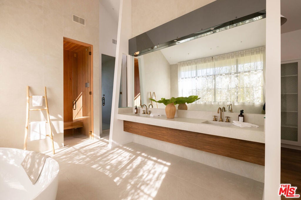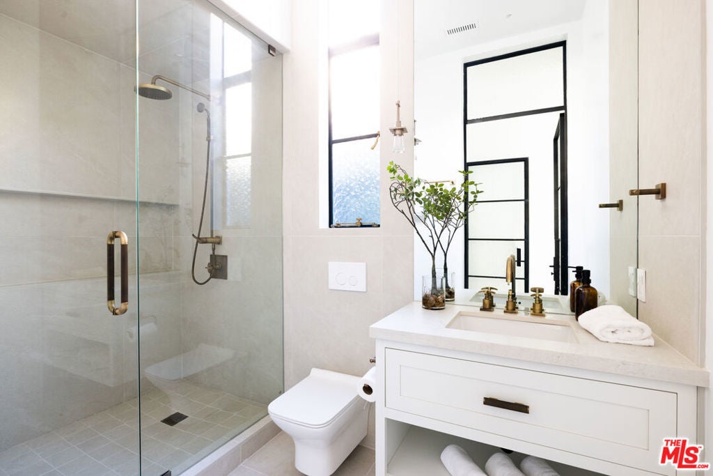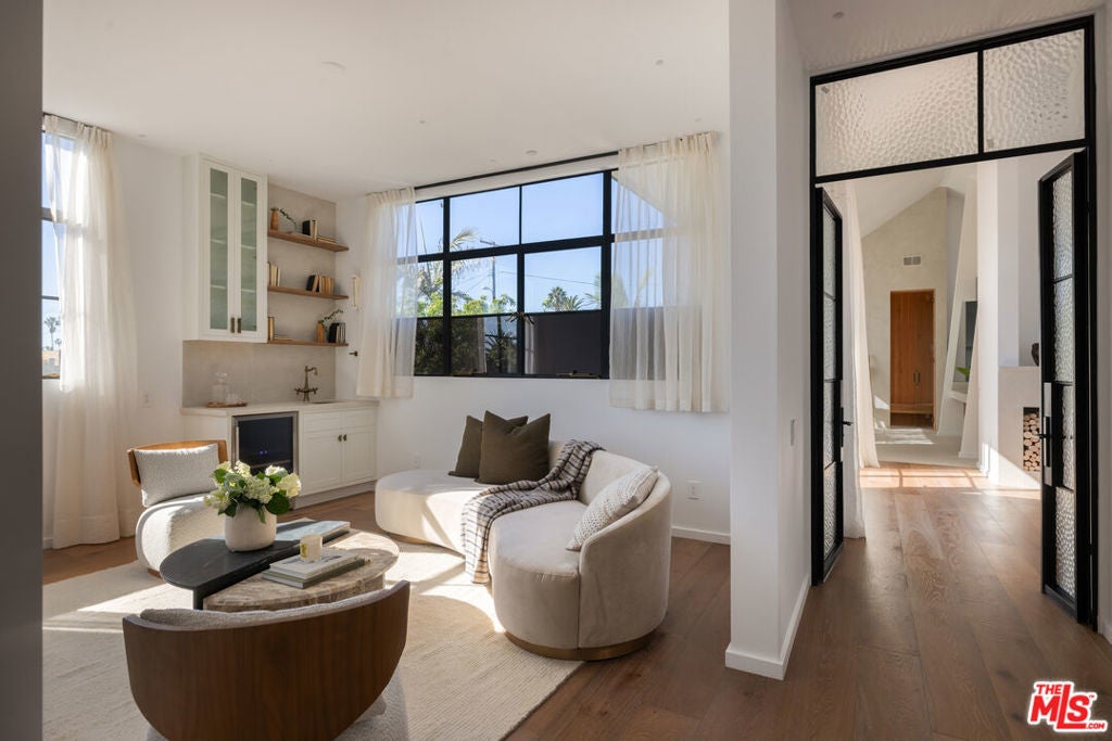 Completed in 2025 with a nearly 3,500 sq ft addition now totaling over 4,000 sq ft, this high-end renovation blends modern luxury, scale, and craftsmanship rarely seen in the market. This two-story masterpiece offers 6-bedroom, 7-bath home showcases striking architectural design with a rooftop deck and panoramic views, steel-framed windows and doors, soaring ceilings, and sunlight pouring through every room. The gated front yard and 3-car garage with direct home access offer both privacy and convenience. In the backyard, enjoy a private retreat featuring an in-ground jacuzzi, fire pit, BBQ, and cold plunge the perfect setup for relaxed outdoor living and entertaining. Inside, the open yet well-defined floor plan seamlessly connects each space while maintaining a natural flow. The living and dining rooms open effortlessly to the kitchen and backyard, creating an ideal environment for both gatherings and everyday life. The gourmet kitchen features a center island with seating, striking angled sink details, top-of-the-line Miele appliances, and a walk-in butler's pantry with an additional sink. Adjacent to the kitchen is a flexible space that can serve as a media room, gym, or additional bedroom, along with a stylish powder room. The downstairs also includes a full bedroom suite currently staged as an office or gym, offering versatility for your lifestyle. A glass wine display accents the staircase leading to the second floor, where you'll find a spacious family lounge, three additional bedrooms, three bathrooms, a powder room, and a convenient laundry room. The luxurious primary suite is a private sanctuary with soaring ceilings, a fireplace, and a serene balcony. Its spa-inspired bathroom features a freestanding tub, double vanity, wet and dry sauna, makeup vanity, and separate toilet room. Two additional bedrooms upstairs are filled with natural light and offer built-in closets, with one ensuite featuring a shower and the other a tub. Ideally located near Zinque, Superba, Oakwood Dog Park, and Venice Beach, this home embodies the ultimate coastal lifestyle pristine, thoughtfully designed, and move-in ready. If you've been dreaming of a brand-new Venice home that blends effortless style, comfort, and sophistication, this is the one.