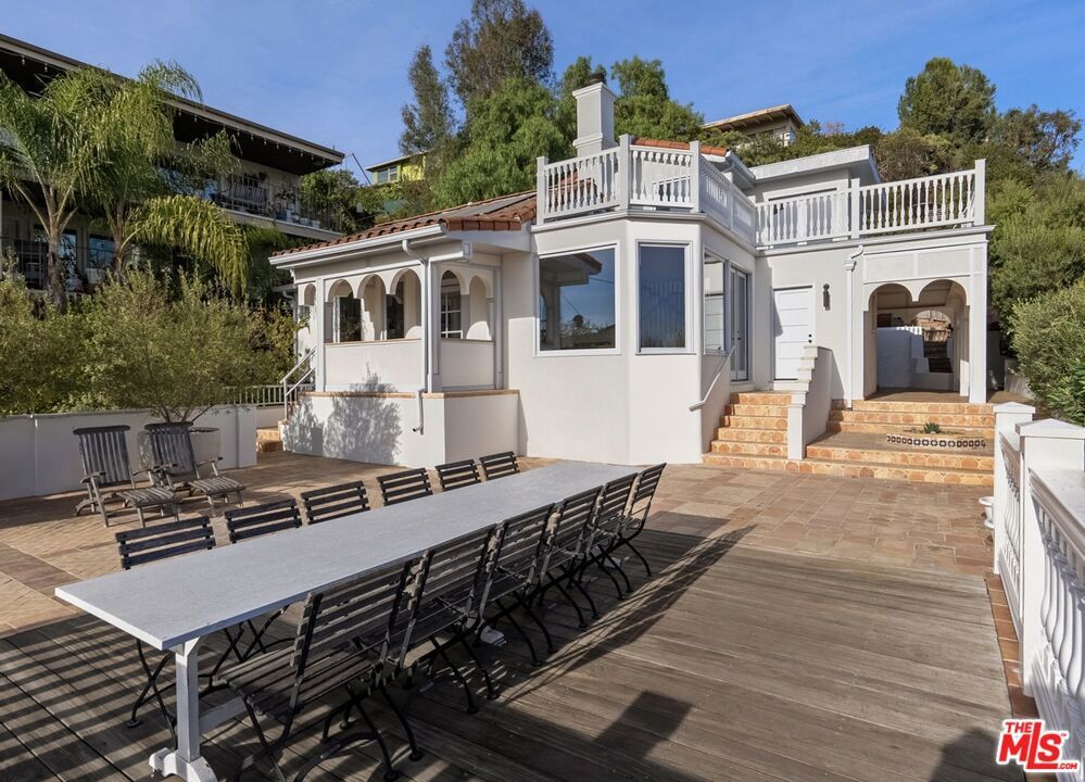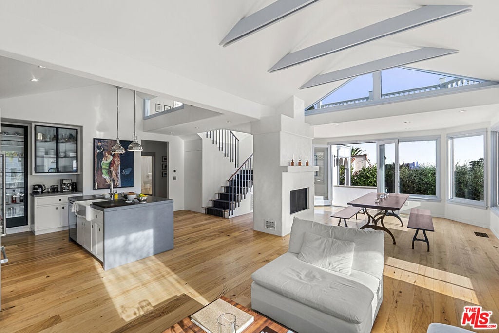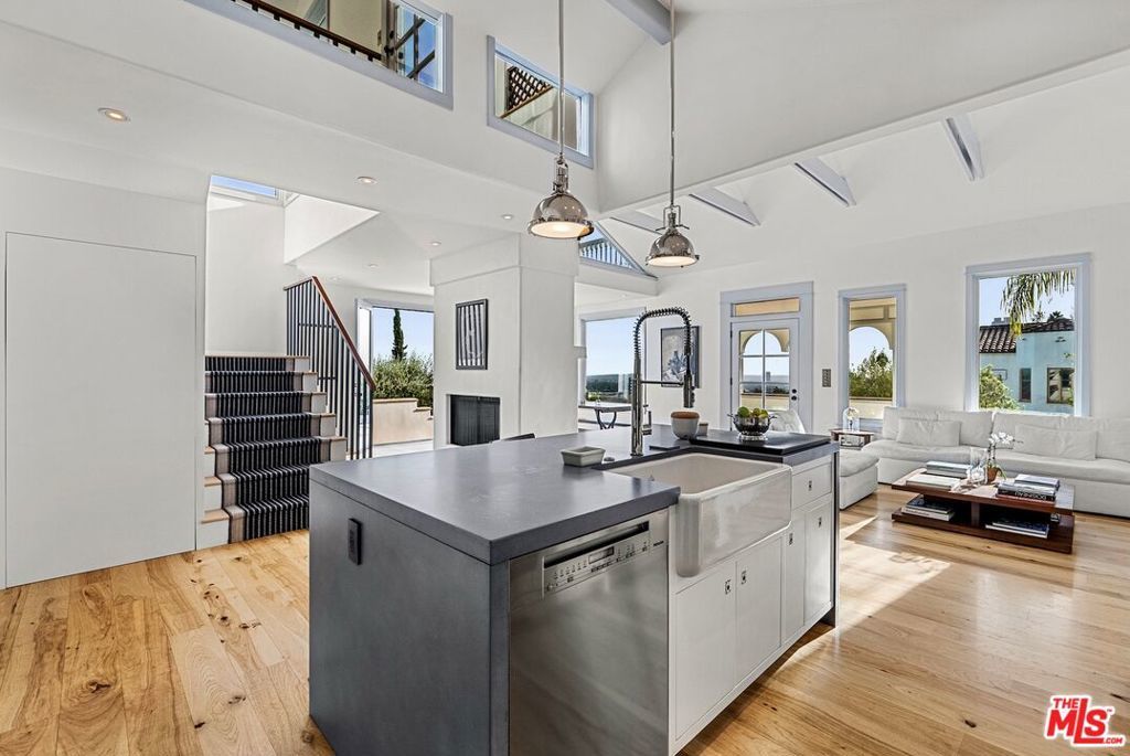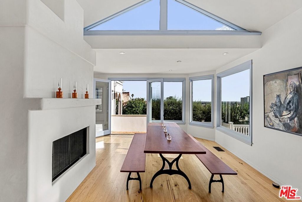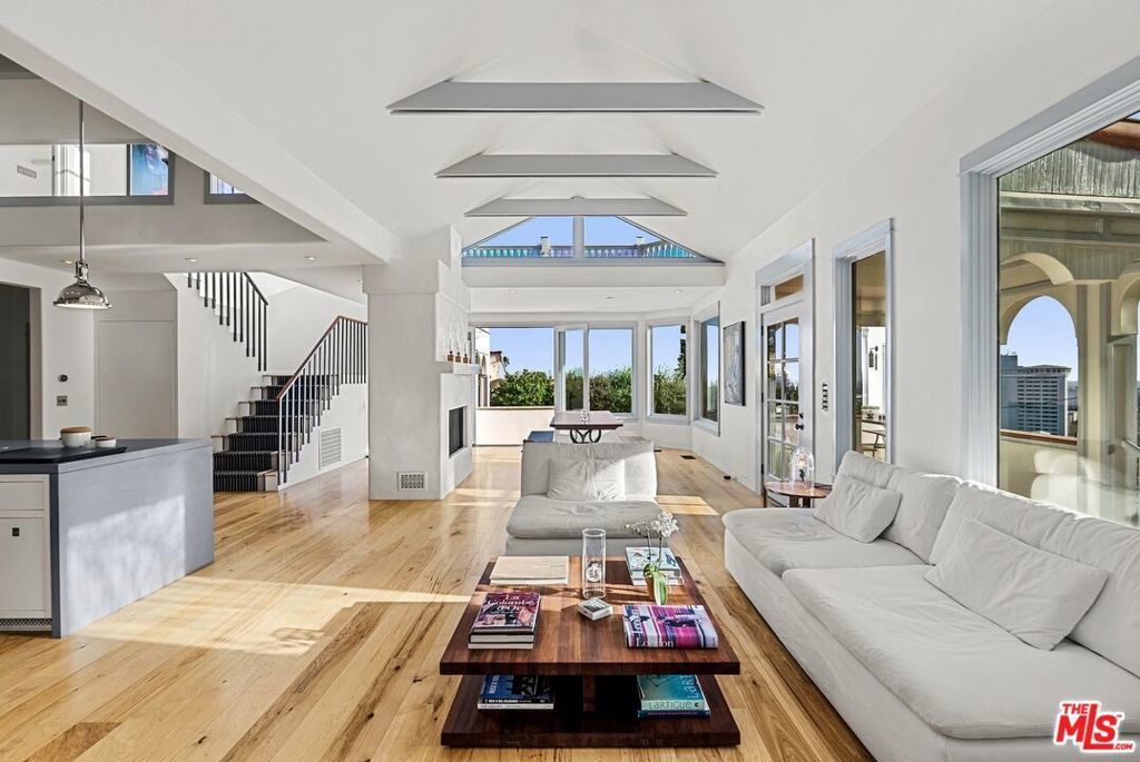 Mediterranean paradise with forever views in the Hollywood Hills. Sweeping vistas from downtown to Catalina make this private, gated retreat perfect for entertaining inside and out. Very large sky deck (~1200 SF) with pool shell in place (ready to finish), surrounded by mature orange, grapefruit, tangerine, lemon, plum, and olive trees all lush and heavy with fruit. In the afternoons, fresh air and ocean breezes waft through the home, renovated top to bottom with the finest materials (hand finished plaster, hickory hardwood floors and solid walnut shelves), finishes (polished nickel fixtures and light switches from Forbes and Lomax) and appliances (stainless steel Wolf, Sub-Zero, and Miele). Cathedral ceilings in open plan kitchen / living room / dining room with showcase island fireplace. Stunning large master suite with fireplace and private upper deck. Large basement with laundry area and ample built-in storage (570 SF additional to listed square footage). Super close to the best of Hollywood and West Hollywood, but you'll feel like you are floating above it all. All new kitchen and pantry (including Sub Zero refrigerator, Wolf range and Miele dishwasher) with custom made steel and glass cabinets, and honed cast cement island countertops. Three all-new bathrooms with Waterworks, Lefroy Brooks and Agape fixtures. New French double doors, HVAC system, flooring (hardwood, tile and cement), energy-saving Comfort DimLED lighting (inside and out), paint (inside and out), and exterior irrigation system on timer. New solar electrical system, including two car chargers; this home's electrical bill has generally averaged $18/month (yes, you read that correctly). New intercom / front gate security camera system, water heater, water softener and filtration system. Significant improvements to the electrical system, two fireplaces, interior stairwell and upper deck. Substantial landscape enhancements and repairs to roof (with 20-year guarantee).