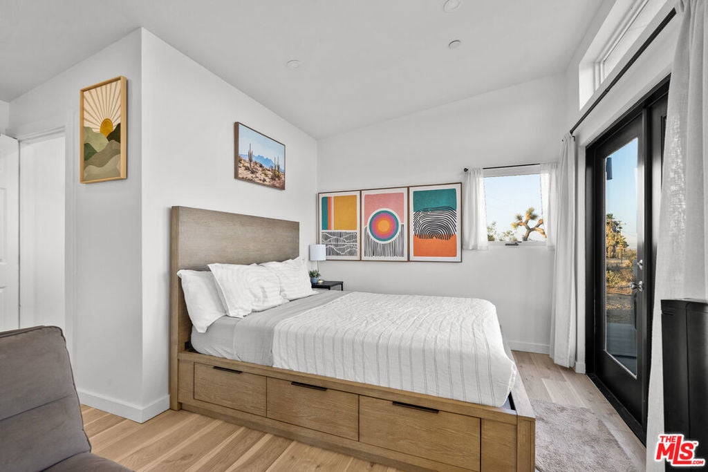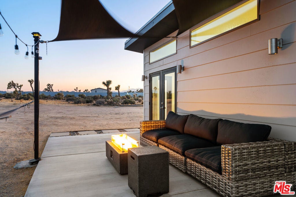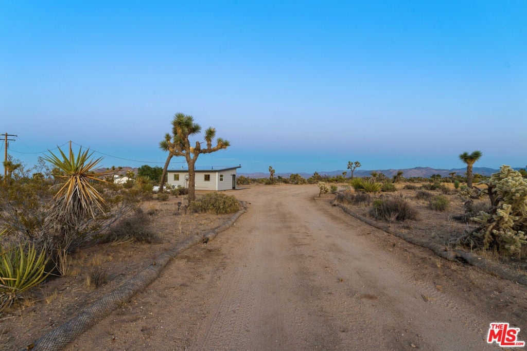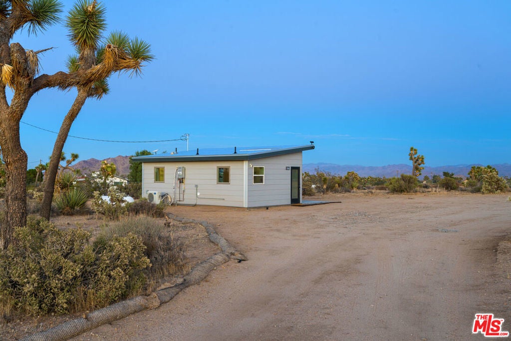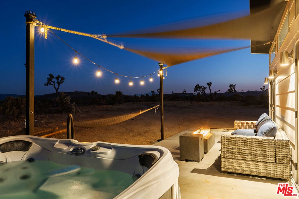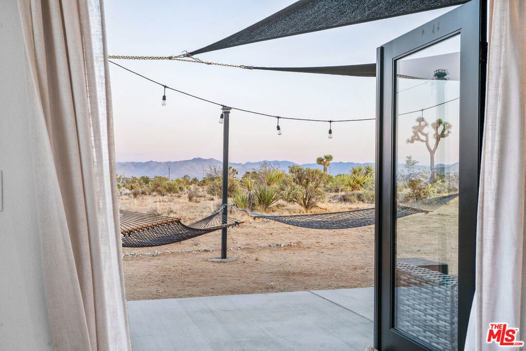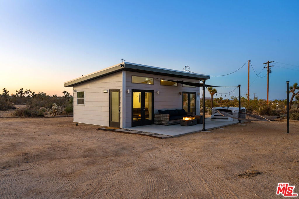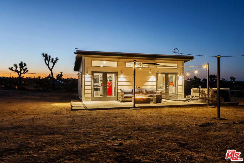 Welcome to Desert Rose - a design-forward micro cabin nestled on 5 serene acres atop the mesa of Yucca Valley. This mid-century-inspired bungalow offers the perfect blend of charm, privacy, and potential - ideal as a personal escape, a successful short-term rental, or the foundation for future development. Inside, you'll find wide-plank floors, an open-concept layout, and sun-filled interiors that feel both cozy and spacious. Thoughtful touches throughout create a peaceful, modern desert aesthetic that connects effortlessly with the surrounding landscape. Outside, unwind under the stars in your private hot tub, sway gently in hammocks amongst the Joshua Trees and let the soft glow of bistro lights set the mood for slow, dreamy evenings. With 5 acres of flat, buildable land, there's room to add structures, create a compound, or subdivide - all while enjoying uninterrupted views and total seclusion. Currently a highly rated Airbnb, this property offers a turn-key investment opportunity with a proven track record of guest satisfaction and income potential. Whether you're seeking simplicity, inspiration, or income, this petite hideaway is a rare and beautiful opportunity in the heart of the High Desert.