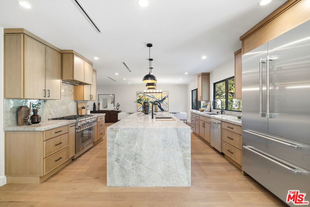 Experience this spectacular, completely reimagined pool home in the coveted Magnolia Estates pocket of Valley Village. Thoughtfully renovated from top to bottom with updated plumbing, electrical, roof, HVAC, windows, and doors, this home blends the character of its original design with a timeless, modern aesthetic. Inside, the open-concept floor plan is ideal for today's lifestyle. The elegant entry leads to a formal living room finished in Italian plaster, a spacious dining area, and a chef's kitchen featuring dual sinks, Thermador appliances, and a stunning Taj Mahal stone island the perfect centerpiece for cooking and gathering. The family room opens seamlessly through an oversized sliding glass door to the backyard oasis with a covered patio, pool, spa, and built-in BBQ area, creating the ultimate indoor-outdoor living experience that defines Southern California living. Downstairs also includes a versatile en-suite bedroom or home office, a spacious laundry/mudroom, and abundant handcrafted white oak cabinetry that adds both warmth and functionality. The finished epoxy-floor garage offers flexible use or bonus space. Upstairs, you'll find four generous bedrooms and three bathrooms, including two luxurious en-suites with fully built-out walk-in closets, thoughtfully designed for maximum organization and everyday ease. The gated front yard provides a generous grassy area and an oversized drivewaylarge enough for additional parking or a possible half-court setup. Located on one of Valley Village's most desirable streets, this property is within very close proximity to restaurants, houses of worship, and neighborhood parks, and just minutes from Studio City, Sherman Oaks, and major commuter routes including the 101 and 170 freeways. With modern upgrades, quality craftsmanship, and a prime Valley Village location, this home offers the rare blend of luxury, comfort, and convenience that today's buyers are searching for.