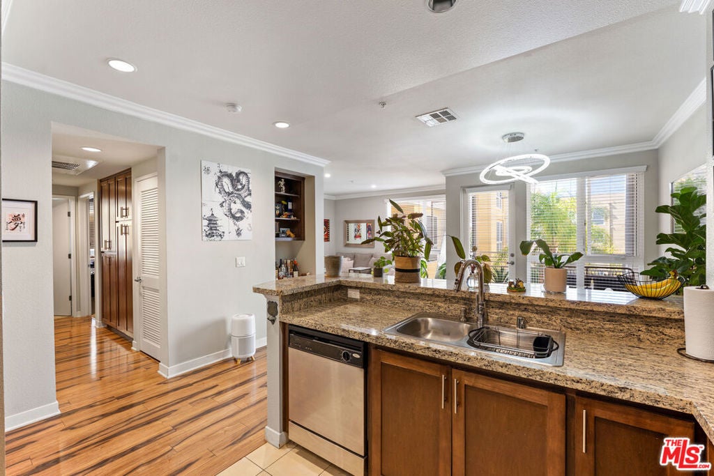 Modern Luxury Meets Resort Living in the Heart of Warner Center. Step into upscale urban living at its finest with this beautifully designed 2-bedroom, 2-bathroom condo located in the highly desirable Ascent at Warner Center community. Built in 2010, this residence offers the perfect blend of modern comfort, convenience, and resort-style amenities. Inside, you'll find a bright, open-concept layout featuring granite countertops, stainless steel appliances, and a breakfast bar ideal for casual dining. The spacious primary suite includes a walk-in closet, dual vanity sinks, and a large soaking tub for ultimate relaxation. Enjoy the convenience of a built-in workstation, in-unit washer & dryer, and a private balcony overlooking the lush courtyard and BBQ area the perfect spot for morning coffee or evening unwinding. Life at Ascent means you're surrounded by amenities galore: State-of-the-art fitness center Resort-style swimming pool & spa Private theater room & entertainment lounge with pool table Outdoor BBQ & picnic areas, Beautiful landscaped courtyards and Two secured underground parking spaces + guest parking. Situated moments from Westfield Topanga & The Village, Rams Village, Costco, trendy restaurants, and with easy access to the 101 freeway, this is one of Woodland Hills' most connected and convenient locations. Whether you're a first-time buyer, downsizer, or investor this home offers the perfect combination of luxury, lifestyle, and location. Experience refined modern living, effortless, and truly elevated.