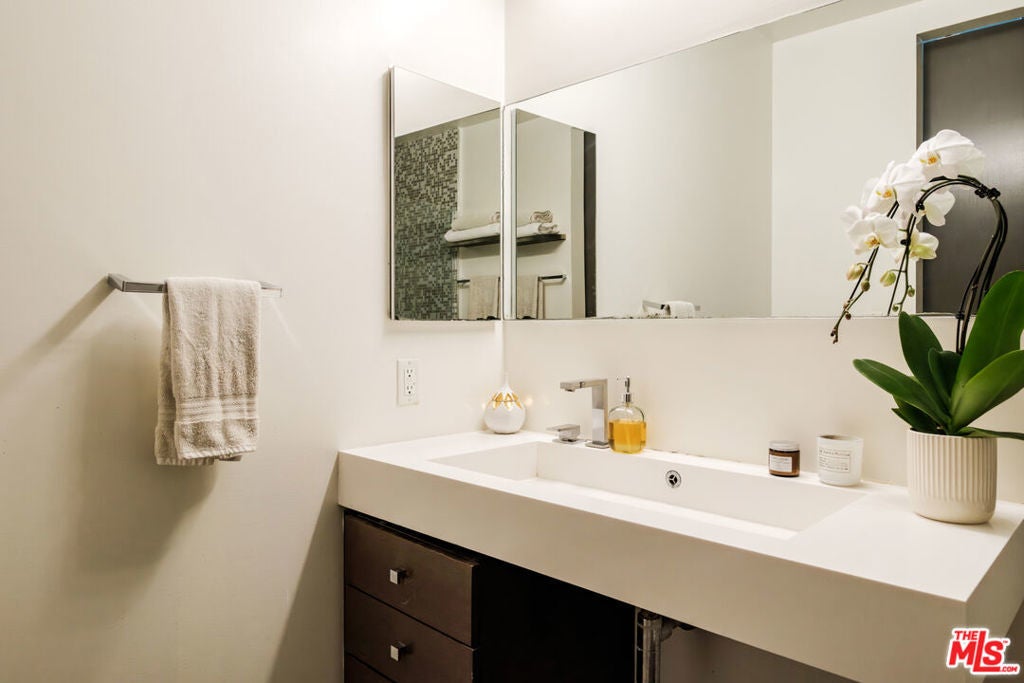 Welcome to this sun-drenched, industrial-chic corner unit in the coveted Broadway Lofts. This exceptional loft-style studio on the second floor blends urban sophistication with beachside ease, showcasing walls of glass that bathe the space in natural light from morning to sunset. Unit 205, a rare corner residence, is distinguished by its oversized wraparound deck with captivating city views -- a striking extension of your living space that invites seamless indoor-outdoor living and effortless entertaining. Beyond the entry, an open-concept layout unfolds with soaring ceilings, wide-plank floors, and distinctive loft-inspired detailing. The sleek Italian kitchen, complete with Boffi cabinetry and Caesarstone countertops, flows elegantly into the expansive living and sleeping areas. The well-proportioned sleeping area includes a generous walk-in closet, while the modern bathroom features clean lines and premium finishes. Residents of Broadway Lofts enjoy the peace of mind of a secure-access building, with key fob entry required for all common areas, elevators, and parking. Additional highlights include in-unit laundry, central air, and secure side-by-side parking for two vehicles with ample storage space. Enjoy access to a rooftop viewing deck with panoramic city and mountain vistas, as well as the everyday convenience of Cafe Lovi just steps from your front door. Perfectly positioned just blocks from Memorial Park, Santa Monica Brew Works, Ralphs, Co-Op, Bergamot Station, and an array of shops and restaurants, this home epitomizes Santa Monica living -- stylish, walkable, secure, and distinctly private.