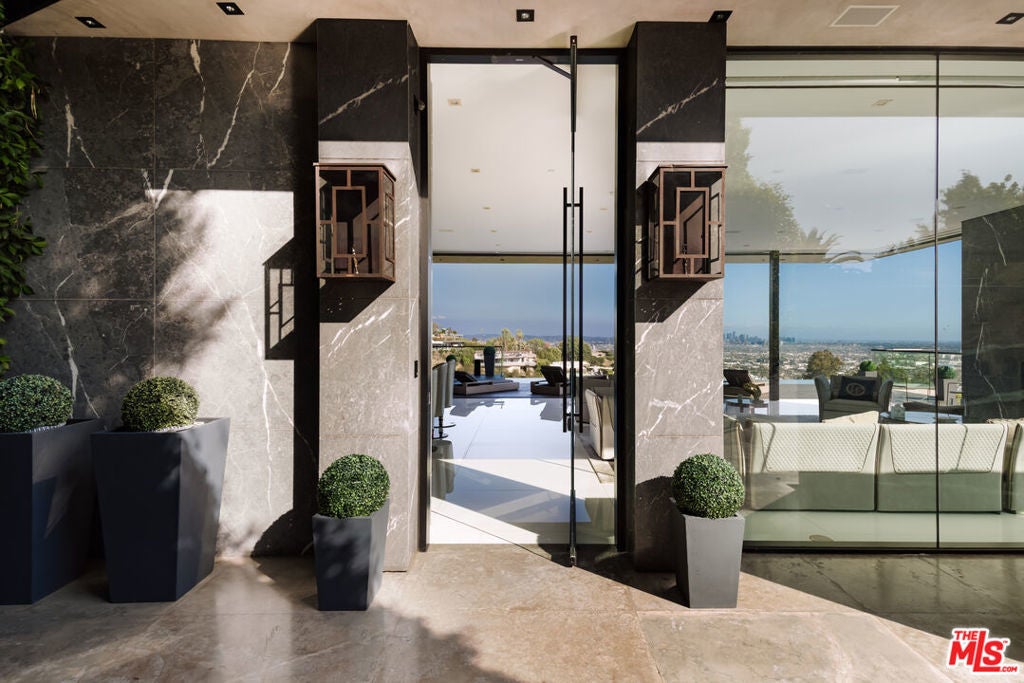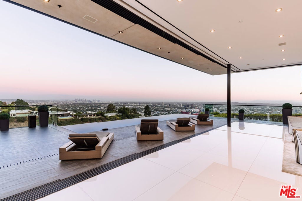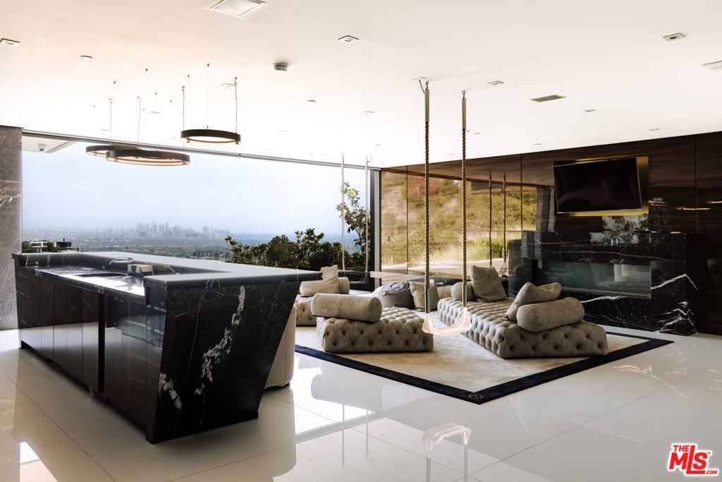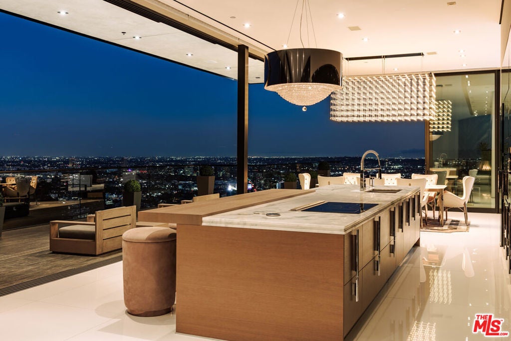 Perched high above the Sunset Strip, 9199 Thrasher Avenue is a turn key architectural masterpiece by internationally acclaimed architect Paul McClean, commanding one of the most dramatic vantage points in all of Los Angeles. Walls of glass frame breathtaking 280 panoramic views that sweep from the shimmering Downtown skyline to the distant coastline of Catalina Island. By day, the residence floats effortlessly above the city; by night, it transforms into a luminous observatory of twinkling lights and endless sky. A grand double-height entry with a 34-foot Murano crystal chandelier adorned with 24K gold leaf and hand-blown glass sets a tone of artistry and sophistication. The open-concept great room flows onto an expansive terrace where a sleek infinity-edge pool and spa appear to dissolve into the horizon. The custom Italian kitchen by ErnestoModa, crowned with a Fendi chandelier and fitted with Miele appliances, is as sculptural as it is functional.Every space has been designed for indulgent living and effortless entertaining from the glass-enclosed wine cellar, fully equipped gym with horizontal massage shower, and cinematic theater, to the lounge with wraparound fire pit and walls of retractable glass that blur the line between indoors and out. The primary suite is a private retreat with a bar, boutique-style showroom closet, and a spa-inspired bath that captures the essence of luxury resort living. Fully integrated Creston Smart Home technology completes this extraordinary modern sanctuary a rare opportunity to own a true Paul McClean trophy estate in the Bird Streets.