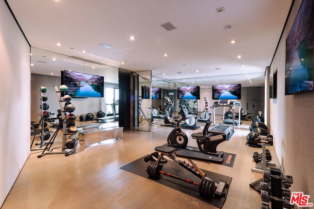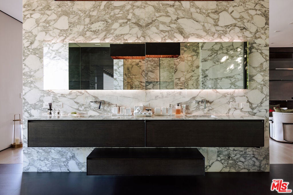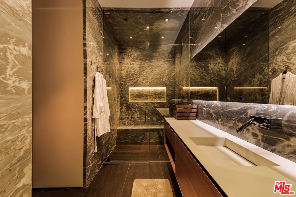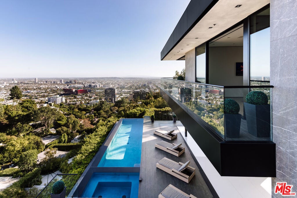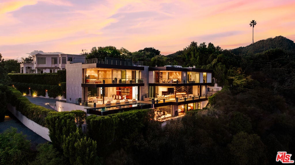 Perched high above the Sunset Strip, 9199 Thrasher Avenue is a turn key architectural masterpiece by internationally acclaimed architect Paul McClean, commanding one of the most dramatic vantage points in all of Los Angeles. Walls of glass frame breathtaking 280 panoramic views that sweep from the shimmering Downtown skyline to the distant coastline of Catalina Island. By day, the residence floats effortlessly above the city; by night, it transforms into a luminous observatory of twinkling lights and endless sky. A grand double-height entry with a 34-foot Murano crystal chandelier adorned with 24K gold leaf and hand-blown glass sets a tone of artistry and sophistication. The open-concept great room flows onto an expansive terrace where a sleek infinity-edge pool and spa appear to dissolve into the horizon. The custom Italian kitchen by ErnestoModa, crowned with a Fendi chandelier and fitted with Miele appliances, is as sculptural as it is functional.Every space has been designed for indulgent living and effortless entertaining from the glass-enclosed wine cellar, fully equipped gym with horizontal massage shower, and cinematic theater, to the lounge with wraparound fire pit and walls of retractable glass that blur the line between indoors and out. The primary suite is a private retreat with a bar, boutique-style showroom closet, and a spa-inspired bath that captures the essence of luxury resort living. Fully integrated Creston Smart Home technology completes this extraordinary modern sanctuary a rare opportunity to own a true Paul McClean trophy estate in the Bird Streets.