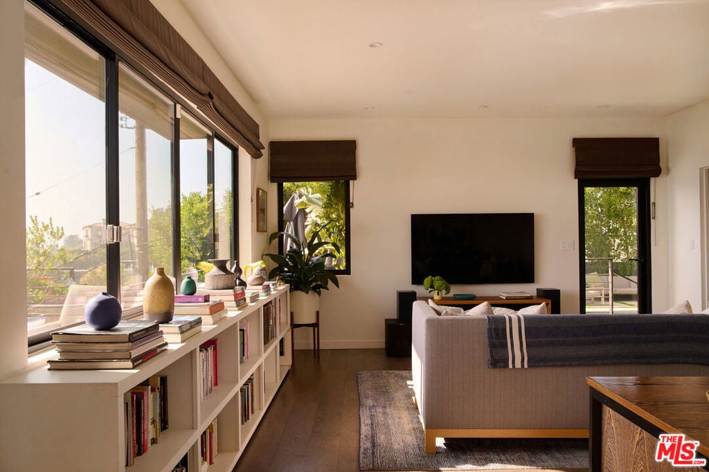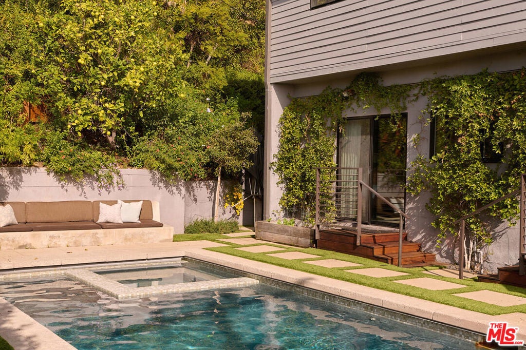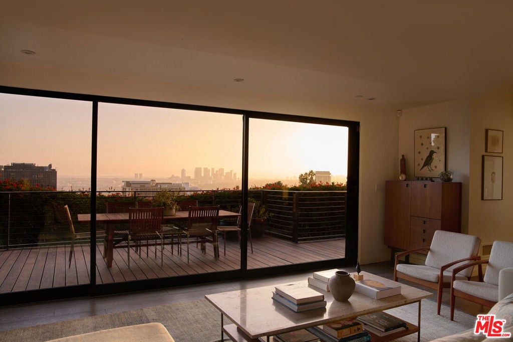 Set high above the city in the coveted Hollywood Hills, this three-story architectural retreat with Guest house is the epitome of refined Los Angeles living. Sprawling 180-degree panoramas stretch from the Downtown skyline to the Pacific Ocean and on the clearest days, Catalina Island graces the horizon. Tucked away behind lush, mature, and terraced landscaping on a private estate lot, the residence offers five sumptuous bedrooms and six baths, married with the serenity of a hideaway yet moments from the cultural energy of the city. Walls of glass dissolve the boundary between inside and out, while multiple terraces beckon the mild Southern California climate. The interiors glow with wide-plank wood floors, recessed lighting, and vaulted ceilings with exposed beams a warm, architectural counterpoint to ultra-modern finishes. At its heart, the chef's kitchen dazzles: a restaurant-grade La Cornue range anchored by custom oak cabinetry, dual dishwashers and premium fixtures frame a space made for effortless entertaining. Adjacent open dining and living zones flow seamlessly to an outdoor lounge and expansive deck a rare luxury in the Hollywood Hills and an entertainer's dream as the sun dips below the Pacific. A versatile TV room/den, complete with closets, offers the flexibility to serve as an additional bedroom ideal for guests or a private retreat. Upstairs, the primary suite unfolds like a resort retreat complete with walk-in closet, spa-inspired bath, and private terrace with sweeping views. Just off this level, the second terrace features built-in outdoor heaters perfect for year-round comfort while enjoying the breathtaking panorama. The third level presents a purposeful family room, wet sink and fridge for convenience, plus three uniquely finished guest bedrooms each with their own ensuite bath and generous storage. Enjoy ultimate convenience with a full laundry room downstairs and an additional laundry area complete with washer and dryer tucked neatly into the upstairs bathroom. Step outside and live as though on vacation every day: multiple terraces and patios, lounging zones, a shimmering pool and spa all arrayed to capture light and view. With the smart iAqualink system, pool and spa temperature and settings are controllable remotely pure ease and the automated fully retractable pool cover adds an extra layer of conveience and saftey. Two motorized sun-shades elegantly manage light and privacy throughout the day. Underpinning the beauty is serious forward-thinking infrastructure. Fully paid $30,000+ Tesla solar panels promote eco-conscious living while lowering energy cost. A whole-house water filtration system, whole-house fan, in-wall flat screens (three), Sonos sound zones (7 indoor, 4 outdoor), Nest cameras, Rachio irrigation system and a 240-volt NEMA 14-50 outlet in the garage for EV charging all converge in a home that's as smart as it is chic. A detached guest structure includes a full kitchen, bath and its own courtyard ideal for visiting friends, extended stays or a boutique home office. This is more than a home it's a statement of mega-design, technological intelligence and panoramic beauty. With its vantage from the heights of Los Angeles, it delivers luxury, sustainability, privacy and spectacle in equal measure. Truly a rare opportunity to own a hillside haven with views from downtown to the sea.