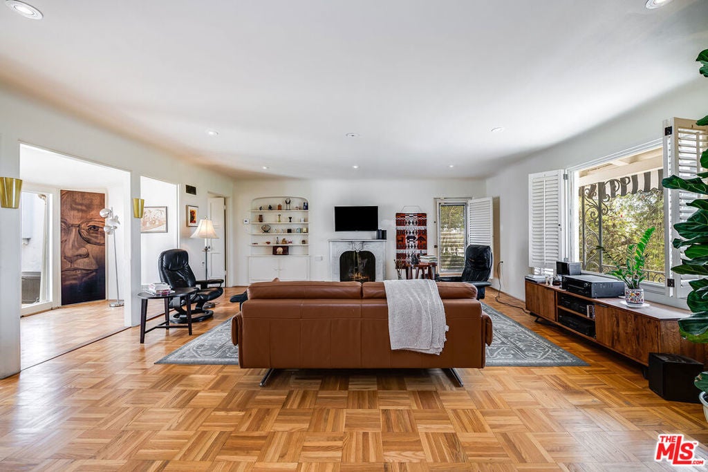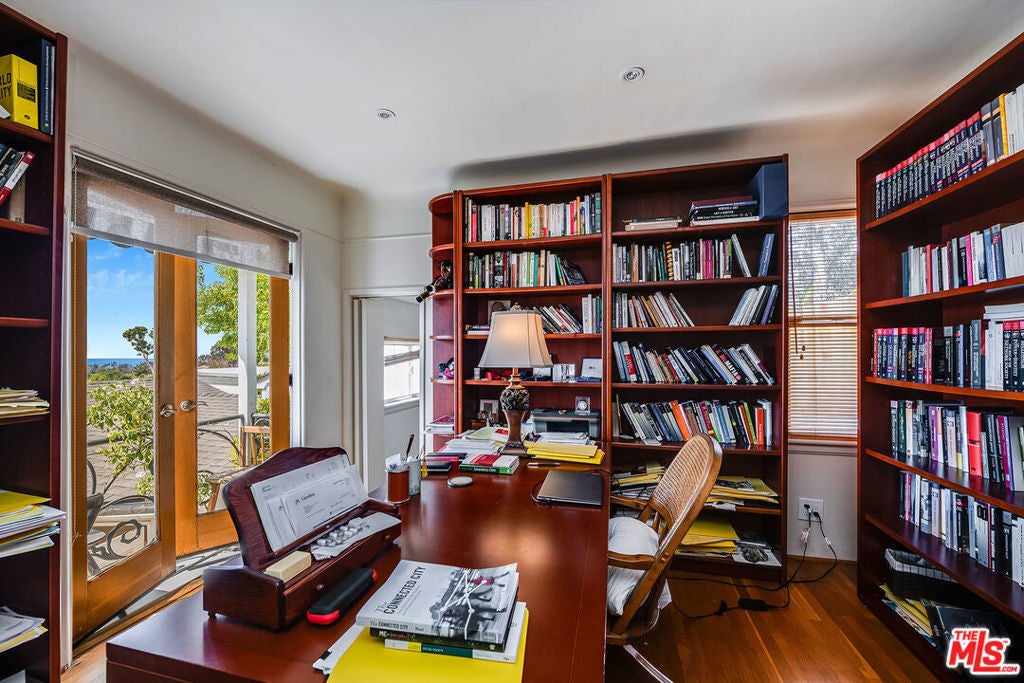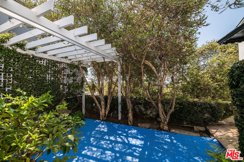 Enjoy beautiful ocean views from this light-filled Pacific Palisades residence that blends warmth, charm, and coastal tranquility. With just under 2,000 sq.ft. of living space, the home sits on a beautifully landscaped, elevated lot that enhances its privacy and natural light. At the heart of the home is an enchanting central courtyard, accessible from most rooms, creating a seamless indoor-outdoor flow perfect for relaxed California living. The main level features a spacious living room, a formal dining room, and a well-appointed kitchen with a breakfast area. The primary suite offers its own private patio with a soothing fountain and a remodeled en-suite bath. Upstairs are two additional bedrooms, including one currently used as an office with a Juliette balcony and ocean view, along with a bonus room and two additional bathrooms. Other highlights include a laundry room, an oversized two-car garage, and a new roof (done in 2022). A rare opportunity to own a warm and tranquil home, combining coastal charm with timeless comfort.
