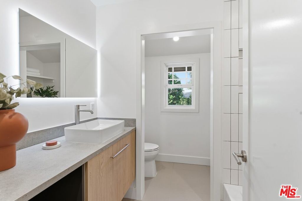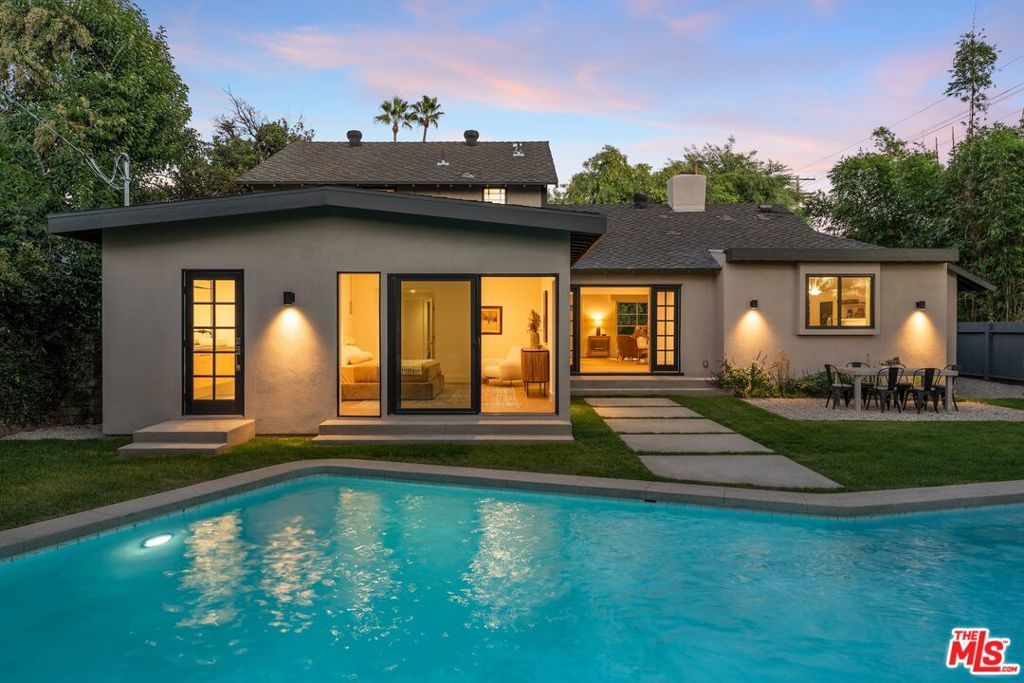 Modern Mid-Century Gem with Pool in the Heart of the Valley. Beautifully reimagined mid-century retreat blending timeless architecture with modern luxury. Tucked away on a peaceful street in Van Nuys, this 4-bedroom, 3-bathroom home sits on an expansive lot surrounded by lush greenery and iconic California palms. Inside, you'll find a bright and open living space featuring soaring exposed-beam ceilings, abundant natural light, and a stunning fireplace that anchors the room. The dining area's distinctive diamond lattice windows add a touch of classic character, perfectly complementing the home's clean, modern finishes. At the center of the home is a designer chef's kitchen, outfitted with marble countertops, custom cabinetry, a breakfast bar, a premium Viking range, and a built-in Dacor refrigerator and freezer. French doors open to a private backyard oasis ideal for indoor-outdoor living. The spacious primary suite offers a true retreat, featuring a large walk-in closet and a spa-inspired ensuite bathroom with double vanities, sleek porcelain surfaces, and a walk-in shower. Down the hall is a versatile guest bedroom, while the upper level offers two additional bedrooms and a stylish shared bathroom a perfect setup for family, guests, or a home office. The backyard is designed for entertaining and relaxation, complete with a sparkling pool, mature ficus hedges for privacy, and two stately palm trees that capture the essence of Southern California living. Centrally located near Sherman Oaks, Studio City, Encino, and Burbank, this property offers easy access to shopping, dining, and major studios just 10 minutes to Ventura Blvd and Whole Foods. Stylish. Serene. Ideally located. Experience the best of Valley living at 7401 Costello Avenue.