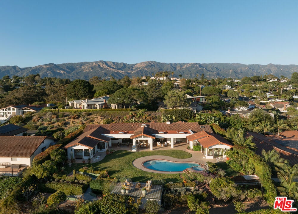 Welcome home to privacy, tranquility, and 180 of mesmerizing ocean-and-island views from this renovated Spanish-style Alta Mesa home! Offering effortless single-level living in a secluded enclave of just 9 homes, the +/- 3,860 sqft residence has been updated with new flooring, new paint, new smooth-coat stucco, a remodeled pool house, and more! The property's versatile layout features an attached guest apartment and a detached pool house, providing exceptional privacy, flexibility, and convenience in a breathtaking coastal setting. Even from its peaceful ocean-view perch, the home is mere minutes from Mesa favorites such as Lazy Acres, Lighthouse Coffee, Mesa Burger, Shoreline Park, and morethe perfect blend of serenity and proximity to the best of Santa Barbara.Throughout the spacious home, enormous windows and sliding doors welcome abundant natural light and frame the panoramic ocean views, while vaulted ceilings create an open and airy ambiance. The main residence features 3 bedrooms plus an office, and the attached guest apartment features its own living room, kitchenette, bedroom, and a separate entrance. On the other wing of the main residence, the primary bedroom offers an alluring getaway with striking ocean views, dual walk-in closets, and a large bathroom suite with a jetted tub. Just outside, the fully remodeled pool house adds a new kitchen and bathroom, ideal for guests or extended stays.Next to the pool house, a sparkling pool and spa meet the endless horizon, surrounded by sunlit patio areas perfect for quiet mornings, a glass of wine at sunset, or entertaining family and friends. A central lookout deck offers an irresistible opportunity to relax and take in the exquisite coastal vistas. From its rare hilltop vantage point, this beautiful property offers an ideal combination of desirable solitude, a versatile layout, convenient location, association amenities like tennis and pickleball courts, and truly captivating views that must be seen to be believed!