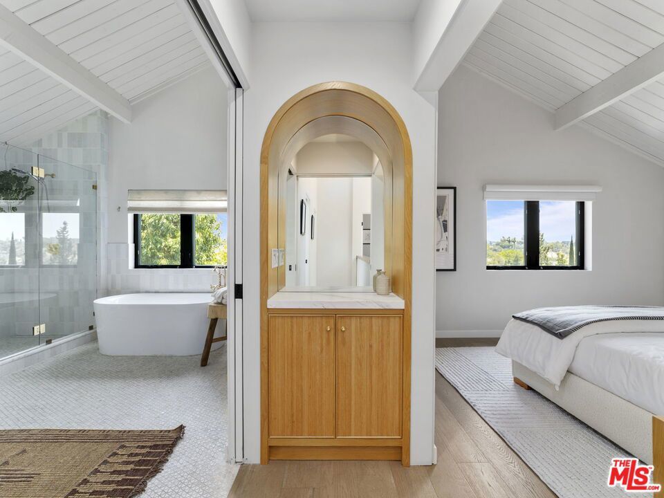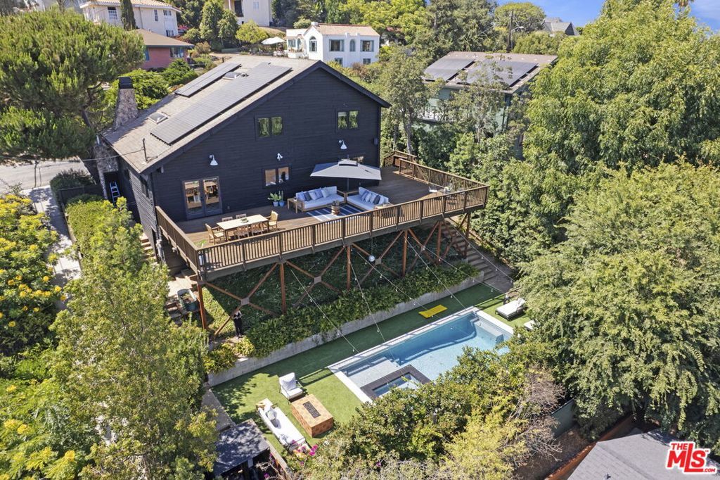 Situated in Echo Park on one of Elysian Heights' most desirable flat streets, this thoughtfully reimagined home blends striking architectural design with modern livability. Spanning more than 2,600 square feet, the open interior features soaring ceilings, abundant natural light, and an effortless flow between spaces. The custom kitchen, with integrated appliances, open shelving, and designer finishes, connects seamlessly to a cozy den. The main living area includes both dining and living spaces that open directly to an expansive 1,800+ square foot deck - a natural extension of the home - overlooking a saltwater pool, spa, and firepit. It's an ideal setting for entertaining or quiet evenings outdoors. Upstairs, the primary suite serves as a serene retreat with dual closets and a spa-inspired bath. Two additional bedrooms and a full bath complete the second level, while a main-floor bedroom and bath offer flexibility for guests or a home office. A detached bonus room provides additional space for a studio, gym, or creative work.Upgrades include Tesla solar panels, newer HVAC, and integrated sound and security systems. Located moments from hiking trails, the Silver Lake Reservoir, and neighborhood favorites like Cookbook, Valerie, and Canyon Coffee, this home offers a rare combination of smart design, privacy, and convenience in one of L.A.'s most sought-after neighborhoods. Property also available for lease at $12,000/month.