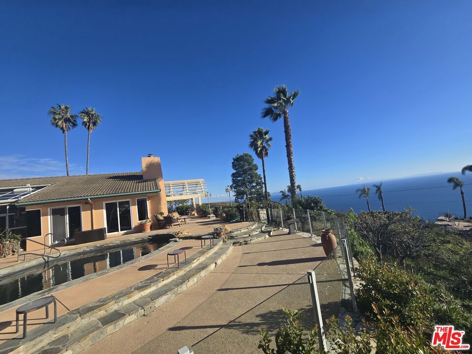 First Showings are at our open house this Sunday November 23rd 1-4. So cool with world class views and just minutes from Santa Monica! Absolutely the best buy in Malibu. Enjoy the inspirational sunrise and sunset with sweeping ocean views, magnificent city lights of the Queen's Necklace, Catalina Island, and the iconic Malibu Pier. Opportunity, Buy an existing home now, v.s. the rebuilding process. Prestigious upper Big Rock is where this remarkable property is located, and is near to one of the area's best, most secluded, hiking trails on thousands of acres of parkland. Situated in Malibu, while still being close to the intersection of Sunset Blvd. and PCH, it is perfect for those who want the Malibu lifestyle and drive into town. Specimen rich park like grounds with paths leading to hideaways, fruit trees, and a variety of gorgeous flowering vegetation. The pool and decking are strategically positioned to optimize the ocean views. There is also a waterfall feature that cascades into basin just off the primary bedroom. This property is priced under what it would have been before the fire. Move in now vs after a long rebuilding challenging process. A spacious living room with vaulted ceiling and ocean views, flows seamlessly to the breathtaking pool area and views. The light and bright kitchen features sweeping ocean views and flows directly into the dining room . The Primary bedroom suite features a sitting area off the pool area, a dedicated sleeping area opening to the waterfall and pond, walk-in closet, a master bathroom with dual vanities, walk-in shower, and a soaking tub. This home includes four bedrooms and four baths. Prime Location. This is more than a home, it's a lifestyle. Discover the perfect blend of Malibu's relaxed charm.