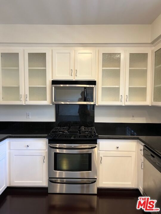 Hip and stylish top floor, single-level 2bd/2ba unit in prime location near Tujunga Village in Studio City. This super clean home features high ceilings, hardwood floors, molding, beautiful finishes, in-unit laundry with a Miehle stackable washer/dryer, and large, spacious rooms with spectacular views and a balcony off the primary suite. The kitchen features granite counters, stainless steel appliances, lots of counter space, cabinets and built-ins. Two tandem parking spots in street-level parking lot and plenty of street parking. Well-kept, security building.