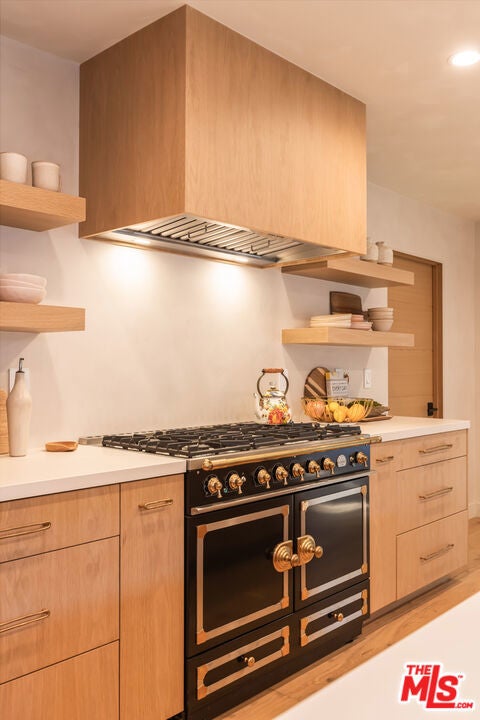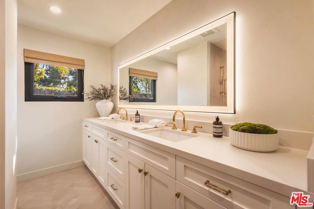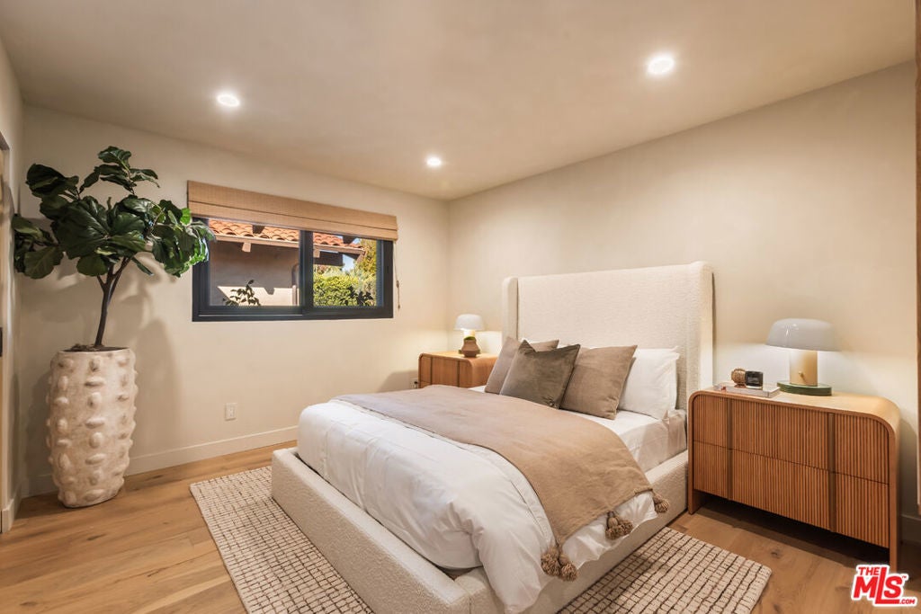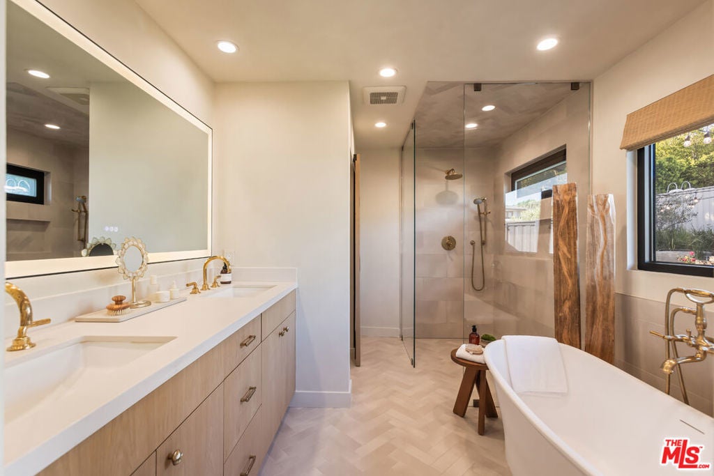 Set in the exclusive Westridge enclave of Mandeville Canyon, this reimagined 5-bedroom, 4-bathroom single-level home offers a rare blend of high design, natural beauty, and city convenience.Inspired by Scandinavian aesthetics, the home features white oak floors, custom oak cabinetry, limewashed walls, and natural textures throughout. At its center, an open-air courtyard with a mature olive tree brings in natural light and a sense of calm.The chef's kitchen pairs La Cornue and Thermador appliances with Dekton countertops, European hardware, and a walk-in pantry balancing function with refined style. Vaulted ceilings and expansive living areas create a seamless, sunlit flow.The primary suite offers a private escape with a spa-like bath, freestanding soaking tub, and dual vanities. Each additional bathroom has been thoughtfully updated with designer finishes. A flexible bonus room (currently used as a gym) and a whole-house water filtration system support wellness-focused living.With direct trail access to sweeping city and coastline views just minutes from Brentwood, the beach, and the Westside this is a rare opportunity to own a private, design-forward retreat in one of L.A.'s most sought-after canyon settings.